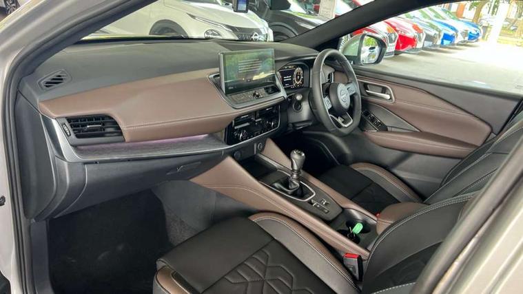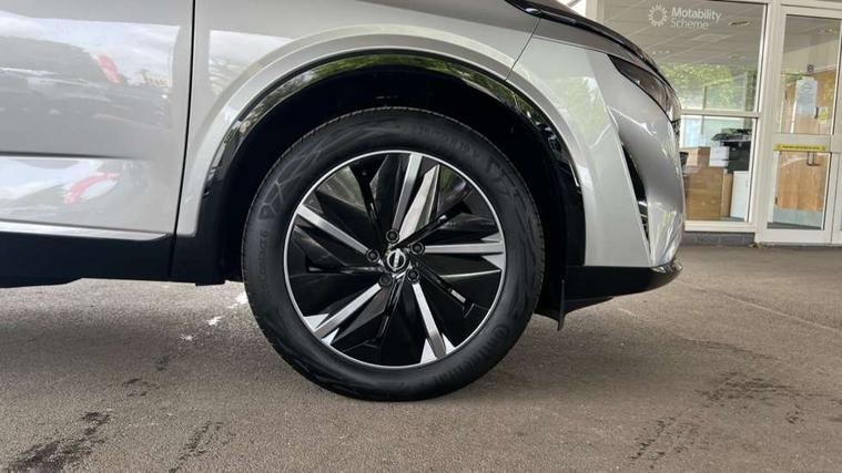 2 front USB-C ports, 2 rear USB-C ports, 360 degree Intelligent around view monitor with moving object detection, Advanced windscreen head up display, Blind spot warning, Drive assist, Drive assist custom mode, Drive modes (sport, normal, eco), Driver drowsiness and attention warning, Electric speed sensitive power steering, Emergency and breakdown call, Emergency lane keep assist, Emergency Stop Signal (ESS), Engine start/stop button, Event data recorder, Front and rear parking sensors, Full Digital 12.3" TFT Digital Combimeter, Google virtual personal assistance, Hands free power tailgate, Idle stop/start system, In-car WIFI hotspot, Intelligent Cruise control (ICC), Intelligent driver alert system, Intelligent forward collision warning, Intelligent lane intervention, Intelligent speed assist, Lane departure warning system, Nissan connect 12.3 inch touchscreen infotainment system, Nissan connect navigation with google maps, Nissan connect services 2.0 (Google Automotive System), Outside temperature sensor, Rear cross traffic alert, Remote control services - door locks, lights, horn and car locator, Reversing detection, Traffic sign recognition with legal speed adjustment, Trip computer, Wireless Apple CarPlay/Android Auto, Wireless charging pad, Limited slip differential, 6 speakers, AM/FM audio system with DAB, Bluetooth audio streaming, Auto dimming frameless rear view mirror, Auto rear wiper when reversing, Body colour mirror caps, Body coloured door handles, Bodyside mouldings, Chrome side window finisher, Electric auto folding door mirrors, Electrically adjustable and heated door mirrors with LED turn indicator, Follow me home headlights, High beam assist, Intelligent auto headlights, LED 3rd brake light, LED daytime running lights, LED headlights with adaptive driving beam, LED rear lights, LED sequential turn lights, One touch front and rear electric windows with remote opening and closing, One touch passenger window, Partially body coloured bumpers, Rain sensing wipers, Rear privacy glass, Rear roof spoiler, Rear side wing doors, Rear styling plate, Reverse tilting door mirrors, Shark fin antenna, Silver roof rails, Splash free rain sensing wipers, Super RED rear LED lights, Super UV and infrared cut glass, Thermaclear heated windscreen, 12v power socket in dashboard and luggage, 3 bench rear seats in 2nd row, 3 rear headrests, 60/40 split folding rear seat bench, Chrome interior door handles, Dark headlining, Driver and passenger sunvisors with illuminated vanity mirrors, Driver seat back pocket, Dual zone automatic climate control with pollen filter, Electrically adjustable driver seat, Electrically adjustable lumbar support for driver, Fixed Glass roof with electric sunshade, Front centre console and armrest, Front cupholders, Front door with bottle holders, Heated front seats, Heated steering wheel, Height adjustable front headrests, Height adjustable passenger seat, Leather shift knob, Luggage board system, Luggage space lighting, Manual adjustable lumbar support for passenger, Multifunction steering wheel, Passenger seat back pocket, Quilted/PVC upholstery, Rear door bottle holders, Rear seat armrest with 2 cupholders, RGB ambient light (Full area coverage), Single front passenger seat, Smooth leather steering wheel, Tilt/telescopic adjustable steering wheel, Two rear isofix child seat anchorage points with top tether, 3x3 point rear seatbelt pretensioners + load limiters, ABS with EBD and brake assist, Autonomous emergency braking, Child locks on rear doors, Curtain and front side, far side airbags, Driver and passenger airbags, Driver, passenger and 2nd row rear seat belt reminder, Electric handbrake with auto hold function, Front seatbelt pretensioners + load limiters, Height adjustable front seatbelts, Hill start assist, Intelligent blind spot intervention, intelligent front emergency braking, Intelligent rear automatic braking, Tyre pressure monitoring system, Vehicle dynamic control, Engine immobiliser, Intelligent key with walk away lock and approach unlock functions, Remote central door locking with deadlocking, Thatcham alarm, 19" Diamond cut alloy wheels, Tyre puncture repair kit,