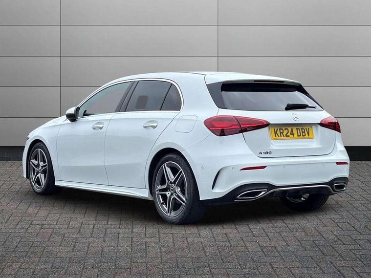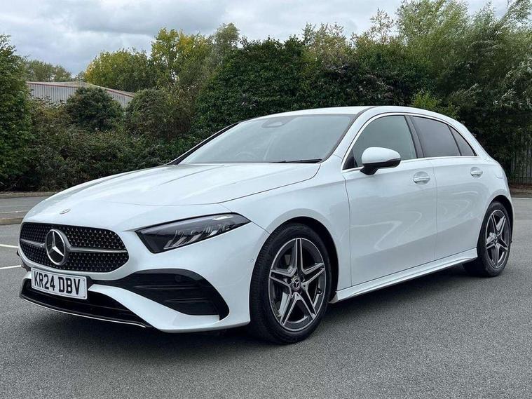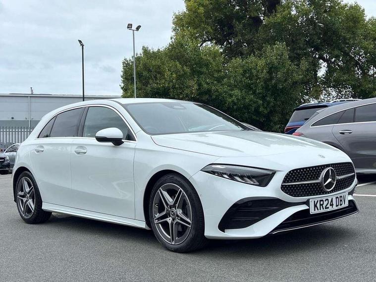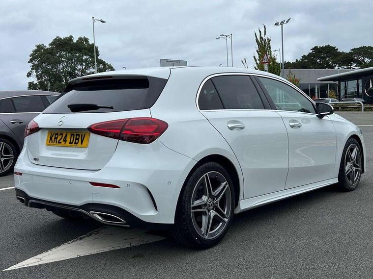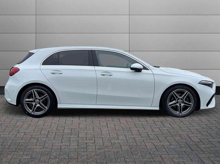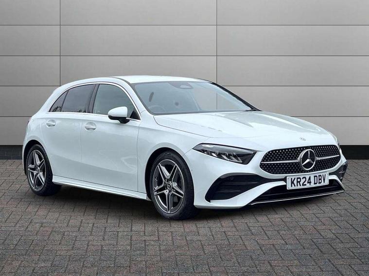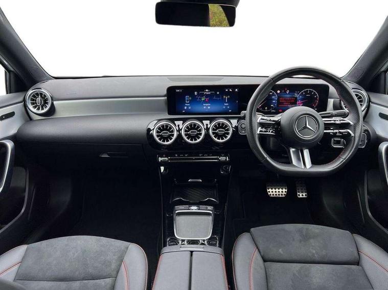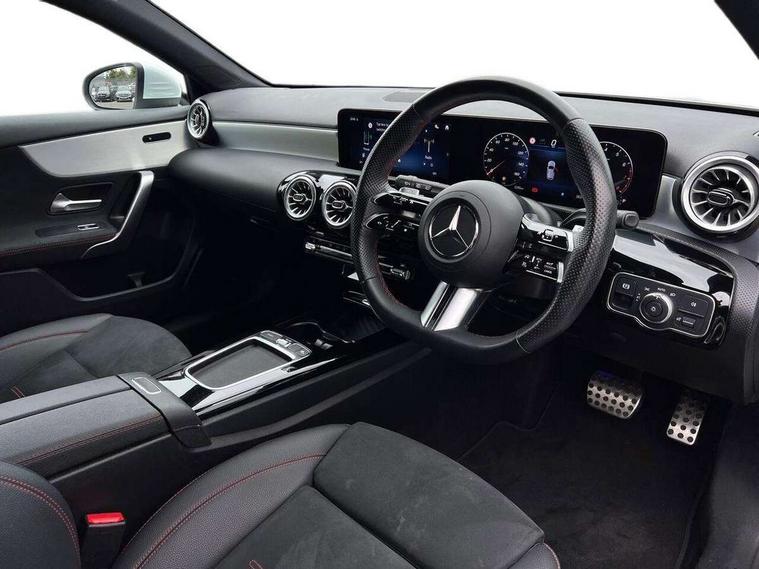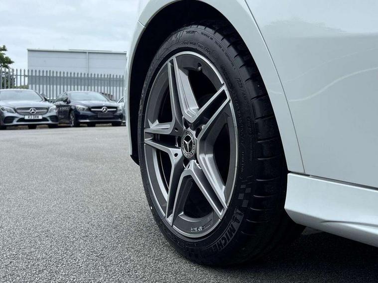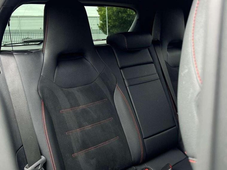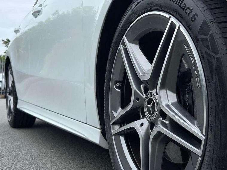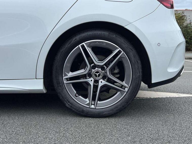 10.25 inch touchscreen central media display, 10.25" Digital instrument cluster display screen, Attention assist, Brake pad wear indicator warning light, Car wash mode, Cruise control + speed limiter, Direct steering, Direction indicators with lane change function, Dual bluetooth interfaces, DYNAMIC SELECT with a choice of driving modes (ECO, Comfort, Sport and Individual), Easy pack tailgate hands-free access, ECO start/stop function, Engine start/stop button, Fluid level warning indicator for fuel, oil, coolant and washer fluid, Fluorescent jacket for driver, Hard-disk navigation, Hey Mercedes Voice activation, Lamp failure indicator, Lane keeping system, Mercedes me connect including emergency call system, accident recovery, breakdown and maintenance management, Mercedes me remote services, Outside temperature gauge, Owners manual in English, Pre-installation of private car share, Preinstallation for Mercedes Benz link, Remote boot closing, Service indicator (ASSYST), Smartphone integration with Apple CarPlay and Android auto, Speed limit assist, Speed sensitive power steering, Tailgate, Trip computer in multifunction display with current consumption indicator, Wireless charging, Lowered comfort suspension, DAB Digital radio, MBUX multimedia system, Mercedes Benz sound system (100 W) with 6 speakers, 4 Electric Front and Rear windows, Adaptive brake lights, AMG body styling - AMG front apron with front splitter and AMG rear apron and visible exhaust tailpipe trim elements, Body colour bumpers, Body colour door handles with chrome inserts, Body colour side skirt, Body coloured door mirrors, Chrome beltline strips, Diamond radiator grille with pins in fine star pattern, Electric adjustable and heated door mirrors with integrated LED side indicators, Exhaust system with 2 visible tailpipe trim elements and rear apron, Headlamp assist automatic headlamp activation, Heat insulating dark tinted rear and rear side windows, Heated glass rear windscreen + timer control, LED High level third brake light, LED High Performance headlamps including integral LED daytime running lamps and adaptive highbeam assist, LED tail lamp, Privacy glass, Radio aerial, Rain sensing windscreen wipers with two sensitivity settings, Rear fog lights, Rear side wing doors, Rear windscreen wiper, Window line trim strip in chrome, 3 seat bench in 2nd row, 3 Spoke flat bottom leather multi function steering wheel with perforated leather in grip area, 4 way lumbar support, 40:20:40 split folding rear seats, Air conditioning - One zone thermatic automatic climate control with automatically controlled air distribution, AMG floor mats, Automatic child seat recognition sensor, Black air vents with surround in silver chrome, Black roof lining, Brushed stainless steel sports pedals with rubber studs, Front centre armrest with stowage, Front door sills with Mercedes Benz lettering, Front seat backs luggage nets, Galvanished gear shift paddles on steering wheel, Heated front seats, Height/reach adjustable steering column, Interior lighting - 64 colour Ambient lighting, Interior mirror with reading lamps in black and frameless, Rear armrest with 2 cupholders, Seat occupancy sensor for front passenger seat, Single front passenger seat, Sports seats with integrated headrests, Stowage compartment in centre console with retractable cover, Sunvisors with illuminated vanity mirrors, Twin front cupholders, Light and sight pack - A Class, Mirror package - A Class, Parking pack - A Class, Seat comfort pack - A Class, USB pack plus - A Class, 3 rear 3 point seatbelts, ABS with Brake Assist, Active bonnet, Active brake assist includes forward collision warning system with autonomous braking, Adaptive brake assist with hold function and hill start assist, Black seatbelts, Bonnet with power domes, Childproof locks manually operated for rear doors and electrically operated for rear power windows, Crash responsive emergency lighting, Driver and passenger head and side airbags, Drivers knee airbag, Dual stage driver/passenger airbags, Electronic parking brake, ESP curve dynamic assist, ESP with ASR, Front and rear seatbelt reminder, ISOFIX and top tether child seat fixing points in two outer rear seats, Tyre pressure monitoring system, Warning triangle and first aid kit, Window airbags, Alarm system/interior protection/immobiliser, Guard 360 degree vehicle protection, Keyless entry lock/unlock, Keyless Go, Remote central locking and crash sensor with emergency opening function, Light longitudinal grain aluminium trim, 18" AMG 5 twin spoke light alloy wheels, aerodynamically optimised, painted in termolite grey with high sheen finish, Summer tyres, Tirefit sealant kit,