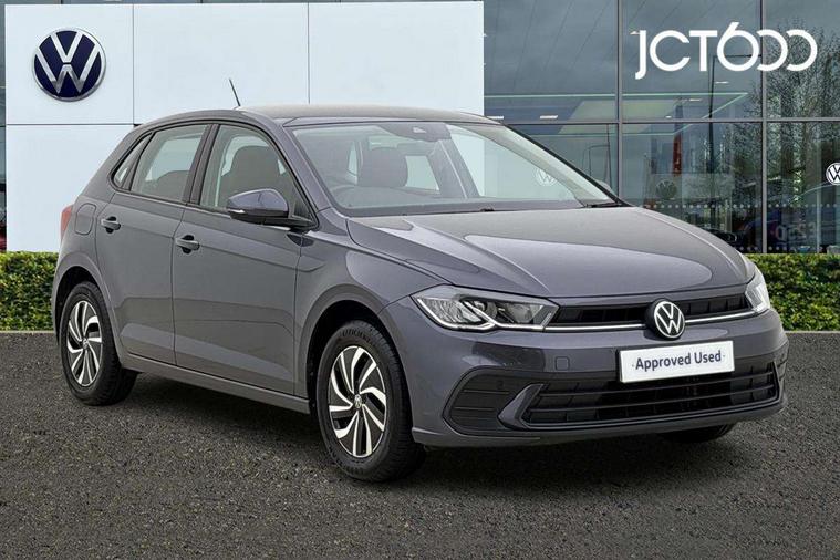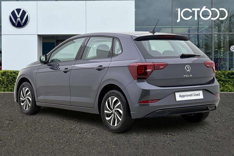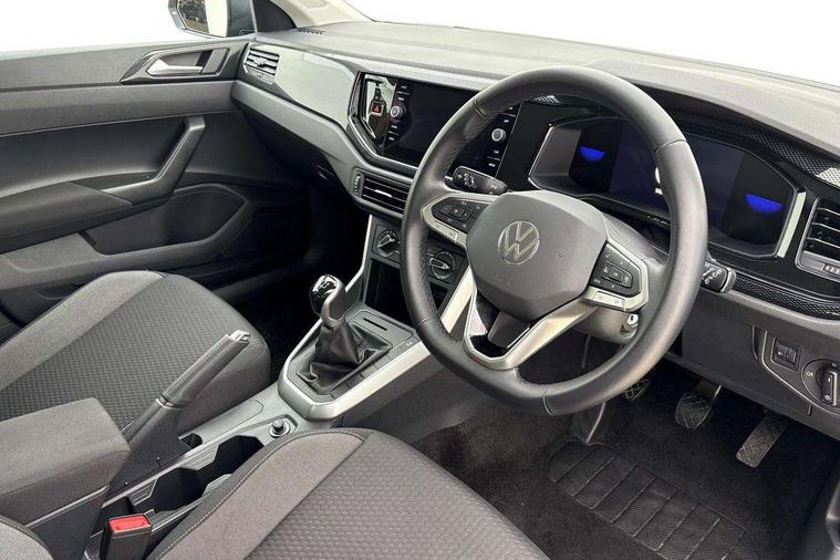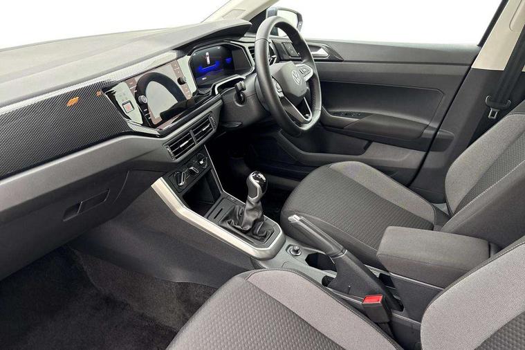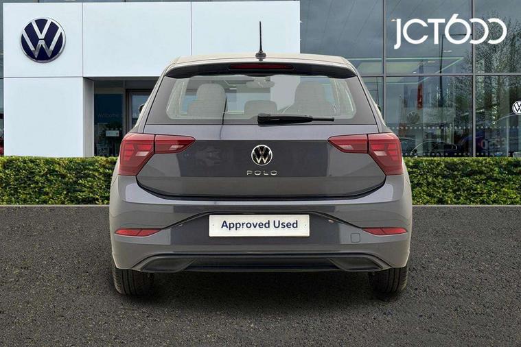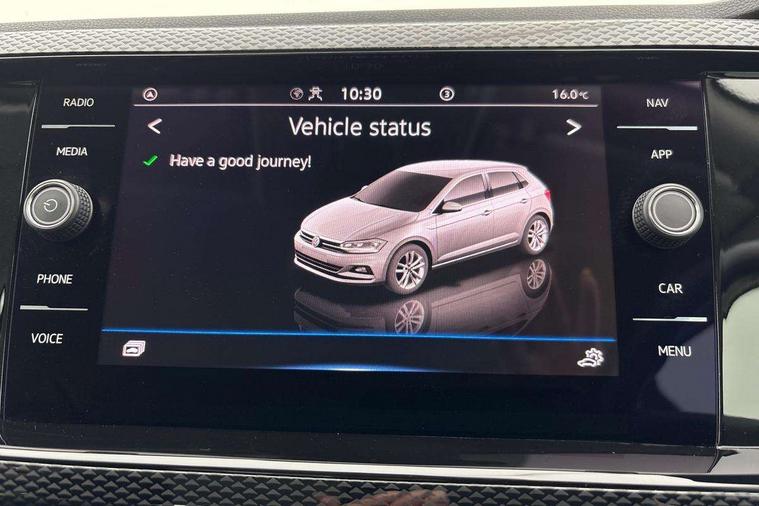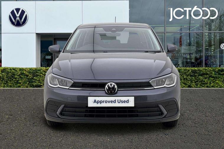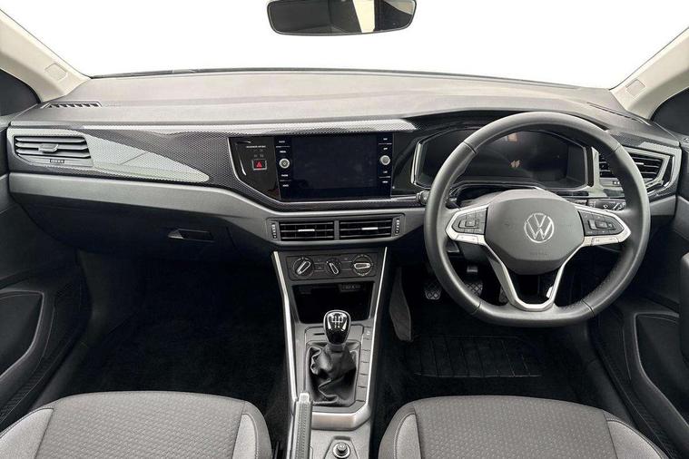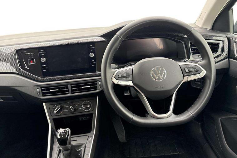 Adaptive cruise control without follow-to-stop and speed limiter, Advanced driver attention and drowsiness monitor, Bluetooth mobile phone interface, Dynamic road sign display, Emergency call service, Power assisted speed sensitive steering, Preparation for navigation system with media and internet package, Preparation for We connect and We connect plus, Speedo and rev counter, electronic odometer, trip, service interval display and exterior temperature gauge, Standard rear axle, Travel Assist - Lane keeping system and traffic jam assist, Travel assist including emergency assist, Trip computer, Warning signal and warning light for front and rear seatbelts not fastened, Washer fluid level indicator, Wireless app connect, Front wheel drive, Rear shock absorpion, Start-stop system with battery regeneration (recuperation - energy recovery during braking), DAB Digital radio, Diversity antenna for FM reception, Automatic dimming interior rear view mirror, Automatic headlight control with LED separate daytime running lights with coming/leaving home function, Body colour bumpers with chrome inserts, Body colour door handles, Body colour door mirrors, Electric front windows, Engine badge deletion, Headlight range adjustment, Heat insulating and laminated safety glass windshield, Heat insulating darkened glass in side and rear windows, Heat insulating glass windscreen, LED Headlights, LED rear combination lamps, Power folding adjustable/heated exterior mirrors and front passenger exterior mirror lowering function, Rain sensor, Rear electric windows, Rear fog light, Rear side wing doors, Rear windscreen washer and wiper with interval delay, Third brake light, 12V power socket in centre console, 2 front and 2 rear reading lights with switch off delay and dimmer, 2 USB-C ports in the front, 2 USB-C charging sockets on the center console in the rear, 3 rear head restraints, 60/40 split folding rear seat and rear seat bench not split, Ceramique roof lining, Chrome plated radiator grille inserts, air vent surrounds and light switch surrounds, Door and side trim panel, Driver and front passenger seat height adjustment, Driver/passenger sunvisors with illuminated vanity mirrors, Front centre armrest, Front seat backrest storage pockets, Front standard seats, Handbrake lever handle in leather, Hartley/Thomas cloth upholstery, Headliner in recycled material, Isofix child seat preparation easy-fit (for two outer rear seats, and front passenger seat) compatible with I-size, Leather trimmed gear knob, Luggage compartment cover, Luggage compartment lighting, Removable luggage compartment floor, Single front passenger seat, Standard climatic zones, Standard pedal cluster, Three spoke leather wrapped multifunction steering wheel, Light and vision pack - Polo, 3 point height adj front seatbelts + pretensioners, 3x3 point rear seatbelts, ABS, Driver and front passenger airbag with front passenger airbag deactivation, Drivers and front passengers safety optimised head restraints, ESC (Electronic stability control) + EDL (Electronic Differntial lock) and ASR (Traction control), Extended and predictive pedestrian/ cyclist protection, Front assist with autonomous emergency braking (for Adaptive Cruise Control ACC up to 130 mph), Front curtain and side airbags with center airbag, Front disc brakes, Hill hold control, Manual child lock in rear doors, Rear drum brakes, Single tone horn, Tyre pressure loss indicator, Alarm with interior protection, Anti-theft alarm system with interior monitoring, backup horn, and towing protection, Anti-theft wheel bolts, Electronic engine immobiliser, Lava stone black gloss/matt decorative inserts in dash and front door panels, Low rolling resistance tyres,