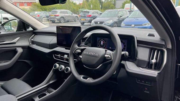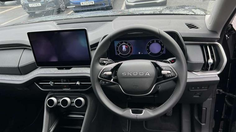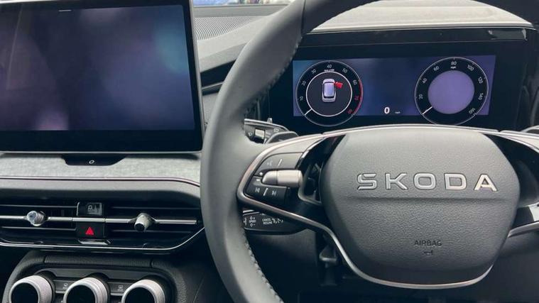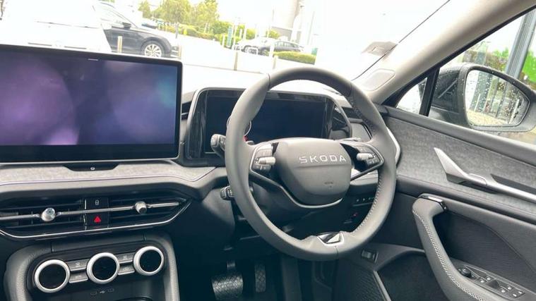 Advanced driver attention and drowsiness monitor, Bluetooth system, E-call, Front assist system, PAS, Rear parking sensors, Rear view camera, Service indicator, Speed limiter, Traffic sign recognition, Virtual cockpit with 10.25" display, Voice control system, Wireless smartlink, 4 USB C ports, 8 Speakers, 9.2" Skoda navigation display, DAB Digital radio, Auto dimming rear view mirror, Automatic headlight control with coming home and leaving home feature, Black door mirrors, Black roof, Black roof rails, Body colour bumpers, Body colour door handles, Chrome grille surround, Front and rear electric windows, Full LED headlights, Heated rear window, LED brake lights, LED daytime running lights, LED front turning lights, LED high beam, LED low beam, LED third brake light, Privacy glass, Rear LED fog light, Rear side wing doors, Rear wiper, Ticket holder inside windscreen, 12V socket in luggage compartment, 3 seat bench in 2nd row, 3 spoke leather sports multi-function steering wheel, Aluminium pedals, Ambient lighting in white/red, Black roof lining, Black suedia decor inserts, Black suedia door inserts, Cargo elements, Chrome inner door handles, Driver and passenger sun visors with vanity mirror, Dual zone climate control, Dynamic cloth upholstery, Front and rear roof lights, Front centre armrest, Front head restraints, Glove compartment with illumination, Height adjustable driver seat, Height adjustable front passenger seat, Ice scraper, Inner circulation control with pollen filter, ISOFIX on front passenger seat, Isofix preparation for back seats, Leather gearknob and handbrake lever, Manual lumbar support for front seats, Net package and top tether hooks in boot space, Net under rear shelf, Overhead glasses storage compartment, Pocket on the back of both front seats include mobile phone pockets, Rake/reach adjustable steering wheel, Reading lights, Rear centre armrests, Red hotstamping, Single front passenger seat, Sports seats, Textile floor mats, Third rear headrest, Top tether for front passenger seat, Umbrella in driver's door, 3x3 point rear seatbelts, Airbags - driver and front passenger, Disc brakes, ESP, Extended and predictive pedestrian/cyclist protection, Front passenger airbag deactivation switch, Front side airbags with curtain airbags, Hill hold control, Manual leather parking brake, Manual rear child locks, One tone horn, Seatbelt reminder for driver an co-driver, Traction control, Tyre pressure monitor, Anti-theft alarm system with interior monitoring, backup horn, towing protection and remote central locking with SAFE system, Anti-theft wheel bolts, Electronic engine immobilizer, Tyre repair kit,