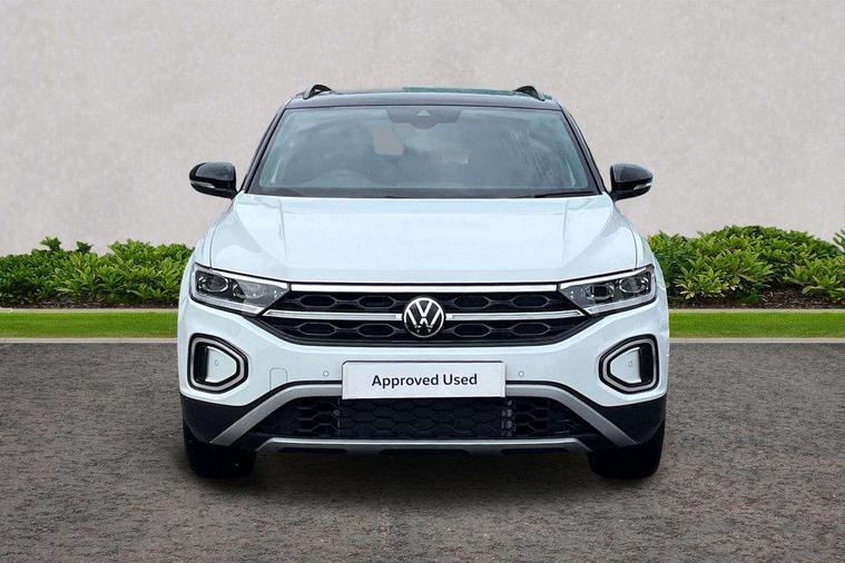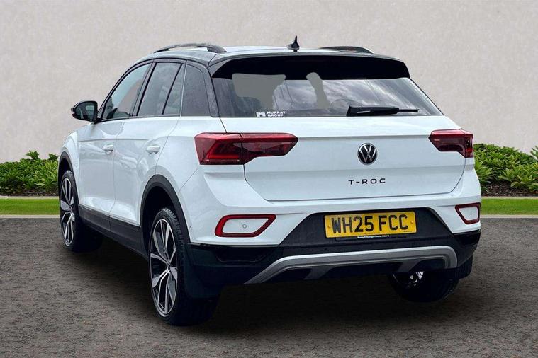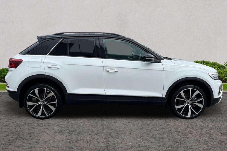 10.25" Digital cockpit pro, Advanced driver attention and drowsiness monitor, Dynamic road sign display, Emergency call service, Lane keeping system Lane Assist, Mobile phone interface, Modified key software - reduce switch off time for key status change to Long no motion, Online services, Park assist including front and rear parking sensors, Power assisted speed sensitive steering, Rear view camera, Service interval indicator, Tailgate/trunk lid release from outside, Think blue trainer driver tips and journey analysis, Warning sound and light for front seatbelts unfastened, Wireless app connect, Battery regeneration during braking, Start/stop function with battery regeneration, DAB Digital radio, Diversity antenna for FM reception, Music playback - MP3, WMA and AAC files, Premium USB cable in choice of either Apple or Android smartphone compatibility, SD card slot, Simultaneous pairing of 2 compatible mobile devices, Title and cover art display, We Connect and We Connect Plus functionality, Adhesive film in carbon look on the C-pillars, Advanced dynamic light assist for LED matrix headlights, Auto dimming interior rear view mirror, Automatic hazard lights activation under emergency braking, Black roof rails, Body colour sports bumpers with silver metallic underbody fascia, Body coloured exterior mirror housings and door handles, Dynamic cornering light, Dynamic headlight range control with self adjusting whilst driving, Electrically adjustable and heated door mirrors, Extended roof spoiler, Exterior ambient lighting, Exterior mirrors aspherical on driver side, convex on front passenger side, External USB type C socket and charging sockets, Front windscreen wiper with intermittent wipe and 4 position delay, Heated rear window, Illuminated front grille, IQ LED matrix headlights, LED 3rd brake light, LED rear number plate lights, LED rear tail lights with dynamic turn signal, LED separate daytime running light, Light mode for poor weather, rain, fog or snow, Power windows with comfort operation and circuit breaker, Privacy glass for rear side windows and rear window, Rain sensor, Rear exhaust tailpipe, Rear fog light on one side and reversing lights on both sides, Rear side wing doors, Rear wash/wipe with intermittent wipe setting, Remote electrically foldable door mirrors, puddle lights and reverse activated passenger's door mirror, Tilting and sliding panoramic sunroof with rear panoramic sunroof, 12V power socket in centre console, 3 rear head restraints, 3 seat bench in 2nd row, 4 load lashing points in luggage compartment, Air care climatronic air conditoning system with active combination filter and 2-zone temperature control, Black roof lining, Chrome plated radiator grille inserts, air vent surrounds and light switch surrounds, Door and side trim panel with leatherette insert, Drawer under drivers seat, Front + rear carpet mats, Front centre armrest, Front comfort sports seats, Front cupholders x 2, Front footwell illumination, Front seat back storage pockets, Glove compartment door with light, Instrument lighting, white adjustable panel illumination, Interior ambient lighting and surround lighting, Interior light delay, Isofix child seat preparation, Leather gearshift handle, LED interior light with switch off delay/dimmer and 2 front/rear LED reading lights, Load-through provision with cup holder when folded down ('Unsplit rear seat bench, split folding backrest, with centre armrest), Luggage compartment lighting, Non-folding front passenger seat backrest, Single front passenger seat, Storage compartment in left and right luggage area, Storage compartment in rear doors, Storage compartments in driver and front passenger doors, Sunvisors with illuminated vanity mirrors, Variable boot floor, height adjustable and removable, Black design pack - T-Roc style design, Driver assistance pack without proactive passenger protection - T-Roc, Easy open package with safelock - T-Roc, 3 point height adj front seatbelts + pretensioners, 3 point seatbelts in outer rear with ECE label, ABS, Child locks on rear doors, City emergency braking and pedestrian monitoring, Driver and front passenger airbag with front passenger airbag deactivation, Driver and front passenger safety-optimised head restraints, Drivers seatbelt reminder, Electronic parking brake, Electronic Stability Control (ESC) inc EDL (Electronic Differential Lock) and ASR (Traction Control), Front and rear passengers curtain airbag system including front side airbags, Predictive pedestrian protection, Rear disc brakes, Two tone horn, Tyre pressure loss indicator, Volkswagen roadside assistance, Black decorative trims, Piano black decorative inserts in dashboard and front door trim panels, Tool kit, Trims for alloy wheels, Tyre mobility kit including compressor and sealing foam,