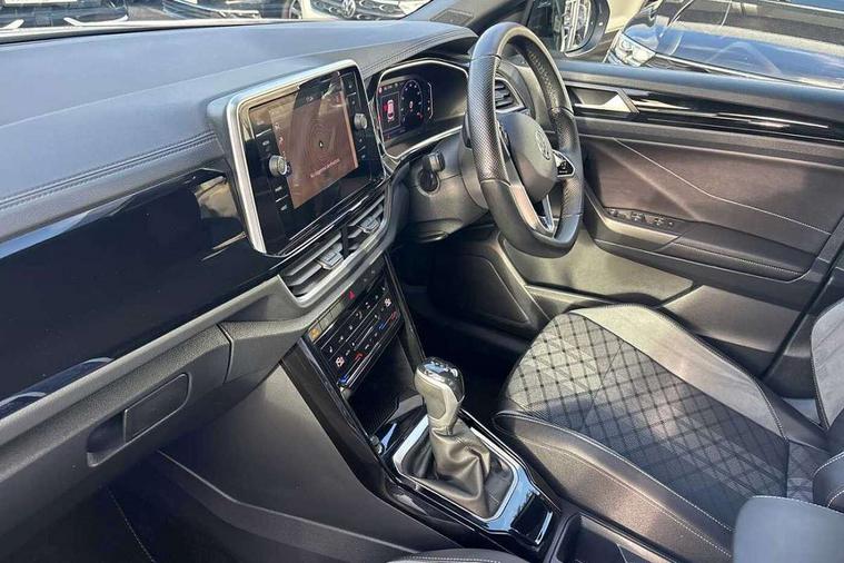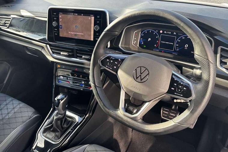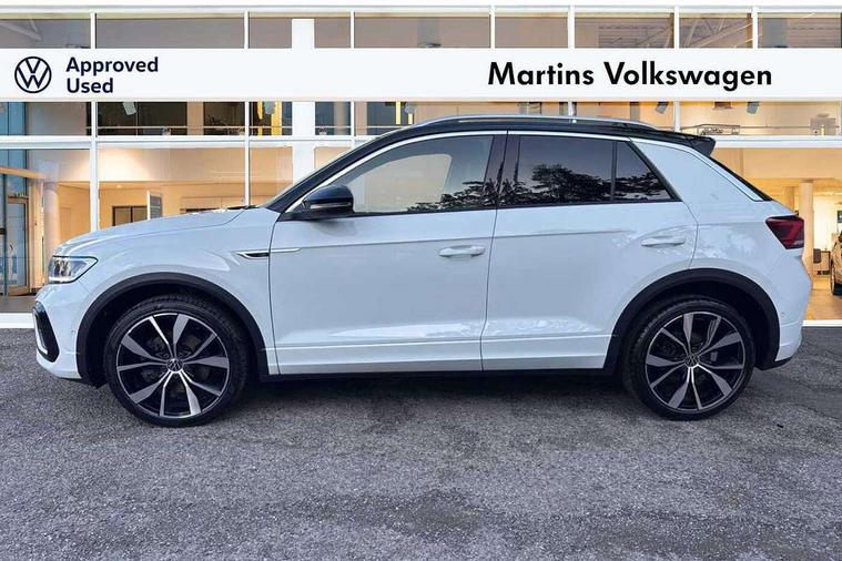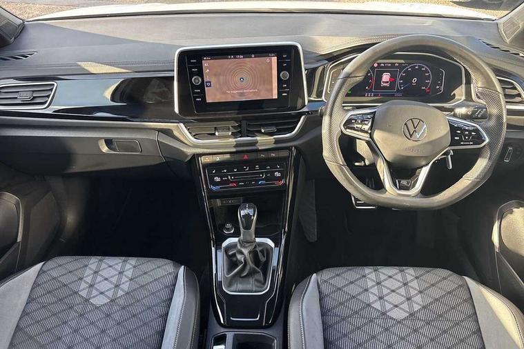 10.25" Digital cockpit pro, Bluetooth mobile phone interface, Driver alert system with fatigue detection, Driver tips and journey analysis, Emergency call service, Lane keeping system Lane Assist, Modified key software - reduce switch off time for key status change to Long no motion, Online services, Park assist including front and rear parking sensors, Service interval indicator, Tailgate/trunk lid release from outside, Think blue trainer driver tips and journey analysis, Warning sound and light for front seatbelts unfastened, Wireless app connect, Battery regeneration during braking, Start/stop function with battery regeneration, Diversity antenna for FM reception, Front and rear 6 speakers, Music playback - MP3, WMA and AAC files, Premium USB cable in choice of either Apple or Android smartphone compatibility, SD card slot, Simultaneous pairing of 2 compatible mobile devices, Title and cover art display, We Connect and We Connect Plus functionality, 3rd brake light, Auto dimming interior rear view mirror, Automatic hazard lights activation under emergency braking, Automatic headlight control with LED separate daytime running lights with coming/leaving home function, Extended roof spoiler, Exterior mirrors aspherical on driver side, convex on front passenger side, External USB type C socket and charging sockets, Front windscreen wiper with intermittent wipe and 4 position delay, Heated rear window, LED Plus headlamps, LED rear combination lamps, LED rear number plate lights, LED tail lamp rear comination lamps, Power windows with comfort operation and circuit breaker, R-Line design body coloured bumpers, Rain sensor, Rear exhaust tailpipe, Rear fog light on one side and reversing lights on both sides, Rear side wing doors, Rear wash/wipe with intermittent wipe setting, Remote electrically foldable door mirrors, puddle lights and reverse activated passenger's door mirror, 12V power socket in centre console, 3 rear head restraints, 3 seat bench in 2nd row, 4 load lashing points in luggage compartment, Air care climatronic air conditoning system with active combination filter and 2-zone temperature control, Black roof lining, Chrome plated radiator grille inserts, air vent surrounds and light switch surrounds, Door and side trim panel with leatherette insert, Drawer under drivers seat, Front + rear carpet mats, Front centre armrest, Front cupholders x 2, Front footwell illumination, Front reading light, Front scuff plates with R logo, Instrument lighting, white adjustable panel illumination, Interior ambient lighting and surround lighting, Interior light delay, Isofix child seat preparation, Leather gearshift handle, Load-through provision with cup holder when folded down ('Unsplit rear seat bench, split folding backrest, with centre armrest), Luggage compartment lighting, Single front passenger seat, Stainless steel pedals, Storage compartment in left and right luggage area, Storage compartment in rear doors, Storage compartments in driver and front passenger doors, Sunvisors with illuminated vanity mirrors, Variable boot floor, height adjustable and removable, Driver assistance pack without proactive passenger protection - T-Roc, 3 point height adj front seatbelts + pretensioners, 3 point seatbelts in outer rear with ECE label, ABS, Child locks on rear doors, Driver and front passenger airbag with front passenger airbag deactivation, Driver and front passenger safety-optimised head restraints, Drivers seatbelt reminder, Electronic parking brake, Electronic Stability Control (ESC) inc EDL (Electronic Differential Lock) and ASR (Traction Control), Front and rear passengers curtain airbag system including front side airbags, Front assist with city emergency braking and pedestrian monitoring, Front seat side impact airbags, Hill start assist, Predictive pedestrian protection, Rear disc brakes, Single tone horn, Tyre pressure loss indicator, Volkswagen roadside assistance, Alarm with interior protection, Anti-theft alarm system with interior monitoring, backup horn, and towing protection, Remote central locking with SAFELOCK, radio remote control with 2 remote control folding keys, Trims for alloy wheels,