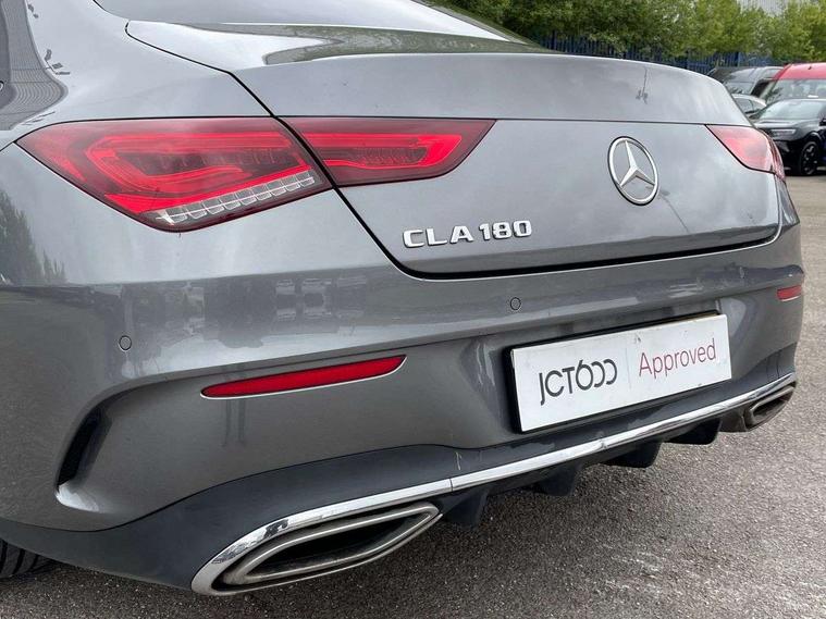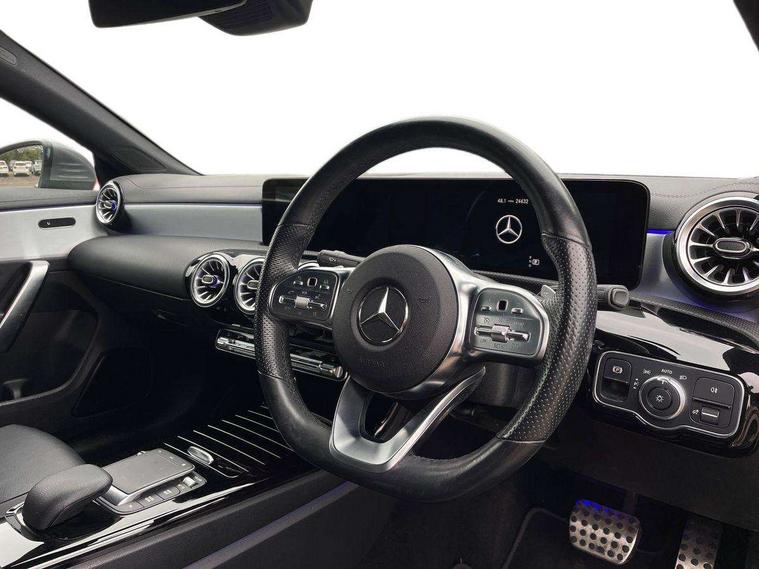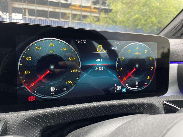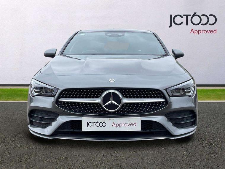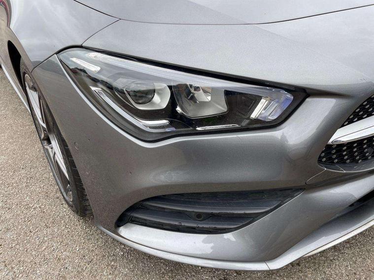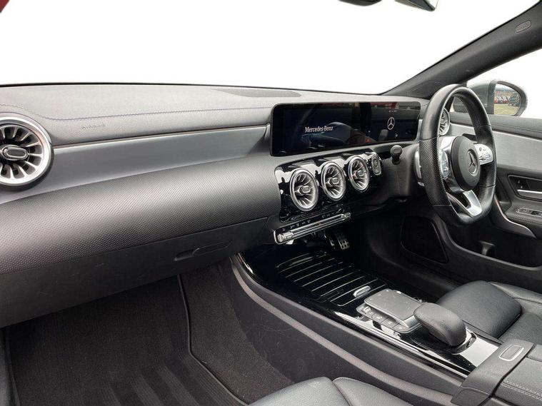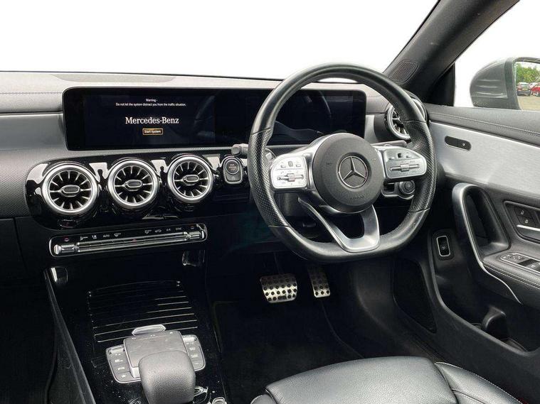 10.25 inch Instrument display with digital cockpit, 10.25 inch touchscreen central media display, Active lane keeping assist, Attention assist - Monitors steering behaviour and long journey fatigue, Bluetooth connection, Car wash mode, Cruise control with limiter, Direct steer system with speed sensitive power steering, DYNAMIC SELECT with a choice of driving modes (ECO, Comfort, Sport and Individual), ECO start/stop function, Fluid level warning indicator for fuel, oil, coolant and washer fluid, Hard-disk navigation, Hey Mercedes Voice activation, Lamp failure indicator, Mercedes me connect including emergency call system, accident recovery, breakdown and maintenance management, Mercedes me remote services, Outside temperature gauge, Owners manual and service booklet in English, Pre-installation of private car share, Preinstallation for Mercedes Benz link, Radio aerial integrated into front and rear windshields, Service indicator (ASSYST), Smartphone integration with Apple CarPlay and Android auto, Speed limit assist, Trip computer in multifunction display with current consumption indicator, 7G-DCT 7 speed automatic transmission, Lowered comfort suspension, Rear axle multi-link, DAB digital radio tuner, MBUX multimedia system with DAB digital radio and touchpad including satellite navigation, Mercedes Benz sound system (100 W) with 6 speakers, USB (type C) ports (2) in stowage compartment and 1 in front of centre console, Adaptive brake lights, AMG body styling with AMG front apron and rear apron and visible exhaust tailpipe in chrome trim elements, AMG bodystyling side skirts, Body colour bumpers, Body colour door handles, Chrome beltline strips, Chrome weather strip, Diamond radiator grille pins in chrome with silver painted louvres and chrome insert, Electric windows, Electrically adjustable and heated door mirrors with integrated LED indicators, Exhaust system with 2 Visible tailpipe trim elements and rear apron with trim in chrome, Headlamp assist automatic headlamp activation, Heated glass rear windscreen + timer control, High level LED third brake light, Interior mirror with black reading lamps and frameless, LED high performance headlamps with integrated LED daytime running lights, LED tail lamp, Privacy glass with dark tinting on rear side windows and rear window, Rain sensing windscreen wipers with two sensitivity settings, Rear fog lamp, Window line trim strip in chrome, 3 spoke flattened bottom nappa leather multifunction steering wheel with perforated leather in grip area, 40:20:40 split folding rear seat backrests, Air conditioning - Two zone thermotronic luxury automatic climate control with display, Air vents with surround in silver chrome, Automatic child seat recognition sensor, Black roof lining, Brushed stainless steel sports pedals with rubber studs, Floor mats with stitched AMG lettering, Front centre armrest with stowage, Galvanished gear shift paddles on steering wheel, Heated front seats, Illuminated front door sills with changeable cover, Illuminated glove compartment stowage, Interior lighting - 64 colour Ambient lighting, Luggage net on driver/front passenger seat backrest, Manually adjustable front seats, Manually height and reach adjustable steering column, Rear armrest with two integral cup holders for drinks, Rear head restraints, Sport seats with fixed head restraints, Stowage compartment in centre console with retractable cover, Sunvisors with illuminated vanity mirrors, Touchpad on center console, Twin front cupholders, Two outer rear seat isofix and top tether child seat fixing points, Light and sight pack - CLA, Mirror pack - CLA, Parking package - CLA, Seat comfort pack - CLA, Active bonnet pedestrain safety measure which detects an impact and raises bonnet by 65mm, Active brake assist includes forward collision warning system with autonomous braking, Adaptive brake assist with hold function and hill start assist, Anti-lock braking system (ABS), Black seat belts, Bonnet with power domes, Brake pad wear warning indicator, Childproof locks manually operated for rear doors and electrically operated for rear power windows, Crash responsive emergency lighting, Driver and front passenger head and sidebags, Driver and front passenger windowbags, Drivers knee airbag, Dual stage driver and front passenger airbags, Electric parking brake, Electronic stability programme with acceleration skid control, ESP curve dynamic assist, Front and rear seatbelt reminder, Front passenger seat occupancy sensor, Three point rear seat belts, Tyre pressure monitoring system, Warning triangle and first aid kit, Remote central locking and crash sensor with emergency opening function, Urban guard vehicle protection system with immobiliser and interior protection, Light aluminium with longitudinal grain interior trim, 18" 5 twin spoke design alloy wheels painted in titanium grey with high sheen finish, Summer tyres, Tirefit tyre sealant kit,