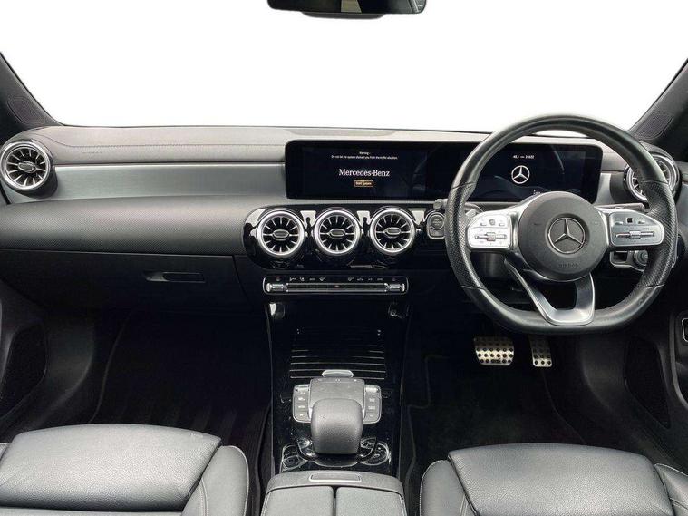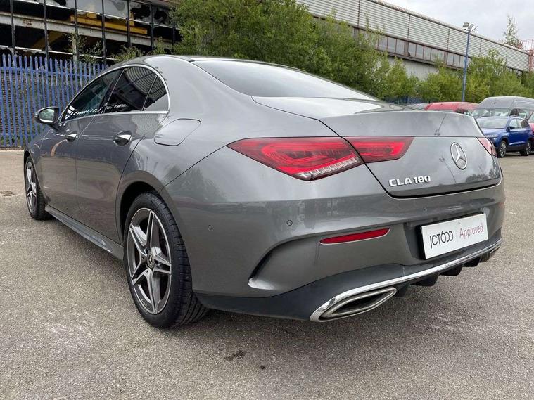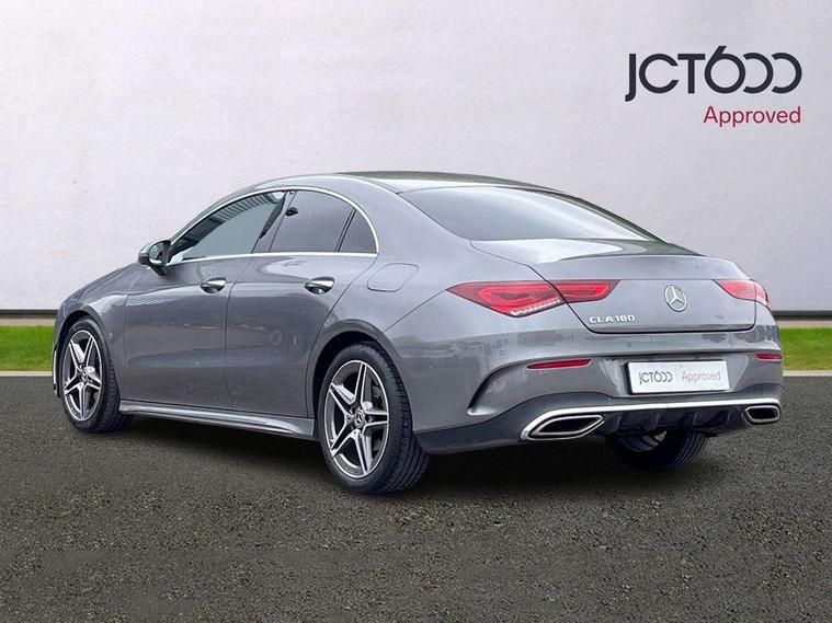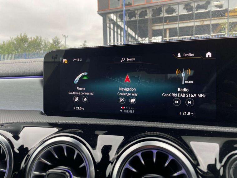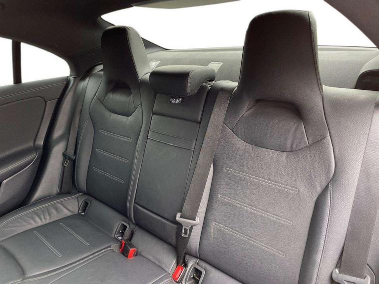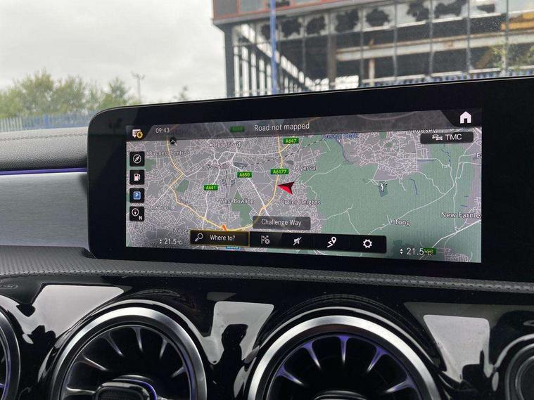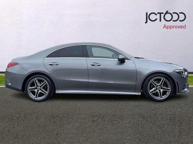 10.25 inch Instrument display with digital cockpit, 10.25 inch touchscreen central media display, Active lane keeping assist, Attention assist - Monitors steering behaviour and long journey fatigue, Bluetooth connection, Car wash mode, Cruise control with limiter, Direct steer system with speed sensitive power steering, DYNAMIC SELECT with a choice of driving modes (ECO, Comfort, Sport and Individual), ECO start/stop function, Fluid level warning indicator for fuel, oil, coolant and washer fluid, Hard-disk navigation, Hey Mercedes Voice activation, Lamp failure indicator, Mercedes me connect including emergency call system, accident recovery, breakdown and maintenance management, Mercedes me remote services, Outside temperature gauge, Owners manual and service booklet in English, Pre-installation of private car share, Preinstallation for Mercedes Benz link, Radio aerial integrated into front and rear windshields, Service indicator (ASSYST), Smartphone integration with Apple CarPlay and Android auto, Speed limit assist, Trip computer in multifunction display with current consumption indicator, 7G-DCT 7 speed automatic transmission, Lowered comfort suspension, Rear axle multi-link, DAB digital radio tuner, MBUX multimedia system with DAB digital radio and touchpad including satellite navigation, Mercedes Benz sound system (100 W) with 6 speakers, USB (type C) ports (2) in stowage compartment and 1 in front of centre console, Adaptive brake lights, AMG body styling with AMG front apron and rear apron and visible exhaust tailpipe in chrome trim elements, AMG bodystyling side skirts, Body colour bumpers, Body colour door handles, Chrome beltline strips, Chrome weather strip, Diamond radiator grille pins in chrome with silver painted louvres and chrome insert, Electric windows, Electrically adjustable and heated door mirrors with integrated LED indicators, Exhaust system with 2 Visible tailpipe trim elements and rear apron with trim in chrome, Headlamp assist automatic headlamp activation, Heated glass rear windscreen + timer control, High level LED third brake light, Interior mirror with black reading lamps and frameless, LED high performance headlamps with integrated LED daytime running lights, LED tail lamp, Privacy glass with dark tinting on rear side windows and rear window, Rain sensing windscreen wipers with two sensitivity settings, Rear fog lamp, Window line trim strip in chrome, 3 spoke flattened bottom nappa leather multifunction steering wheel with perforated leather in grip area, 40:20:40 split folding rear seat backrests, Air conditioning - Two zone thermotronic luxury automatic climate control with display, Air vents with surround in silver chrome, Automatic child seat recognition sensor, Black roof lining, Brushed stainless steel sports pedals with rubber studs, Floor mats with stitched AMG lettering, Front centre armrest with stowage, Galvanished gear shift paddles on steering wheel, Heated front seats, Illuminated front door sills with changeable cover, Illuminated glove compartment stowage, Interior lighting - 64 colour Ambient lighting, Luggage net on driver/front passenger seat backrest, Manually adjustable front seats, Manually height and reach adjustable steering column, Rear armrest with two integral cup holders for drinks, Rear head restraints, Sport seats with fixed head restraints, Stowage compartment in centre console with retractable cover, Sunvisors with illuminated vanity mirrors, Touchpad on center console, Twin front cupholders, Two outer rear seat isofix and top tether child seat fixing points, Light and sight pack - CLA, Mirror pack - CLA, Parking package - CLA, Seat comfort pack - CLA, Active bonnet pedestrain safety measure which detects an impact and raises bonnet by 65mm, Active brake assist includes forward collision warning system with autonomous braking, Adaptive brake assist with hold function and hill start assist, Anti-lock braking system (ABS), Black seat belts, Bonnet with power domes, Brake pad wear warning indicator, Childproof locks manually operated for rear doors and electrically operated for rear power windows, Crash responsive emergency lighting, Driver and front passenger head and sidebags, Driver and front passenger windowbags, Drivers knee airbag, Dual stage driver and front passenger airbags, Electric parking brake, Electronic stability programme with acceleration skid control, ESP curve dynamic assist, Front and rear seatbelt reminder, Front passenger seat occupancy sensor, Three point rear seat belts, Tyre pressure monitoring system, Warning triangle and first aid kit, Remote central locking and crash sensor with emergency opening function, Urban guard vehicle protection system with immobiliser and interior protection, Light aluminium with longitudinal grain interior trim, 18" 5 twin spoke design alloy wheels painted in titanium grey with high sheen finish, Summer tyres, Tirefit tyre sealant kit,
