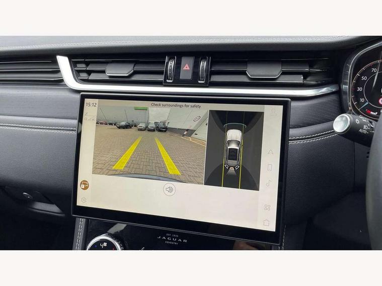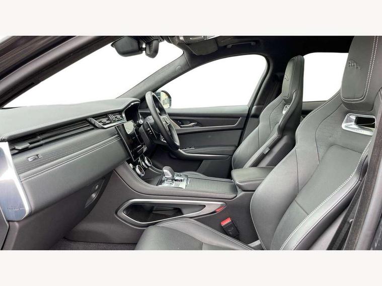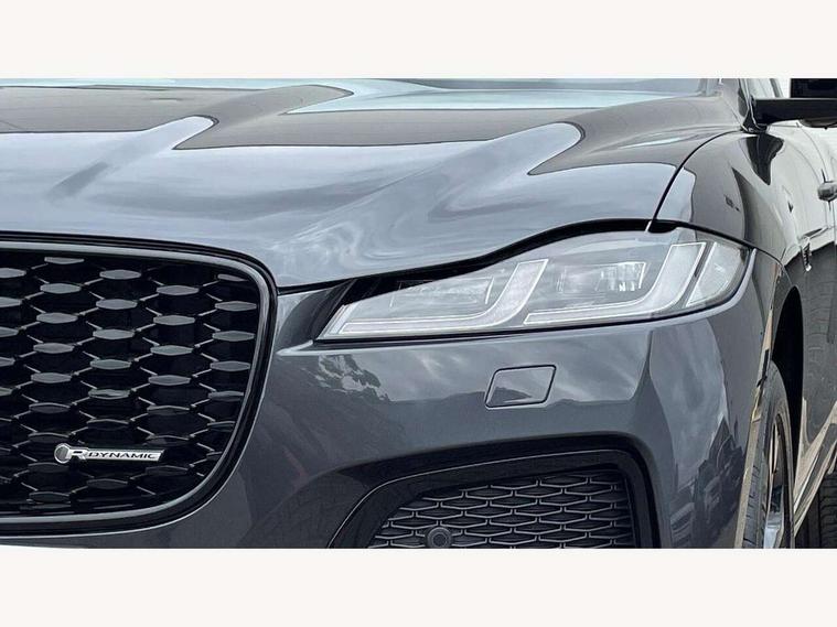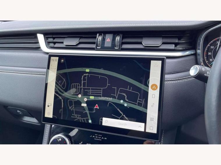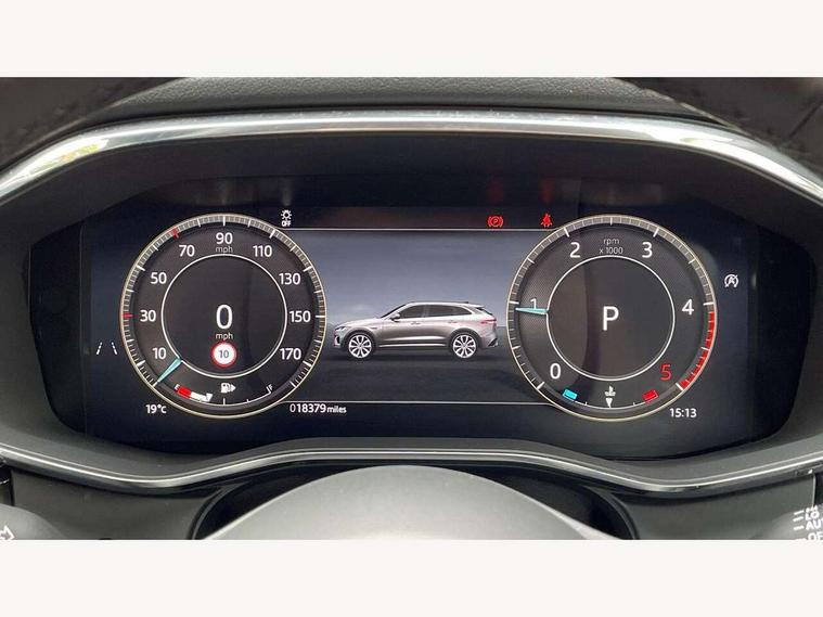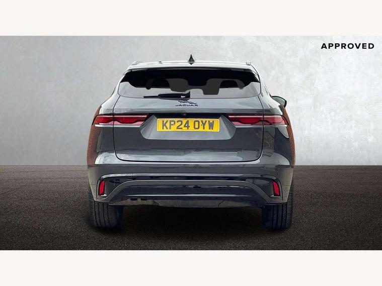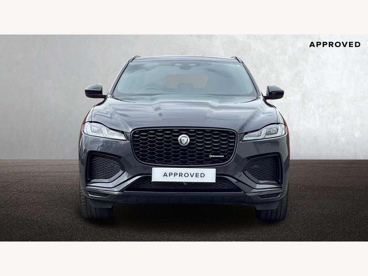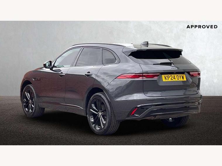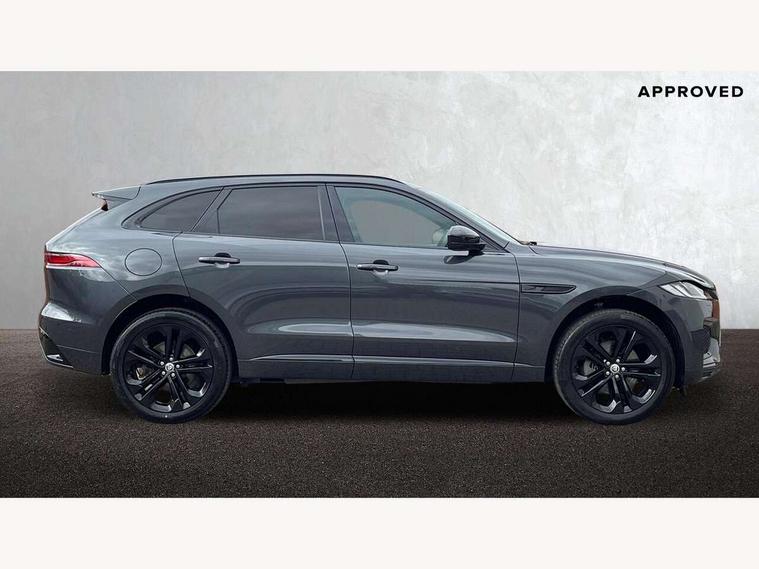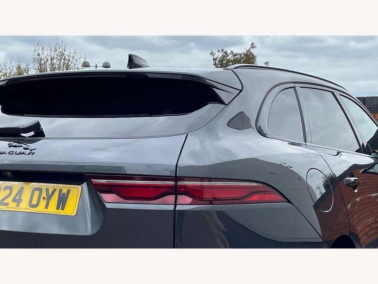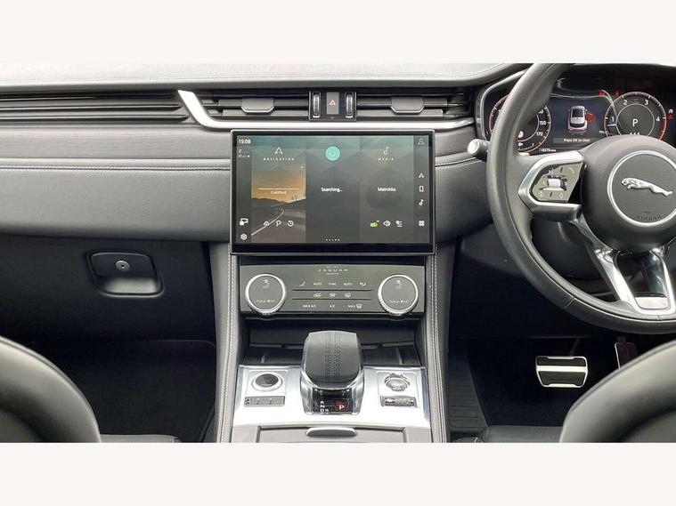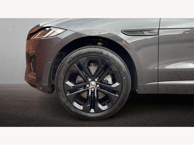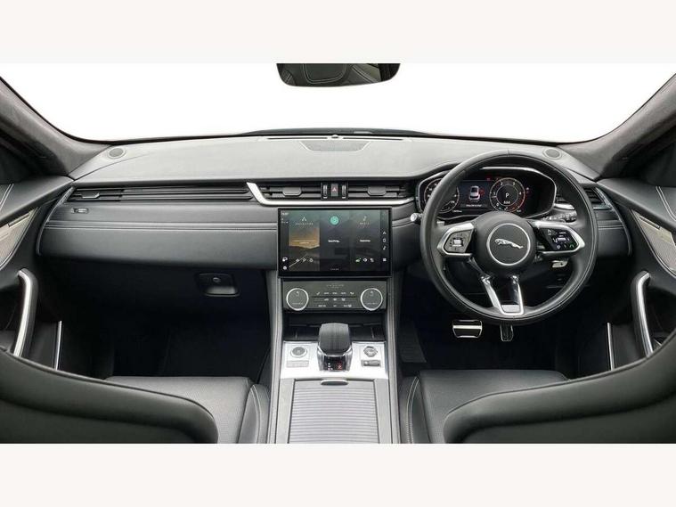 11.4" touchscreen, Adaptive cruise control with steering assist, Android Auto, Apple car play, Blind spot assist, Bluetooth connectivity, Clear exit monitor, Driver alert system, Driver condition monitor, eCall emergency call system, Eco driving style assistant, Electric power assisted steering, InControl remote, Interactive driver display digital with 12" TFT display, Jaguar Toggle shift selector, Lane departure warning system, Lane keep assist, Outside temperature gauge, Personalisation profile management, Pivi pro connected navigation system with app interface and media storage, Pro services and wifi hotspot, Push button starter, Rear collision monitor, Rear traffic monitor, Service interval indicator, Speed proportional steering, Start up sequence with movement in dials and lighting, Traffic sign recognition with adaptive speed limiter, Trip computer, Voice control system, Wireless device charging, 8 speed automatic transmission, Adaptive dynamics, All terrain progress control, All Wheel Drive (AWD), Configurable dynamics, Open differential with torque vectoring by braking, AM/FM radio, Bluetooth streaming, DAB Radio (Digital Audio Broadcasting), Dynamic volume control, InControl apps, InControl protect, iPod integration, 3 flash lane change indicators, AHBA and animated directional indicators, Approach Illumination, Auto dimming rear view mirror, Automatic headlights, Electric heated/power fold memory door mirrors with approach lights and auto dimming driver side, Electric windows with one touch open/close and anti trap, F-Pace and R Dynamic badge, Green tinted glass, Heated front windscreen + heated washer jets, Heated rear window with timer, Illuminated metal tread plates with Jaguar script, Jaguar script and leaper, LED High level third brake light, LED tail lights, Metal load space scuff plates, Non acoustic front windscreen, Privacy glass (rear side windows and rear screen), R Dynamic badge on side door, Rain sensor windscreen wipers, Rear fog lights, Rear metal tread plates, Rear side wing doors, Rear wiper, Trailer stability assist, Variable front intermittent wipers, 12V power point front, 3 rear headrests, 3 seat bench in 2nd row, Additional power sockets - Two additional USB sockets in rear centre console and one 12V socket in trunk, Air distribution speed, Bright metal foot pedals, Centre armrest console, Centre console with side storage, Configurable cabin lighting, Deletion loadspace storage rails, Door sill tread plates, Ebony suede cloth headlining, Electrically adjustable steering column, Fold flat front seats, Front centre armrest with storage compartment, Front door storage space, Glovebox finisher with jaguar script, Heated steering wheel, Hooks in loadspace, Illuminated glovebox, Interior front door handles with separate locking switches, ISOFIX on outer rear seats, Jaguar sense, Leather steering wheel, Luggage tie downs in loadspace, Mist sensing, Multifunction steering wheel, Overhead lighting console, Overhead stowage for sunglasses, Passive front head restraints, Premium carpet mats, Rear air vents, Rear armrest with twin cupholders, Rear centre headrest, Rear door storage space, Reversible boot floor, Satin chrome gearshift paddles, Shopping bag hook, Single front passenger seat, Sunvisors with illuminated vanity mirrors, Twin front cupholders with cover, Online Pack with data plan - F-Pace, 355mm front brakes and 325mm rear brakes, 3x3 point rear seatbelts, ABS, All surface progress control (ASPC), Brake pad warning light, DSC - Dynamic Stability Control, Electric parking brake (EPB), Emergency brake assist, Front airbags with passenger seat occupant detector, Front and rear seatbelt reminder, Front side airbags, Full length side window curtain airbag, Hill launch assist, Power operated child locks, Traction control, Tyre pressure monitoring system, Immobiliser, Keyless entry, Keyless Start, Locking wheel nuts, Perimeter alarm, Remote central locking, Valet mode,