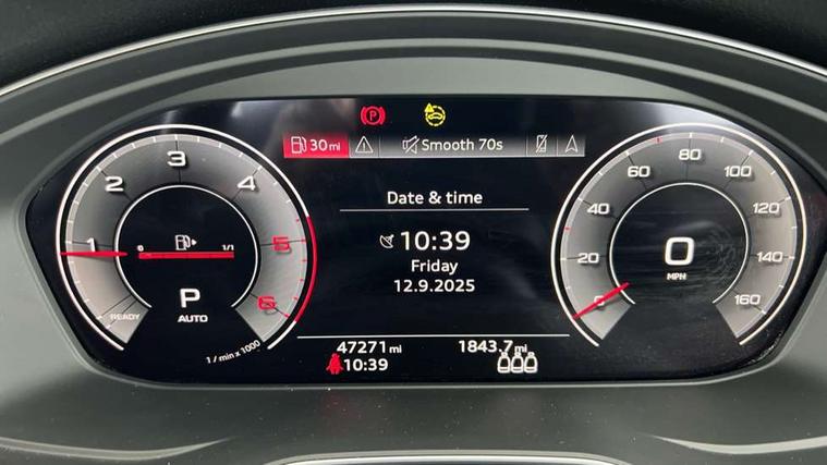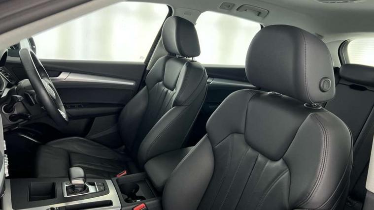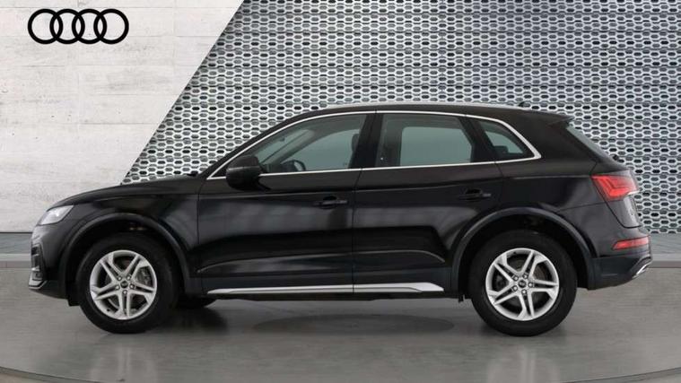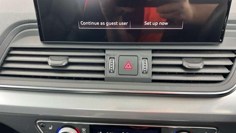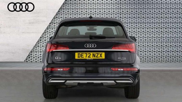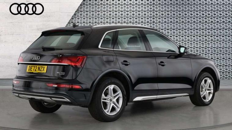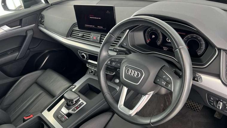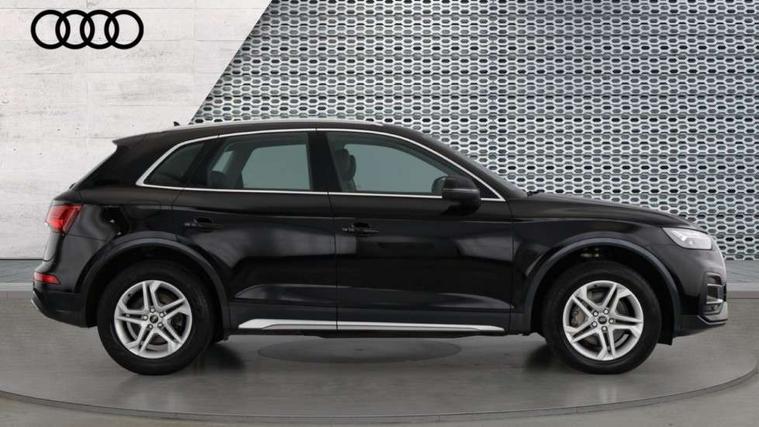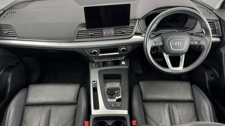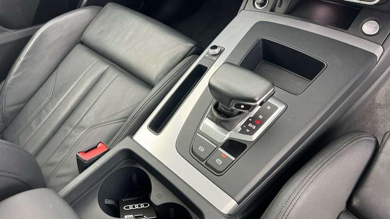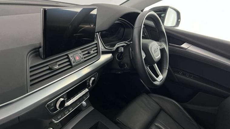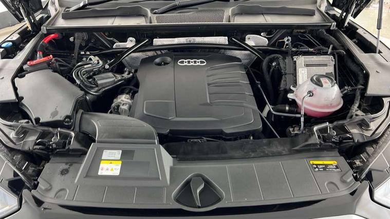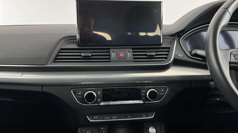 Audi connect safety and service (e-call), Audi connect with Amazon Alexa Integration, Audi drive select, Audi virtual cockpit plus with 12.3" screen and three different layout designs, Audi wireless smartphone interface, Automatic start-stop system with coasting functionality and efficiency programme, Bluetooth interface, Cruise control + speed limiter, Electro - mechanical power assisted steering, MMI navigation plus with 10.1" touch screen, Power tailgate, Reversing camera, Service interval indicator, Voice control system with Audi hotword activation "Hey Audi", Diesel particulate filter, Dynamic suspension, Quattro on demand, 2 x USB charging port with aux input socket, DAB Digital radio, Acoustic windscreen, Air inlets in matt titanium black with blades in matt aluminium silver, Aluminium roof rails, Auto dimming door mirrors, Auto dimming rear view mirror, Automatic headlight adjustment, Automatic headlights and windscreen wipers, Body colour bumpers, Body colour door mirrors, Chrome plated exhaust trims, Daytime running lights, Door sills in Selenite silver, Electric adjustable/heated/folding door mirrors, Front and rear electric windows, High level LED brake light, LED headlights and LED tail lights, Lower bumpers painted in contrast Manhattan grey, Matt selenite silver underbody protection, Matt twilight grey radiator grille with chrome vertical struts, Rear chrome trim strip below lights, Rear diffuser strip in selenite silver, Rear side wing doors, Rear spoiler, Rear wiper, Roof bars, 3 rear headrests, 3 spoke multifunction leather steering wheel with shift paddles, 40:20:40 split folding 3 rear bench seat in 2nd row with rear centre armrest, Comfort front centre armrest, Deluxe 3 zone electronic climate control, Door sills trims with aluminium inlays, Front/rear floor mats, Heated front seats, Height adjustable front head restraints, Height/reach adjustable steering column, ISOFIX child seat mounting and top tether, Luggage compartment cover, Manual seat adjustment with 4-way electric lumbar support, Removable luggage compartment floor, Silver cloth headlining, Single front passenger seat, Sunvisors with vanity mirrors, Twin leather upholstery + front sports seats, High gloss pack - Q5, LED interior light pack - Q5, 3 point seatbelts on all seats, 6 airbags - Driver, front passenger, curtain and side airbags, Electrically operated child locks on rear doors, Electromechanical parking brake, Electronic stabilisation control including ABS, ASR and EDL, Front passenger airbag deactivation, Hill descent control, Hill hold assist, Multi collision brake assist, Pop-up bonnet for pedestrian protection, Pre sense city, Seat belt force limiter, Seatbelt monitoring, Tyre pressure warning, Warning triangle and first aid kit, Anti theft alarm, Anti-theft wheel bolts, Keyless Go access/ignition system, Remote central locking, Aluminium rhombus inlay,