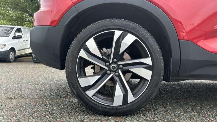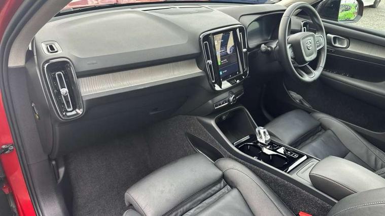 12.3" Progressive Driver Display, 360 degree surround view parking camera with side proximity sensors, 9" centre console portrait touch screen, Adjustable steering wheel force, Android auto (Wired), Apple carplay (wired), Bluetooth handsfree system, Driver alert control, Driver assistance (pilot assist and adaptive cruise control), Driver awareness - Blind spot information system with steer assist, cross traffic alert with autobrake and rear collision warning and mitigation, E-call, Front park assist, Google automotive services - Enabled entertainment apps, navigation with google maps, voice recognition with google assistant, Hands free power tailgate, Intelligent speed assistance, Lane keeping aid, Oncoming Lane Mitigation, Rear park assist, Speed sensitive steering, Volvo cars services with app - Driving journal, emergency and breakdown call, engine remote start, remote door locking/unlocking and vehicle dashboard, Wireless/Inductive Mobile Phone Charging, Automatic transmission with start/stop and manual change functions, Dynamic chassis, DAB Digital radio, Premium Sound by Harman Kardon, Dolby Pro Logic II Surround Sound, Dirac Unison, 12 speakers/600W and subwoofer, Steering wheel mounted remote controls, Active bending pixel LED headlights with adaptive shadow technology, Active high beam incorporating daytime running lights, Adaptive brake lights with high level LED brake lights, Auto dimming feature for exterior door mirrors, Auto dimming interior mirror, Automatic headlamp levelling, Dark tinted windows - rear side windows and rear screen, Front aluminium tread plates, Front and rear electric windows, Headlight cleaning system, High gloss black front and rear skid plate, High gloss black front bumper deco, High gloss black mesh front grille with high gloss black surround, High gloss black window trim, Home safe and approach lighting, Integrated roof rails in high gloss black, LED front fog lights with cornering function, Power glass tilt and slide panoramic sunroof with sun curtain, Puddle lights, Rain sensor with automatic windscreen wiper activation, Rear side wing doors, Rear wiper, Roof antenna, Roof spoiler, Visible VIN plate, 12V socket in front tunnel console and luggage compartment, 2-Zone electronic climate control with CleanZone air quality system and pollen filter, 3 seat bench in 2nd row, 3 Spoke tailored steering wheel with chrome trim, 60/40 versatile split folding rear seat, Centre console cupholders and storage, Flexible load floor and grocery bag holder, Floor mats, Front cabin courtesy lights, Front door pocket, front cupholder, ambient front door, rear reading, rear courtesy, instrument panel and tailgate lighting, Front footwell illumination, Front headrests, Front reading lights, Front seat cushion extensions, Front side step illumination (under door), Glovebox bag hook, Heated front seats, Height/reach adjustable steering column, High gloss centre tunnel deco, Illuminated glovebox, Illuminated luggage compartment, Illuminated vanity mirrors + ticket holder, Integrated waste bin, Isofix attachments on outer rear seats, Load cover, Load protection net, Multi directional lumbar support for driver and passenger seat, Power driver seat with memory + exterior mirrors memory, Power folding rear headrests, Power passenger seat, Rear armrest with cupholders, Single front passenger seat, Underfloor cargo storage, Climate pack without heated front seats - XC40, 3x3 point rear seatbelts, City safety with steering support with Pedestrian + cyclist + front collision warning with full auto brake and rear auto brake, Driver and passenger airbags, Drivers knee airbag, Electronic parking brake with auto hold, First aid kit, Front and outer rear seatbelt reminder and pretensioners, Front seats SIPS airbags, Hill descent control, Hill start assist, Inflatable curtain, Passenger airbag cut-off device, Power child locks on rear doors, Road sign information display, Run off Road Protection, SIPS (Side Impact Protection System), Slippery road and hazard light alert, Stability and Traction Control with Spin control, Engine Drag Control and Corner Traction Control, Tyre pressure monitoring system, Vehicle deceleration control with Anti-lock Brake System, Electronic Brake Distribution and Emergency Brake Assist, Warning triangle, WHIPS whiplash protection system - front, 2 x Key integrated remote control central locking including with deadlocking system and auto open/close windows and sunroof, Anti-theft alarm including immobiliser/volume sensor + level sensor, Keyless drive includes keyless entry and keyless start, Locking wheel nuts,