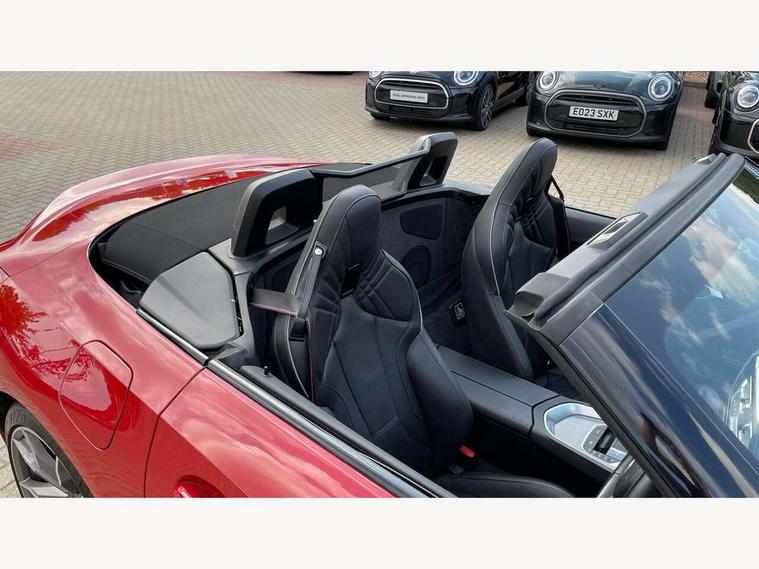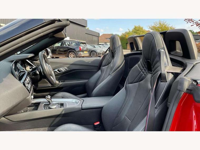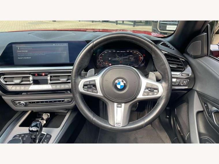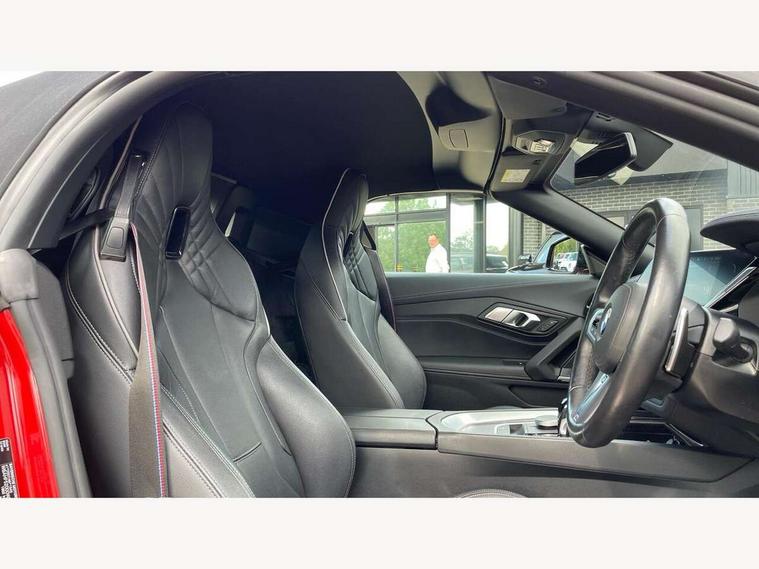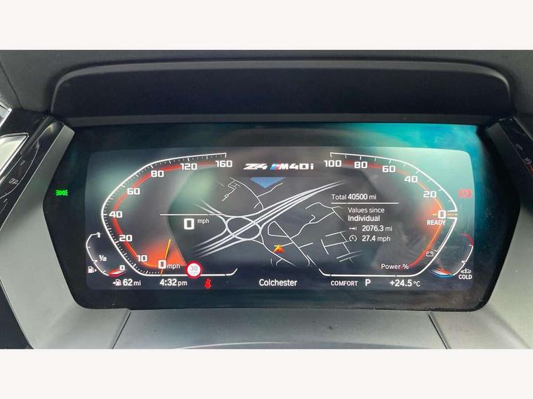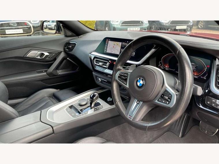 Active Guard, Auto start-stop, Bluetooth hands free telephone connection with USB audio interface + audio streaming, BMW ConnectedDrive online services, BMW Live Cockpit Professional with 10.25" high resolution instrument and control display, BMW Teleservices, Electric power steering, Fuel gauge, Instrument cluster, Oil sensor for level and grade, warning by check control system, Oil temperature gauge, Optimum shift indicator, Pull away assistant, Run flat indicator, Speedometer with mph readout, Tachometer, Variable sport steering, Adaptive M suspension, Double joint spring, Double VANOS, Drive performance control with ECO PRO comfort + sport mode, Eight speed steptronic sport transmission, with gearshift paddles, Fuel tank breather system, High precision injection, M Sport differential, HiFi loudspeaker system, USB connection, Automatic headlight beam throw control with load dependent regulating reaction, dynamic compensation of braking dive and acceleration squat, Cerium grey exterior mirror housing, Door sill finishers with M designation, Door sill strips, Dynamic braking lights comprising activated hazard warning flashers and third brake lights, Electric heated rear window, Exhaust tailpipe - split left and right, Exterior mirrors - electrically folding with anti-dazzle, Fingertip control / anti-trap function on electric window, Follow me home headlight function, Front and rear bumper system with replaceable deformation elements, Green tinted heat protection glazing, Heated windscreen washer jets, High gloss black window recess finisher, High gloss shadow line, Interior rear view electrochromatic mirror with automatic anti dazzle function, Kidney grille in mesh design, LED daytime driving lights, LED Indicators, LED rear lights, Lightweight engineering, Model logo, Tailgate release handle, Two stage brake force display, Visible VIN plate, Welcome lighting, Windscreen wipers with adjustable interval, 12V power socket in front storage compartment, Activation of interior lighting, Additional storage compartment - 4 lashing eyes, strap and storage net, Ambient lighting, Battery in luggage compartment, Child seat ISOFIX attachments for passenger seat, Cupholder, Driver and front passenger heated seats, Driver and front passenger lumbar support, Electrically adjustable front driver and passenger seats with memory, Front and rear velour floor mats, Front headrests, Height adjustable mechanically and infinitely variable steering column, M sport leather steering wheel, M Sport seats for driver and passenger, Microfilter and active carbon filter, Sunvisors with vanity mirrors, Two zone automatic air conditioning, Vernasca leather upholstery, Connected package professional - Z4, 3 point front seat belts, Airbags - Front driver and passenger, front and side impact protection, Anti lock braking system (ABS) with brake assist, Automatic Stability Control (ASC), BMW emergency call, Brake energy regeneration, Braking readiness, Cornering brake control (CBC), Crash sensor activating central locking release, hazard warning lights, fuel cut off, interior lighting, safety battery terminal clamp and airbags, Deactivation of fuel pump in the event of a crash, Dry braking, Dynamic brake control, Dynamic stability control + (DSC+), Dynamic Traction Control - DTC, Electromechanical parking brake with automatic drive away release and auto hold function, Front and rear brake discs with interior ventilation, M Sport brakes with blue calipers M designation in front, M sport seatbelt, Plastic fuel tank, Pyrotechnic seat belt tensioners, Roll over protection, Seat belt force limiter, Seat belt stopper, Seat occupancy protection, Two tone horn, Tyre pressure monitoring with three level warning strategy, Centre lock switch, Closing system with central locking, Electronic vehicle immobiliser, Start/stop button with Comfort Go keyless engine start and auto Start/stop deactivation button, Thatcham cat 1 remote alarm, Sensatec dashboard, 19" Double spoke M light alloy wheels in bicolour cerium grey - style 800M, Reduced rolling resistance tyres, Tyre repair kit,