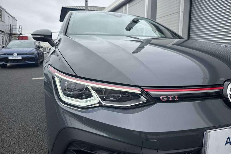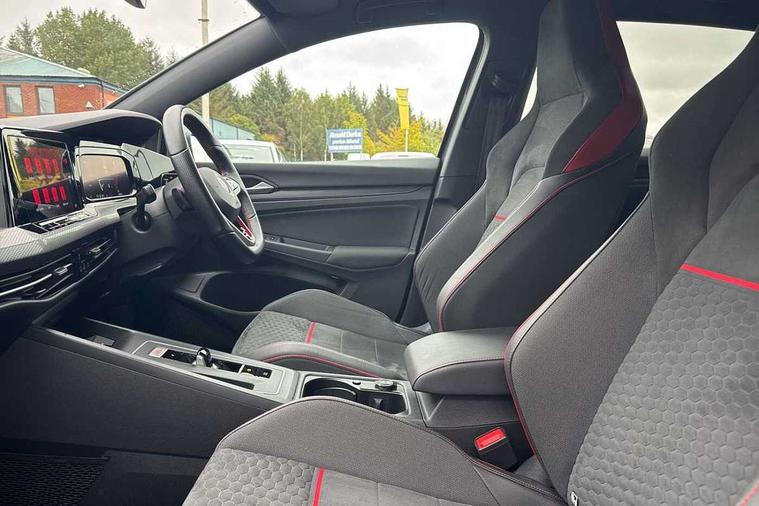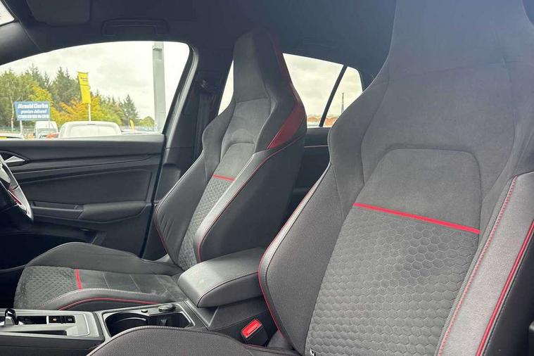 Adaptive cruise control (ACC) with speed limiter and front assist (reacting to vehicles pedestrians and cyclists), Car2X communication, Digital cockpit pro - 10.25" high resolution TFT dash display screen with customizable menus and information, Driver alert system, Driver profile selection, Dynamic road sign display, eCall - Emergency call service for SOS calls to emergency response, Lane assist, Lane change assistant, Mobile phone interface with wireless inductive charging function, Progressive steering, Speedo, rev counter, electronic odometer, trip, service interval display, exterior temperature and fuel gauge, Start/Stop function, Travel assist with emergency side assist with electrically foldable door mirrors, Warning buzzer and light for front seatbelts unfastened, Wireless app connect, Front differential lock, Petrol Particulate Filter, XDS electronic differential lock for improved traction and handling, Premium USB cable in choice of either Apple or Android smartphone compatibility, Advanced high beam control dynamic light assist for LED matrix headlamps, Ambient lighting, exterior illuminated styling elements at the sides, Auto dimming rear view mirror, Automatic headlamp activation with Coming home and Leaving home feature, Body colour bumpers, Body colour door handles, Body colour door mirrors with integrated indicators, Body colour rear roof spoiler, Chrome plated tailpipes (1 either side), Front and rear electric windows, GTI Clubsport styled bumpers, Heat insulating glass windscreen, Heated rear windscreen, High level 3rd brake light, Highway light, Illuminated front grille, IQ.Light - LED Matrix headlights, dynamic headlight control with advanced high beam control matrix dipped main beam + LED DRL + 22 LED lights, LED front fog lights with 5 honeycomb design, LED License plate illumination, LED rear combination lamp inlcuding dynamic turn signal, Performance rear spoiler, Rain sensor, Rear fog light on one side and reversing lights on both sides, Rear tinted glass 65% light absorbing from B pillar backwards, Rear windscreen washer and wiper with interval delay, Remote electrically heated, adjustable and foldable door mirrors, including door mirror puddle lights and reverse activated kerb-view adjustment on pa, Welcome light, 12V socket in front centre console, 12V socket in luggage compartment, 3 rear head restraints, 3 zone climate with controls in the rear, Aluminium gear knob, Ambient lighting - Customisable 30 colour ambient lighting, Black roof lining, Brushed stainless steel pedals, Centre console, Chrome plated surround to electric mirror button, window switch and air vent surrounds, Drivers and front passengers sun visors with vanity mirrors, Front + rear carpet mats, Front centre armrest with storage compartment, Front cupholders x 2, Front reading lights x 2 incorporating LED technology, Front seat lumbar support adjuster, Front sports seats, Glovebox, Height adjustable front seats, Height and reach adjustable steering wheel, Isofix child seat preparation for 2 rear child seats and front passenger seat, Leather wrapped multifunction sports heated steering wheel with paddle shift, Luggage compartment lighting, Removable luggage compartment cover, Split folding backrest with centre armrest and unsplit rear seat bench, Woven fabric storage compartments in front and rear doors, 3 point height adj front seatbelts + pretensioners, 3 rear three point seatbelts, ABS, Driver and front passenger airbag with front passenger airbag deactivation, Drivers and front passengers safety optimised head restraints, Electronic parking brake with auto hold, ESC (Electronic Stability Control), Extended pedestrian protection measures, Front and rear passengers curtain airbag system including front side airbags, Front disc brakes, Rear disc brakes, Two tone horn, Tyre pressure monitoring system, Alarm with interior protection and deactivation via infotainment system, Electronic engine immobiliser, Keyless entry with start/stop button on centre console, Black metal chrome decorative inserts in dash and front door trim panels, Soul dashboard, Tyre mobility kit Includes 12V compressor and tyre sealant,