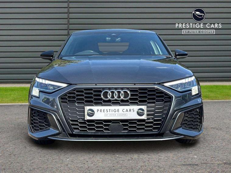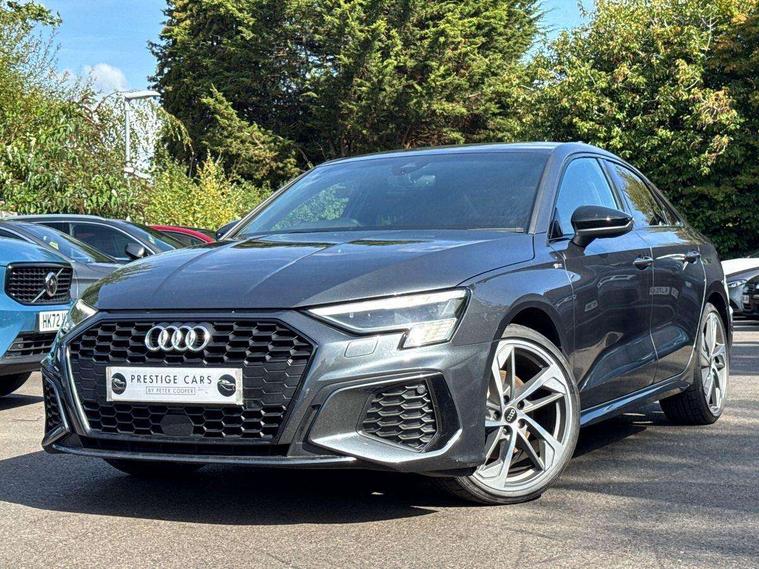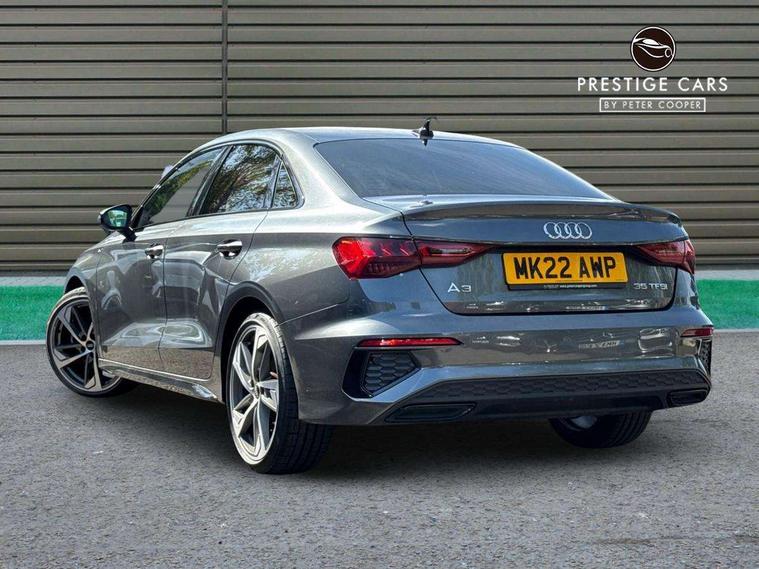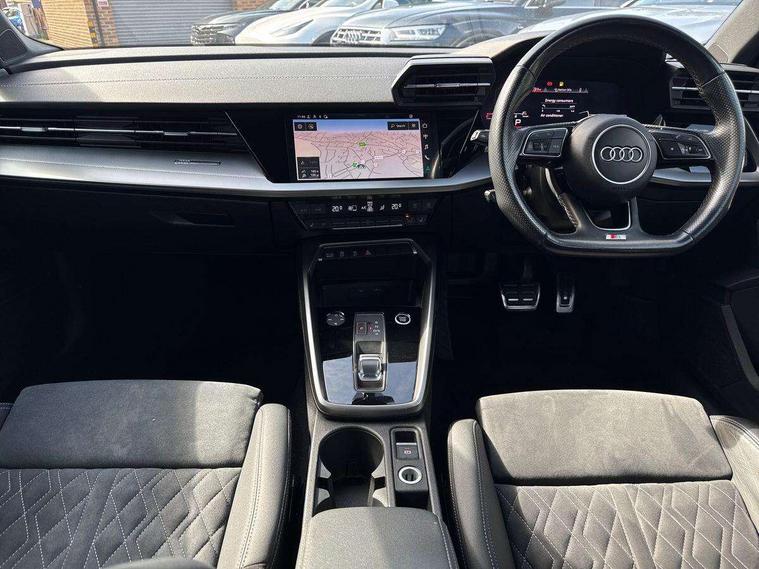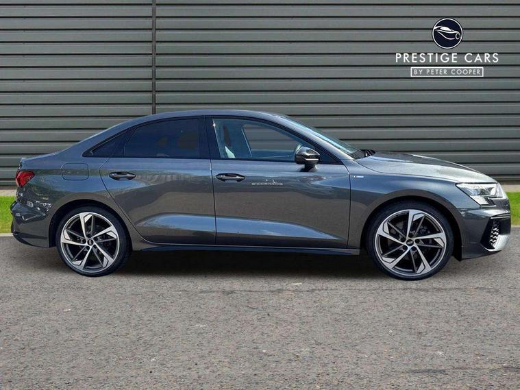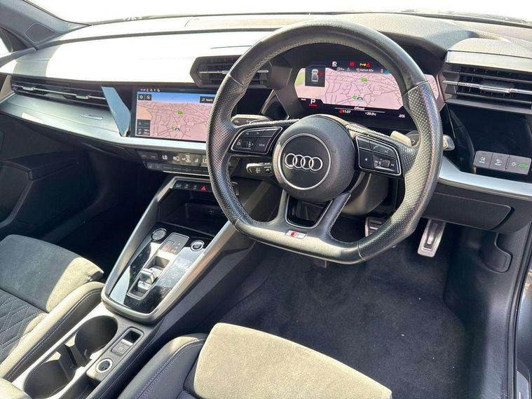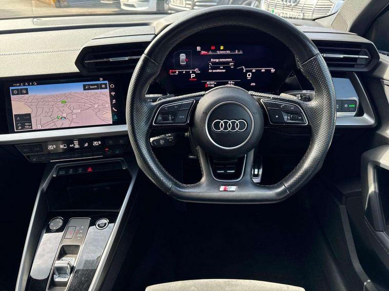 Audi connect emergency call and service, Audi drive select (Auto, Comfort, Dynamic, Efficiency and Individual), Audi smartphone interface, Audi virtual cockpit plus - 12.3" dynamic digital instrument cluster, Automatic start/stop system with recuperation, Bluetooth interface, Collision avoidance assistant, Electromechanical power speed sensitive steering, Lane departure warning system, MMI Navigation Plus with high resolution 10.1" colour touch screen display, Service indicator, Voice control system with natural language interaction, Sports suspension, 2x USB Type C ports (for charging and data transfer), 6 passive loudspeakers, CD player, DAB Digital radio, 3rd brake light, Acoustic glass windscreen, Audi matrix LED headlights, LED rear lights, dynamic front and rear indicators and headlight cleaning system, Auto dimming frameless rear view mirror, Electrically adj heated/folding + automatically dimming exterior mirrors + automatic kerb side function for passenger side exterior mirror, Front electric windows, Illuminated door sills with aluminium inserts at the front with S logo, Integrated LED indicators in door mirrors, LED daytime running lights, Light and rain sensors, Model and engine designation badges at rear, Privacy glass - dark tinted rear window, rear door and side windows, Rear electric windows, S roof spoiler, 12V socket and storage compartment in front centre console, 4 way electrically adjustable lumbar support for driver and front passenger, 40/20/40 split folding rear seat bench with cupholder, Black cloth headlining, Dual zone electronic climate control, Electrically adjustable front seats, Front and rear centre armrest in leather, Front and rear headrests, Front/rear floor mats, Heated front seats, Height and reach adjustable steering wheel, Interior lighting - glove compartment light and right hand side, Luggage compartment floor covering, Seat side bolsters, Stainless steel pedals and front footrest in black, Aluminium interior elements pack - A3, Black styling pack - A3/S3, Dinamica microfibre/mono.pur 550 artificial leather pack - A3 Saloon, Extended ambient lighting pack - A3/S3 Saloon, LED interior lighting pack - A3 Saloon Edition 1/Vorsprung, 3x3 point rear seat belts, Driver and front passenger airbag with passenger airbag deactivation, Electronic Stabilisation Control (ESC) including ABS, ASR and EDL, First aid kit with warning triangle and 2 safety vests, Front side airbags with head airbags and interaction airbag, Hill hold assist, Pre-sense front with pedestrian and cyclist detection, Seatbelt monitoring, Tyre pressure loss indicator, Anti theft alarm, Anti-theft wheel bolts, Electronically operated child lock, Immobiliser, Remote control central locking, Aluminium air vent surrounds, Aluminium trim elements, Dark spectrum aluminium inlays, accent surfaces in the dashboard and centre console in platinum grey silk effect paint finish, 19" 5 arm trapezoid design alloy wheels in titanium matt grey with diamond cut finish,