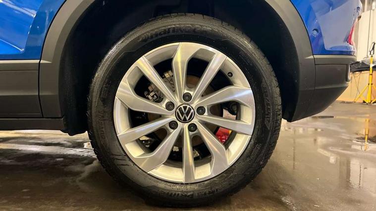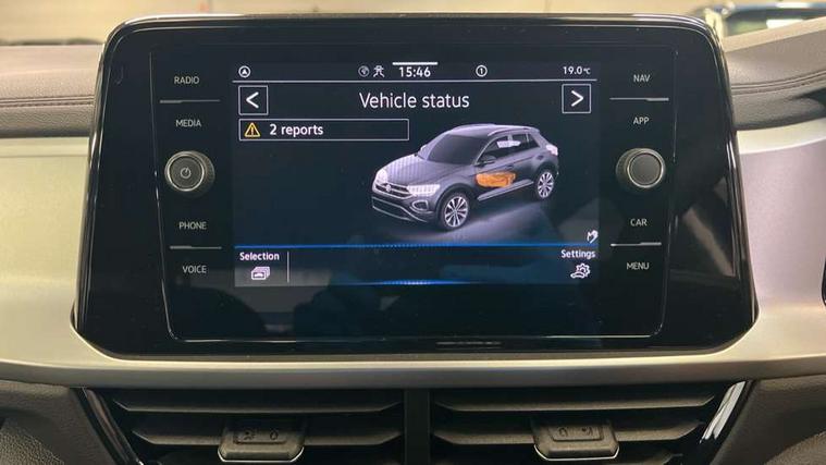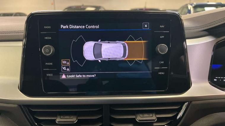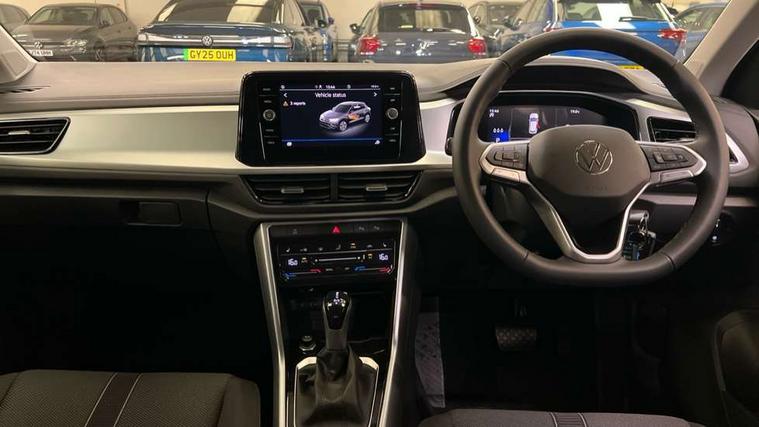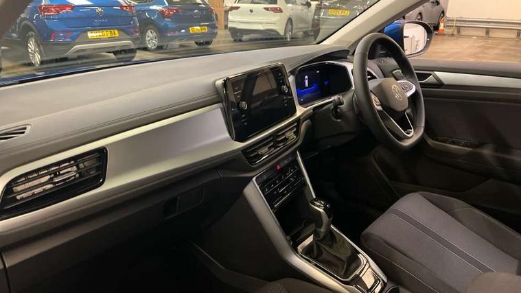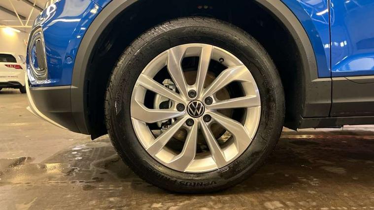 Advanced driver attention and drowsiness monitor, Dynamic road sign display, Emergency call service, Lane keeping system Lane Assist, Mobile phone interface, Modified key software - reduce switch off time for key status change to Long no motion, Online services, Park assist including front and rear parking sensors, Power assisted speed sensitive steering, Service interval indicator, Tailgate/trunk lid release from outside, Think blue trainer driver tips and journey analysis, Warning sound and light for front seatbelts unfastened, Wireless app connect, Battery regeneration during braking, Front shock absorption, Rear shock absorption chassis with increased ride height, Start/stop function with battery regeneration, DAB Digital radio, Diversity antenna for FM reception, Front and rear 6 speakers, Music playback - MP3, WMA and AAC files, Premium USB cable in choice of either Apple or Android smartphone compatibility, SD card slot, Simultaneous pairing of 2 compatible mobile devices, Title and cover art display, We Connect and We Connect Plus functionality, Auto dimming interior rear view mirror, Automatic hazard lights activation under emergency braking, Automatic headlight control with LED separate daytime running lights with coming/leaving home function, Black roof rails, Body coloured bumpers and radiator grille with chrome trim and front fog lamps with chrome bezel, Body coloured exterior mirror housings and door handles, Electrically adjustable and heated door mirrors, Extended roof spoiler, Exterior mirrors aspherical on driver side, convex on front passenger side, External USB type C socket and charging sockets, Front windscreen wiper with intermittent wipe and 4 position delay, Heated rear window, LED 3rd brake light, LED rear combination lamps, LED rear number plate lights, Power windows with comfort operation and circuit breaker, Rain sensor, Rear exhaust tailpipe, Rear fog light on one side and reversing lights on both sides, Rear side wing doors, Rear wash/wipe with intermittent wipe setting, Remote electrically foldable door mirrors, puddle lights and reverse activated passenger's door mirror, 12V power socket in centre console, 3 rear head restraints, 3 seat bench in 2nd row, 4 load lashing points in luggage compartment, Air care climatronic air conditoning system with active combination filter and 2-zone temperature control, Ambient lighting with mirror logo projection, Cloth upholstery, Door and side trim panel in cloth, Drawer under drivers seat, Driver/front passenger seat height adjustment, Front centre armrest, Front comfort sports seats, Front cupholders x 2, Front reading light, Front seat back storage pockets, Glove compartment door with light, Instrument lighting, white adjustable panel illumination, Interior light delay, Isofix child seat preparation, Leather gearshift handle, Load-through provision with cup holder when folded down ('Unsplit rear seat bench, split folding backrest, with centre armrest), Luggage compartment lighting, Lumbar support for driver's and front passengers seat, Non-folding front passenger seat backrest, Single front passenger seat, Storage compartment in left and right luggage area, Storage compartment in rear doors, Storage compartments in driver and front passenger doors, Sunvisors with illuminated vanity mirrors, Variable boot floor, height adjustable and removable, Driver assistance pack without proactive passenger protection - T-Roc Life/Match, 3 point height adj front seatbelts + pretensioners, 3 point seatbelts in outer rear with ECE label, ABS, Child locks on rear doors, City emergency braking and pedestrian monitoring, Driver and front passenger airbag with front passenger airbag deactivation, Driver and front passenger safety-optimised head restraints, Drivers seatbelt reminder, Electronic parking brake, Electronic Stability Control (ESC) inc EDL (Electronic Differential Lock) and ASR (Traction Control), Front and rear passengers curtain airbag system including front side airbags, Front disc brakes, Hill start assist, Predictive pedestrian protection, Rear disc brakes, Two tone horn, Tyre pressure loss indicator, Volkswagen roadside assistance, Alarm with interior protection, Pewter matt decorative inserts for intrument panel, centre console and door panels at the front, Trims for alloy wheels,