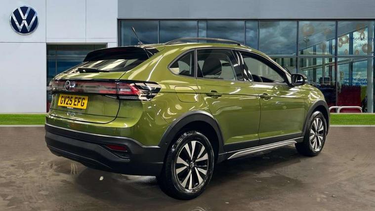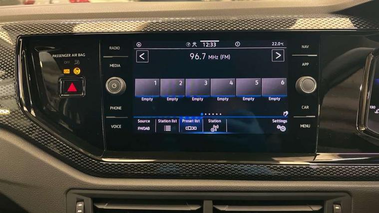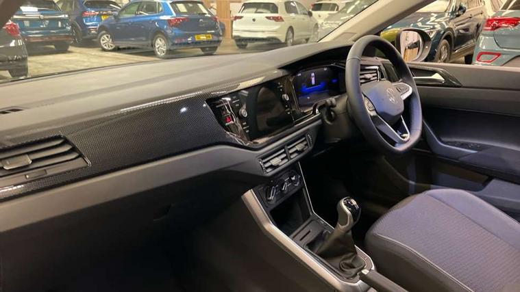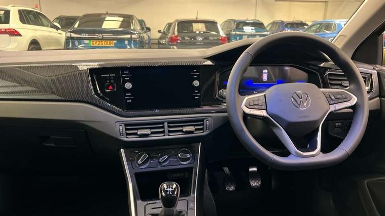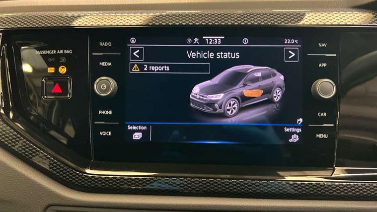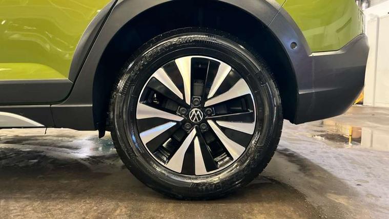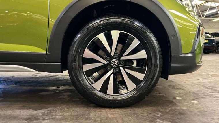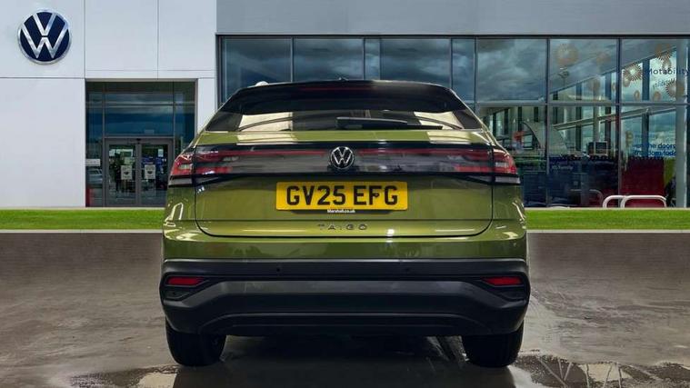 8" Digital cockpit basic display, Advanced driver attention and drowsiness monitor, Dynamic road sign display, e-Call (emergency call), Power Steering, Predictive adaptive cruise control, Travel assist including emergency assist, Washer fluid level indicator, Wireless Charging including Bluetooth, Start-stop system with battery regeneration (recuperation - energy recovery during braking), Digital radio reception (DAB+), WeConnect plus, Ambient lighting with logo projection, Aspherical driver's exterior mirror, Auto headlights, Body coloured bumpers, Body coloured exterior mirror housings and door handles, Electric windows, External USB type C socket and charging sockets, Heat insulating glass windscreen, LED rear combination lamp, LED third brake light, Left convex exterior mirror, Power folding adjustable/heated exterior mirrors and front passenger exterior mirror lowering function, Rear fog light on one side, reversing light on both sides, Rear side wing doors, Rear wash/wipe with intermittent wipe setting, 'Slash/ Austin' Cloth upholstery, 12V socket in centre console, 2 front reading lights, 3 rear head restraints, 3 seat bench in 2nd row, Black carpets, Child seat anchor for child seat system i-Size, 2x top tether and child seat anchor in front on front passenger side, Door and side trim panels in titan black, Driver and front passenger seat height adjustment, Front centre armrest, Handbrake lever handle in leather, Height and reach adjustable steering wheel, Leather trimmed gear knob, Leather wrapped multifunction steering wheel, Luggage compartment floor, Luggage compartment light, Lumbar support for driver's and front passengers seat, Seat covers in titanium black, Single front passenger seat, Split folding backrest with centre armrest and unsplit rear seat bench, Storage compartment under front seats, Sun visors with illuminated vanity mirrors, Chrome Package - Taigo, Drivers assistance pack - Taigo, Light and Sight pack including High beam assist - Taigo, 2 x 3-point seatbelts/outer rear seats with ECE label, 3-point seat belts in front with pretensioner and height adjustment, 3-point seatbelt for centre rear seat, Adaptive driver and front passenger airbags with passenger airbag deactivation function, Driver and front passenger airbags with front passenger airbag de-activation, front side and curtain airbags, Driver and front passenger safety-optimised head restraints, Electronic stability control, Extended and predictive pedestrian/ cyclist protection, Front and rear disc brakes, Front curtain and side airbags with center airbag, Hill start assist, Manual rear child locks, Single tone horn, Tyre pressure loss indicator, Anti-theft alarm system with interior monitoring, backup horn, and towing protection, Lava stone black gloss/matt decorative inserts in dash and front door panels, Low rolling resistance tyres,