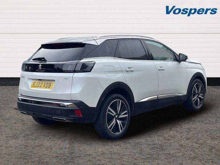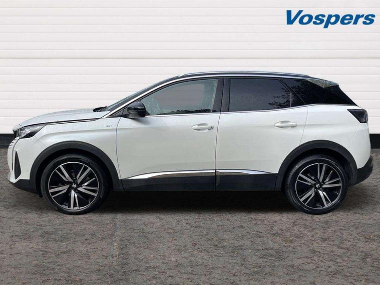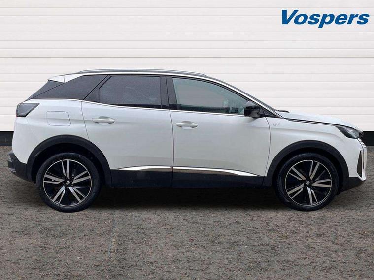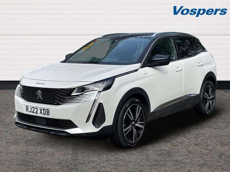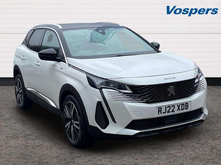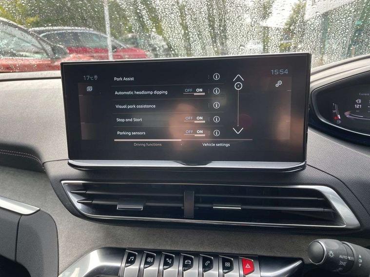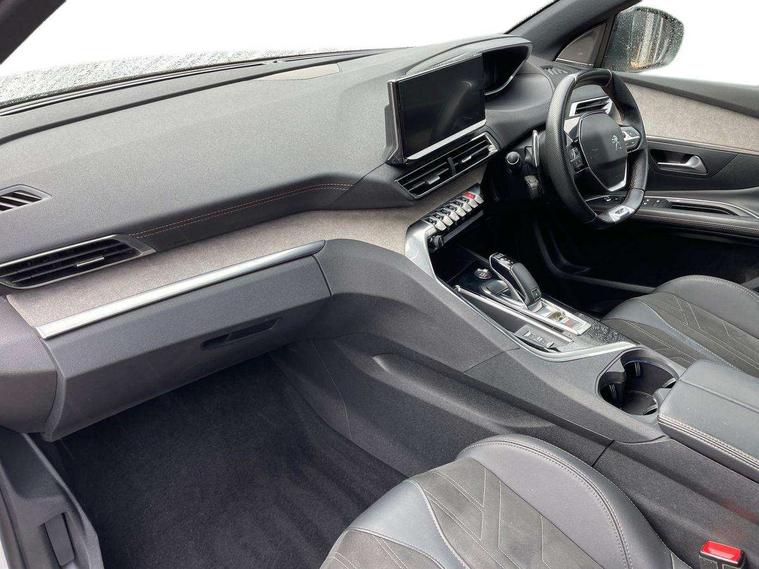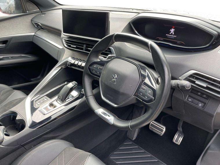 3D connected navigation with 10" HD touchscreen, Bluetooth telephone facility, Drive modes select (Eco, normal and sport), Driving Time Warning (DAA1), Emergency services call system, Extended traffic sign recognition, Exterior temperature indicator with ice warning, Front and rear parking sensors, Mirror screen with mirror link, apple carplay and android auto, Multi function trip computer, Passive blind spot monitoring without Steering correction, PEUGEOT i-Cockpit with 10" high definition capacitive touchscreen, Peugeot i-cockpit with compact multi-function sports steering wheel, PEUGEOT i-Cockpit with configurable 12.3" Head-up digital instrument panel, PEUGEOT SOS and assistance, Rear passenger USB charging sockets (x2) (type A), Speed limit recognition and recommendation, Visio park assist 360 with colour camera system + automatic parking assist, Voice recognition, Dynamic stability control and electronic anti-skid system, Stop/start function, DAB Digital radio, Focal premium HiFi sound system, USB socket, Auto self levelling headlights, Automatic hazard light activation upon heavy brake application, Automatic triggered rear windscreen wiper in reverse gear, Black with chrome detailed front wing trim, Body colour door handles, Body colour rear roof spoiler with stainless steel edging trim, Body protectors (bottom of front and rear bumpers + wheel arches + protection at bottom of doors) in black, Dark tinted rear side windows + tailgate window, Diamond Black door mirror shells, Door mirror mounted LED courtesy floor lighting, Electric folding door mirrors with exterior courtesy LED lighting, Electric operated/heated door mirrors, Fog Mode, Front windscreen wiper with magic wash cleaning system, Full LED headlights with LED fog lights with static cornering function, Gloss black B and C pillar and aerodynamic deflector trim, Gloss black front bumper air scoops, Gloss black rear cluster connecting strip, Gloss black windscreen trim, GT emblem in satin copper (front wings and tailgate), Headlights left on audible warning, Heated rear windscreen with integrated antenna, LED daytime running lights, LED front indicator, LED rear number plate lighting, LED side indicator lights integrated into door mirrors, LED third brake light, One touch electric front/rear windows with pinch protection, Rear LED Peugeot signature 'Claw Effect' lights, Rear side wing doors, Stainless steel roof arches, Twin exhaust tailpipe, 1/3 to 2/3 split folding rear seats, 12V Sockets in dashboard, rear cabin and load area, 2 cupholders in front centre console, 2 cupholders in rear armrest, 2 x Rear reading spotlights, 2x Rear coat hooks, 3x Isofix child seat fittings in the front passenger and outer rear seats, 4 Grab handles retractable and damped, Aikinite stitching in armrest, gear lever and dashboard facia, Aluminium pedals, Blue ambient lighting for connecting zone, Blue ambient lighting to front door panels, central storage and cupholders, Blue ambient lighting to headup instrument panel, Centre front armrest with butterfly wing opening and illuminated storage compartment, Dual zone automatic climate control, Electric power steering with reach and rake adjustable steering column, Flocked front door pocket interior with blue ambient lighting, Flocked glovebox interior, Focal tweeter speaker grilles in Belem bronze metal effect finish, Foldable front passenger seat with picnic table, Footwell illumination, Front interior light with 2 reading spotlights and rear interior light with timer, Front passenger seat manual adjustment (longitudinal and back rest angle), Front seat back map pockets, Gear shift indicator, Illuminated glovebox, Individual left and right controls in boot for seat folding, LED interior lighting in storage spaces and load area, LED roof interior lighting, Mistral floor mats with Aikinite contrast stitching, Mistral full grain perforated leather steering wheel with aikinite stitch detail and satin chrome 'GT' emblem, Rear bench seat with central armrest and ski hatch, Rear centre console ventilation system, Roof lining - Mistral black, Satin chrome dashboard trim, Satin chrome digital instrument panel and touchscreen trim, Satin chrome front door panel recess trim, Satin chrome interior door handles, Satin chrome scorpion's tail and toggle switch trim, Seatbelt not fastened audible and visual alert for front seats, Seatbelt unfastened on the move audible and visual alert for front and rear seats, Sunvisors with illuminated vanity mirrors, Two position boot floor, Drive assist plus pack - 3008, Driver sport pack - 3008 Auto, Safety plus pack with high beam assist - 3008, Visibility pack - 3008, 3x Rear three-point retractable seatbelts with force limiters in the outer rear seats, ABS (Anti-lock Braking System) with EBD (Electronic Brakeforce Distribution) and EBA (Emergency Braking Assistance), Adaptive driver and front passenger airbags with passenger airbag deactivation function, Driver and front passenger side airbags, Electric child locking functionality on rear windows and doors, Electric parking brake, Front and rear curtain airbags, Front optimised safety headrests and 3 x rear retractable headrests with height adjustable, Front three point retractable seatbelts with pre tensioners and force limiters, Front ventilated disc brakes and rear disc brakes, Hill start assist, Two tone horn, Automatic door locking when moving off, Electronic immobiliser, key operated exterior door lock from the left hand door, Perimetric and volumetric alarm with lift and tilt sensor, Peugeot Open and Go System, Remote control central locking with two plip keys, Puncture repair kit including compressor, sealant cartridge and towing eye,