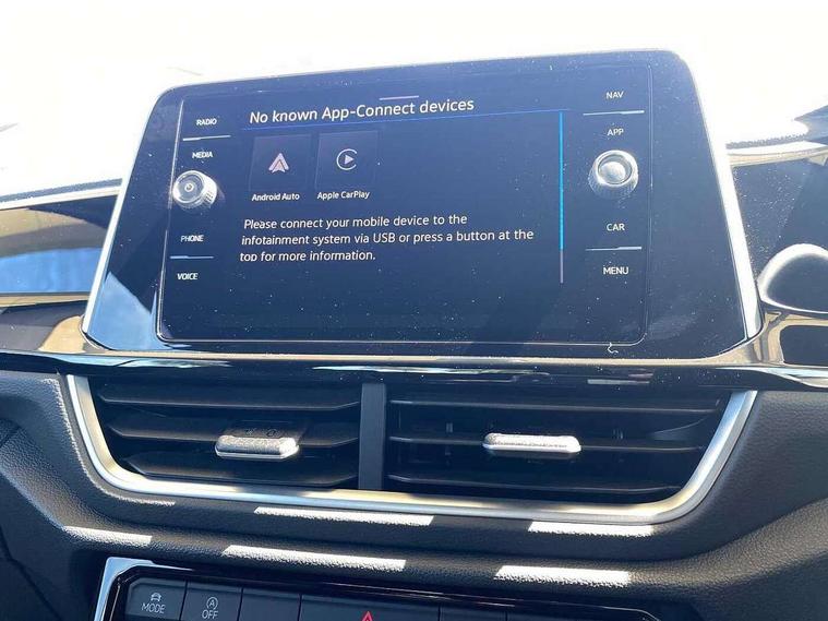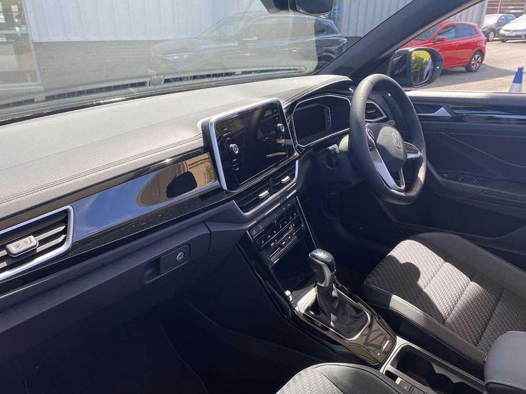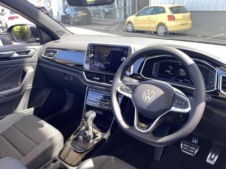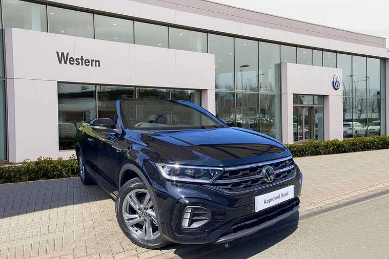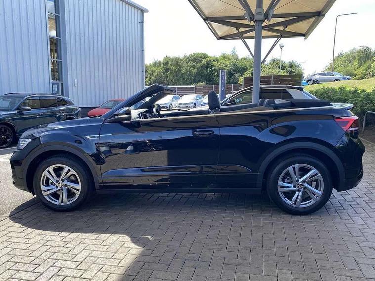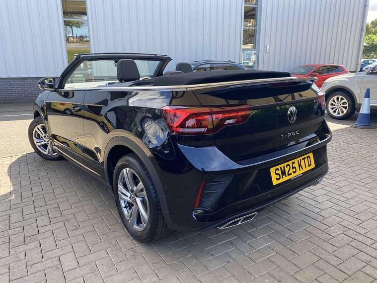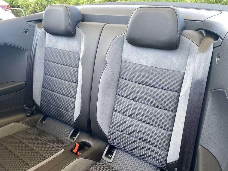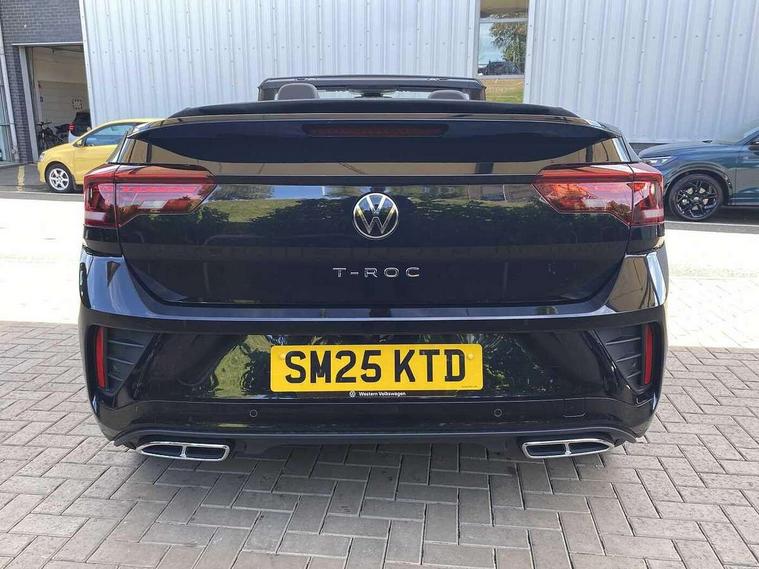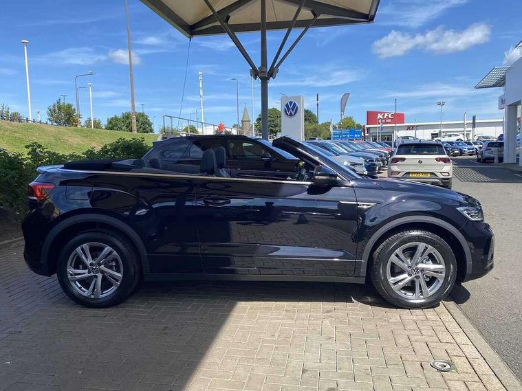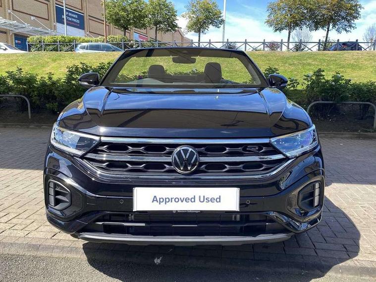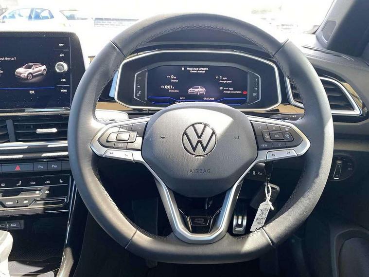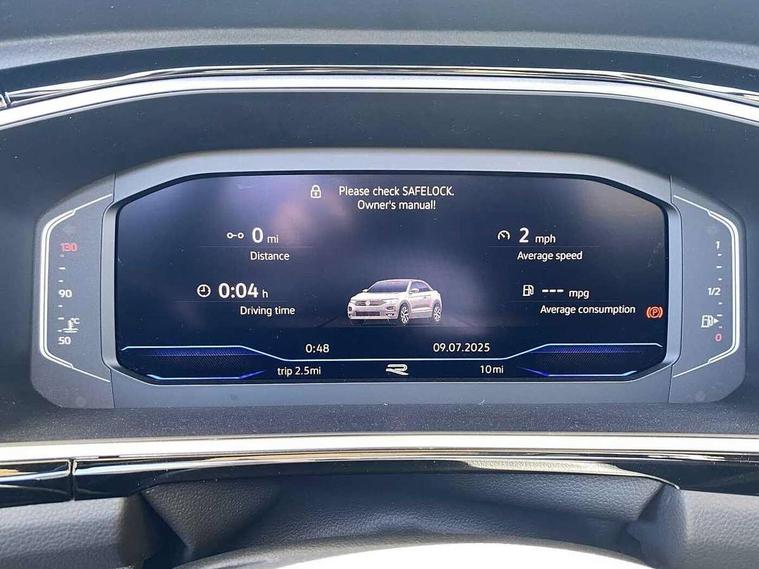 Adaptive cruise control and speed limiter, Advanced driver attention and drowsiness monitor, Brake pad wear indicator, Car information display, Digital Cockpit Pro with 10.25" Display, Driver tips and journey analysis, Dynamic road sign display, Emergency call service, Modified key software - reduce switch off time for key status change to Long no motion, Multifunction computer with visual gear change recommendation for fuel consumption, Multifunction front facing camera, Online services, Park assist including front and rear parking sensors, Speedo and rev counter, electronic odometer, trip, service interval display and exterior temperature gauge, Start/stop system with brake energy recovery, Tailgate/trunk lid release from outside, Warning sound and light for front seatbelts unfastened, Wireless App-Connect for apple Carplay and android Auto, Digital radio reception (DAB), Diversity antenna for FM reception, Mobile phone interface with inductive charging feature, Music playback - MP3, WMA and AAC files, SMS functionality - read, compose and send SMS messages using touch-screen display, Title and cover art display, USB-C Interface and USB charging socket, We Connect and We Connect Plus functionality, Ambient lighting with logo projection, Auto dimming interior rear view mirror, Automatic hazard lights activation under emergency braking, Automatic headlight control with LED separate daytime running lights with coming/leaving home function, Black roof, Body colour door handles, Body colour rear boot spoiler, Chrome effect left and right trapezoid exhaust tailpipe fascia surround, Chrome trim on upper and lower radiator grille, Dark red rear combination lamps in LED technology, Dusk sensor, Exterior mirrors aspherical on driver side, convex on front passenger side, Heat insulating glass windscreen, LED 3rd brake light, LED rear number plate lights, Power operated canvas convertible top, Power windows with comfort operation and circuit breaker, R-Line design body coloured bumpers, Rain sensor, Rear boot, Rear exhaust tailpipe, Rear fog light on one side and reversing lights on both sides, Remote electrically foldable door mirrors, puddle lights and reverse activated passenger door mirror, Volkswagen roundel, Windscreen wiper with intermittent wipe light, Without exterior ambient lighting, 12V socket in centre console storage area, 2 LED front reading lights, 2 seat bench in 2nd row, 50:50 Split folding rear seat backrests with fixed rear seat bench, Air care climatronic air conditoning system with active combination filter and 2-zone temperature control, Black door lower parts with chrome trim, Chrome plated surround to light, mirror and window switch, Door and side trim panel with leatherette insert, Easy entry backrest release, Front and rear carpet mats with black stitching, Front centre armrest, Front cupholders x 2, Front door pockets, Front seat back storage pockets, Front sports comfort seats with manual height adjustment, Heated leather wrapped multi function sports steering wheel with tiptronic, Height/reach adjust steering wheel, Inserts of front seats and outer rear seats in ArtVelours titan black, Instrument lighting, white adjustable panel illumination, Interior light delay, Interior light in footwell, Interior lighting with switch off delay and contact switches on all doors, Interior white ambient lighting and surround lighting, Isofix child seat preparation, Lockable glove compartment with light, Luggage compartment lighting, Power adjustable lumbar support in front, Rear head restraints, Single front passenger seat, Stainless steel pedals, Sun visors with illuminated vanity mirrors, Unique R Line door sill protectors, Driver assistance pack without proactive passenger protection - T-Roc Cabriolet DSG, 2 x 3-point seatbelts/outer rear seats with ECE label, Driver and front passenger airbag with front passenger airbag deactivation, Driver and front passenger safety-optimised head restraints, Drivers seatbelt reminder, Electronic parking brake, Electronic Stability Control (ESC) including ABS, ASR and EDL, Front and rear disc brakes, Front assist with autonomous emergency braking, Pedestrian monitoring, Predictive pedestrian protection, Rigid safety cell with front and rear crumple zones, Side airbag/thorax airbag system, for front passengers, Three point height adjust front seatbelts + pretensioners, Two tone horn, Tyre pressure loss indicator, Volkswagen roadside assistance, Anti-theft alarm system with interior protection and central locking system with SAFELOCK, radio remote control and 2 remote control folding keys, Electronic engine immobiliser, Trims for alloy wheels,