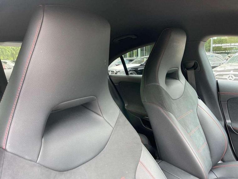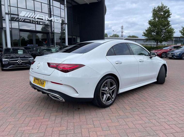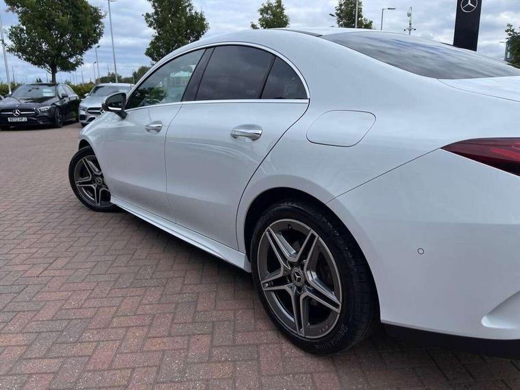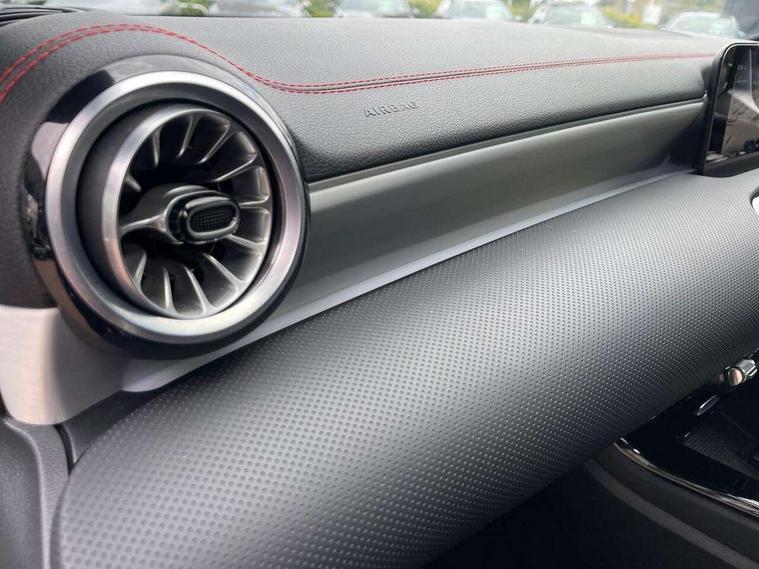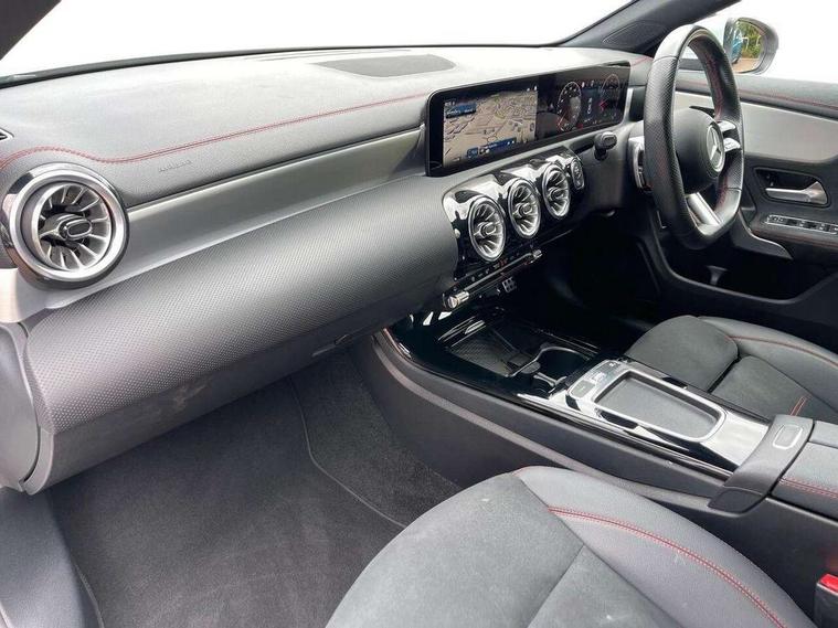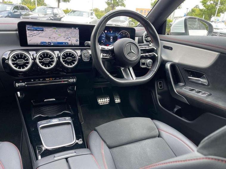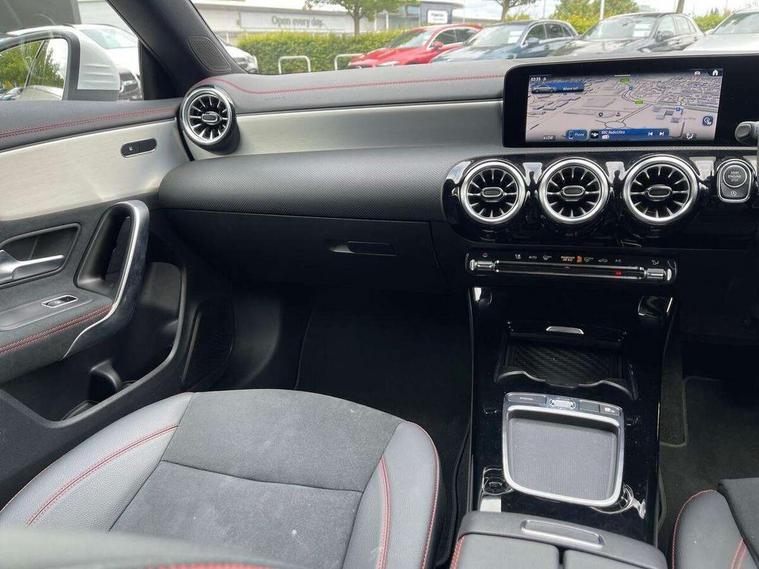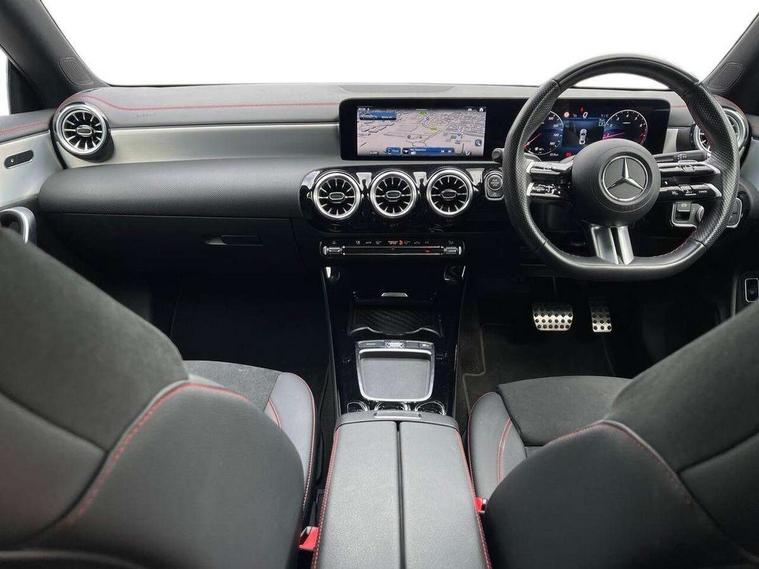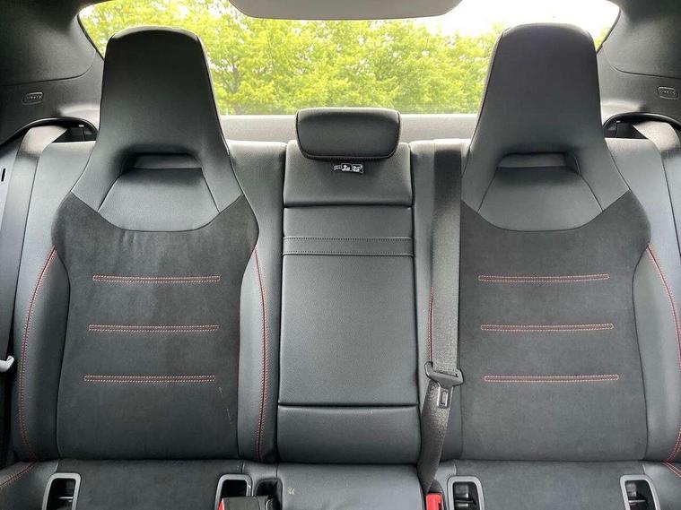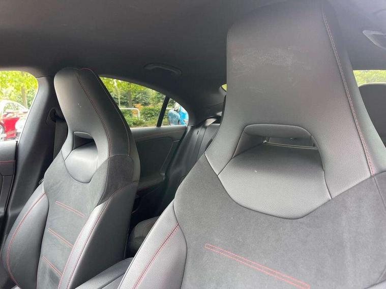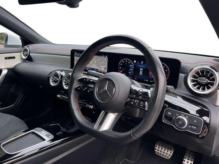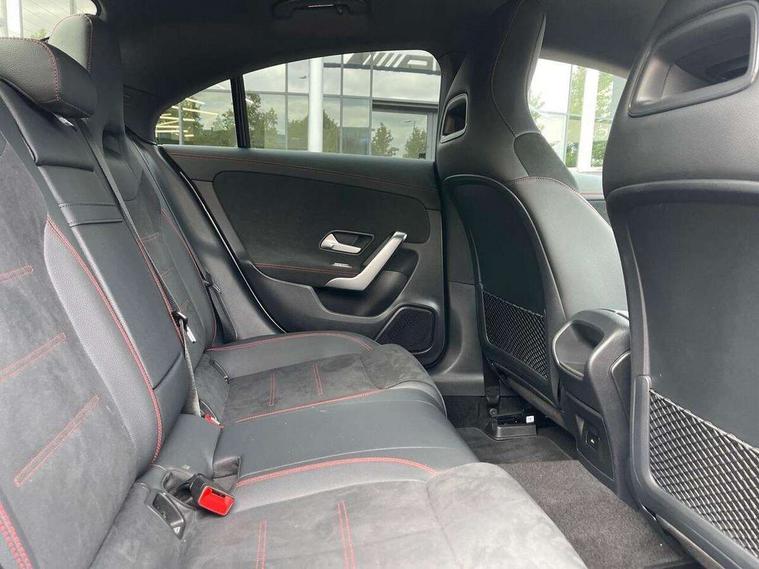 10.25 inch Instrument display with digital cockpit, 10.25 inch touchscreen central media display, Active lane keeping assist, Attention assist - Monitors steering behaviour and long journey fatigue, Bluetooth connection, Car wash mode, Cruise control with limiter, Direct steer system, DYNAMIC SELECT with a choice of driving modes (ECO, Comfort, Sport and Individual), ECO start/stop function, Fluid level warning indicator for fuel, oil, coolant and washer fluid, Hard-disk navigation, Hey Mercedes Voice activation, Lamp failure indicator, Mercedes me connect including emergency call system, accident recovery, breakdown and maintenance management, Mercedes me remote services, Outside temperature gauge, Owners manual in English, Pre-installation of private car share, Radio aerial integrated into front and rear windshields, Service indicator (ASSYST), Smartphone integration with Apple CarPlay and Android auto, Speed limit assist, Trip computer in multifunction display with current consumption indicator, Wireless charging in the front centre console, Comfort suspension with ride height lowering, Rear axle multi-link, DAB digital radio tuner, MBUX multimedia system, Mercedes Benz sound system (100 W) with 6 speakers, Pre installation for Mercedes Benz Link, Adaptive brake lights, AMG body styling with AMG front apron and rear apron and visible exhaust tailpipe in chrome trim elements, Body colour door handles, Chrome beltline strips, Electric windows, Electrically adjustable and heated door mirrors with integrated LED indicators, Exhaust system with 2 Visible tailpipe trim elements and rear apron with trim in chrome, Hand free access, Headlamp assist automatic headlamp activation, Heated glass rear windscreen + timer control, High level LED third brake light, Interior mirror with black reading lamps and frameless, LED high performance headlamps with integrated LED daytime running lights and adaptive highbeam assist, LED tail lamp, Privacy glass with dark tinting on rear side windows and rear window, Radiator grille with Mercedes-Benz pattern in chrome with central Mercedes star and single louvre with chrome inserts, Rain sensing windscreen wipers with two sensitivity settings, Rear boot, Rear fog lamp, Rear side wing doors, Variable front intermittent wipers, Window line trim strip in high gloss aluminium, 3 seat bench in 2nd row, 3 twin spoke flattened multifunction steering wheel in nappa leather - horizontal twin spoke in high gloss black, vertical twin spoke in silver chrome, 4 way lumbar support, 40:20:40 split folding rear seat backrests, Air conditioning - One zone thermatic automatic climate control with automatically controlled air distribution, Air vents with surround in silver chrome, Artico man-made leather/Microcut microfibre upholstery, Automatic child seat recognition sensor, Black roof lining, Brushed stainless steel sports pedals with rubber studs, Floor mats with stitched AMG lettering, Fluorescent jacket, Front centre armrest with stowage, Galvanished gear shift paddles in silver chrome, Heated front seats, Interior lighting - 64 colour Ambient lighting, Luggage net on driver/front passenger seat backrest, Manually height and reach adjustable steering column, Rear head restraints, Single front passenger seat, Sport seats with fixed head restraints, Stowage compartment in centre console with retractable cover, Sunvisors with illuminated vanity mirrors, Twin front cupholders, Two outer rear seat isofix and top tether child seat fixing points, Keyless go comfort pack - CLA, Light and sight pack - CLA, Mirror pack - CLA, Parking pack with reversing camera - CLA, Seat comfort pack - CLA, USB package plus - CLA, Active bonnet pedestrain safety measure which detects an impact and raises bonnet by 65mm, Active brake assist includes forward collision warning system with autonomous braking, Adaptive brake assist with hold function and hill start assist, Anti lock braking system (ABS) with brake assist, Black seat belts, Bonnet with power domes, Brake calipers with Mercedes-Benz lettering, Brake pad wear warning indicator, Childproof locks manually operated for rear doors and electrically operated for rear power windows, Crash responsive emergency lighting, Driver and front passenger head and sidebags, Driver and front passenger windowbags, Drivers knee airbag, Dual stage driver and front passenger airbags, Electric parking brake, Electronic stability programme with acceleration skid control, ESP curve dynamic assist, Front and rear seatbelt reminder, Front passenger seat occupancy sensor, Perforated front brake discs, Sports braking system, Three point rear seat belts, Tyre pressure monitoring system, Warning triangle and first aid kit, Alarm system with immobiliser and interior protection -Thatcham category 1, Guard 360 deg vehicle protection - tow away protection with visual, acoustic warning, interior monitoring, preinstallation for parking damage, Remote central locking and crash sensor with emergency opening function, Light aluminium with longitudinal grain interior trim, 18" AMG 5 twin spoke light alloy wheels painted in termolite grey with high sheen finish, Summer tyres, Tirefit tyre sealant kit,
