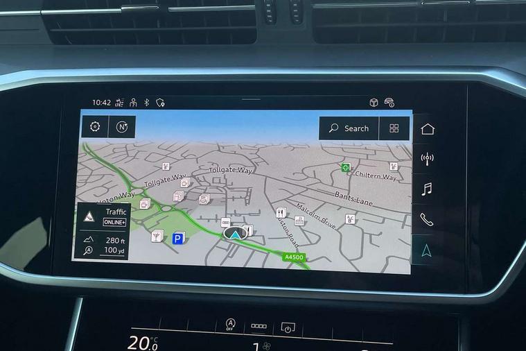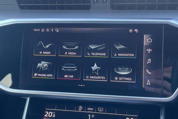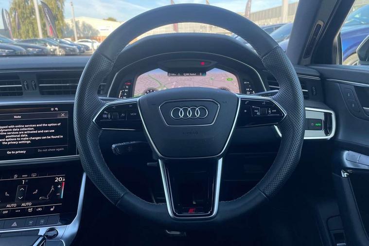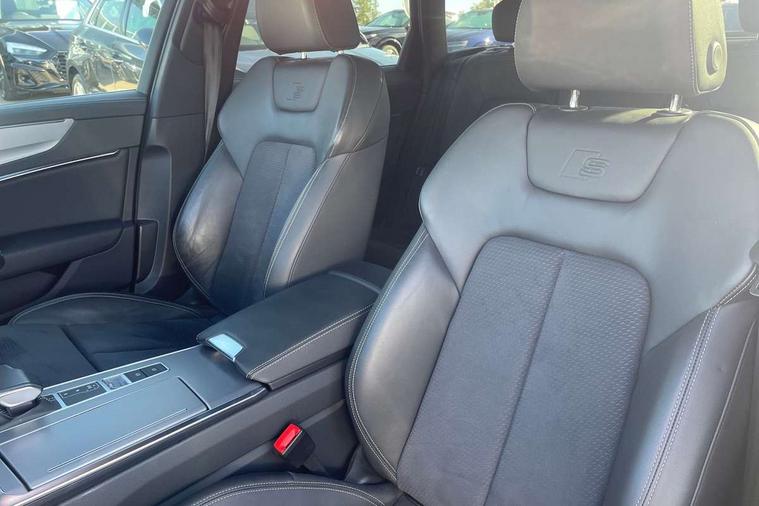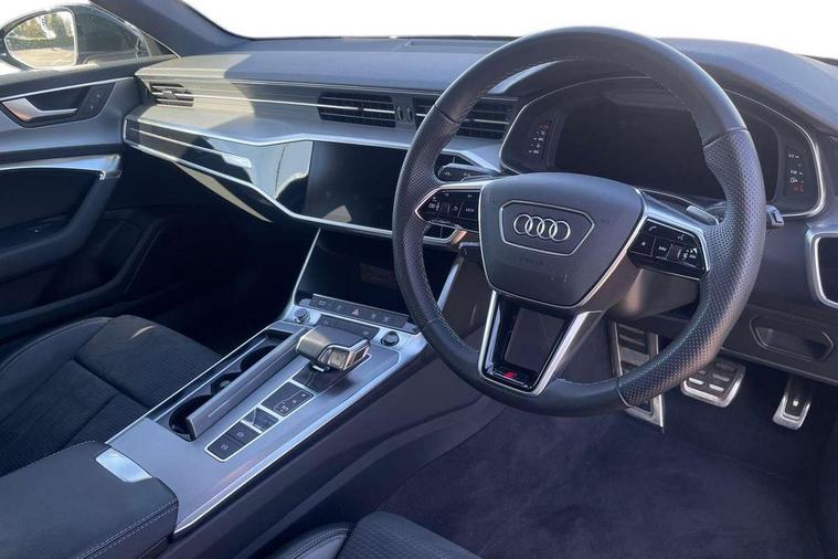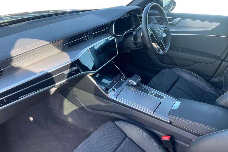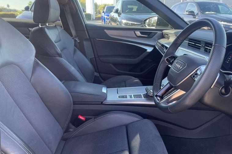 7" high resolution colour driver information display system, Audi connect safety and service (e-call), Audi connect with Amazon Alexa Integration, Audi drive select, Audi parking system plus - acoustic and visual park assist system for front and rear, Automatic start/stop system with coasting functionality, Bluetooth interface, Lane departure warning system, Power operated tailgate, Progressive steering, Rear view camera, Service interval indicator, Smartphone interface includes wireless Apple carplay/Android Auto, Voice control system, Sports suspension, Audi front music interface, Audi sound system, Auxiliary input socket, DAB Digital radio, USB connection, Aluminium roof rails, Body coloured door mirrors, Electric front/rear windows, Frameless auto dimming interior rear view mirror, Front intermittent wipers, Headlight washers, Heat insulating darkened glass in side and rear windows, Heat insulating glass in windshield, LED signature front daytime running light, LED third brake light, Matrix LED headlights, Matt black side air intake grille with inlay in matt aluminium, Privacy glass, Radiator grille in anthracite black matt, single frame in chrome and horizontal struts in matt aluminium silver, Rain and light sensors, Rear side wing doors, Rear wiper, S line air inlet design with inlay in matt aluminium, S Line badge on front fender, S Line front and rear bumpers, S line rear diffuser and grille in matt black with matt aluminium tailpipes, S Line roof edge spoiler, S Line side skirts, Signature rear LED light design, 2 zone deluxe electronic climate control, 4 way electric lumbar support for driver and front passenger, 40/20/40 split folding 3 rear seat bench in 3 parts with rear centre armrest, Black cloth headlining, Black steering wheel insert, Electrically adjustable front seats with driver memory, Front centre armrest, Front head restraints, Heated front seats, Height/reach adjust steering wheel, Illuminated door sill trims with S logo, Illuminated sun visors with vanity mirrors, ISOFIX child seat mounting and Top Tether with front passenger airbag deactivation, Leather gear knob, Luggage compartment system, Perforated leather steering wheel with contrast stitching, Rear headrests, S line front and rear black carpet floor mats with contrast stitching, Single front passenger seat, Stainless steel pedals and foot rest, LED Interior Ambient Lighting Pack - A6, Non smoking pack - A6, Technology pack - A6, 3 point seatbelts on all seats, Airbags - Front side, front and rear including head, Audi pre-sense front, Black seatbelts, EBD - Electronic brakeforce distribution, Electromechanical parking brake, Electronic Stability Control (ESC) including ABS, ASR and EDL, Extended pedestrian protection measures, Manual child proof rear door locks, Seatbelt monitoring, Tyre pressure warning light, Warning triangle and first aid kit, Anti theft alarm with tow away protection, Anti-theft wheel bolts and wheel loosening detection, Immobiliser, Keyless Go, Remote central locking, Matt brushed aluminium dark inlays,