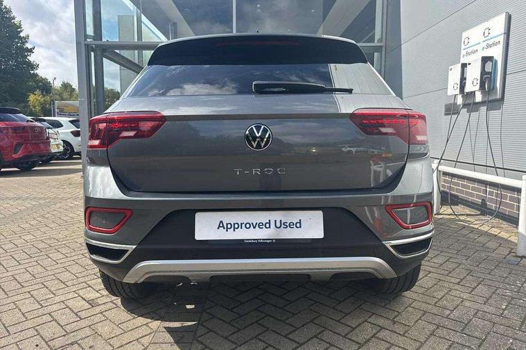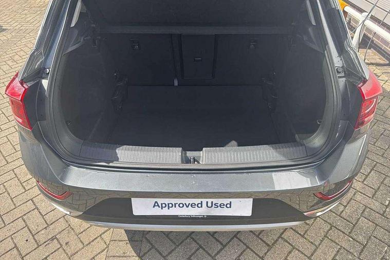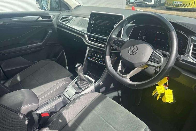 10.25" Digital cockpit pro, Bluetooth mobile phone interface, Driver alert system with fatigue detection, Driver tips and journey analysis, Emergency call service, Lane keeping system Lane Assist, Modified key software - reduce switch off time for key status change to Long no motion, Online services, Park assist including front and rear parking sensors, Service interval indicator, Tailgate/trunk lid release from outside, Think blue trainer driver tips and journey analysis, Warning sound and light for front seatbelts unfastened, Wireless app connect, Battery regeneration during braking, Start/stop function with battery regeneration, Diversity antenna for FM reception, Front and rear 6 speakers, Music playback - MP3, WMA and AAC files, Premium USB cable in choice of either Apple or Android smartphone compatibility, SD card slot, Simultaneous pairing of 2 compatible mobile devices, Title and cover art display, We Connect and We Connect Plus functionality, 3rd brake light, Auto dimming interior rear view mirror, Automatic hazard lights activation under emergency braking, Automatic headlight control with LED separate daytime running lights with coming/leaving home function, Body colour sports bumpers with silver metallic underbody fascia, Dynamic headlight range control with self adjusting whilst driving, Extended roof spoiler, Exterior mirrors aspherical on driver side, convex on front passenger side, External USB type C socket and charging sockets, Front windscreen wiper with intermittent wipe and 4 position delay, Heated rear window, LED Plus headlamps, LED rear combination lamps, LED rear number plate lights, LED tail lamp rear comination lamps, Light mode for poor weather, rain, fog or snow, Power windows with comfort operation and circuit breaker, Rain sensor, Rear exhaust tailpipe, Rear fog light on one side and reversing lights on both sides, Rear side wing doors, Rear wash/wipe with intermittent wipe setting, Remote electrically foldable door mirrors, puddle lights and reverse activated passenger's door mirror, 12V power socket in centre console, 3 rear head restraints, 3 seat bench in 2nd row, 4 load lashing points in luggage compartment, Air care climatronic air conditoning system with active combination filter and 2-zone temperature control, Chrome plated radiator grille inserts, air vent surrounds and light switch surrounds, Door and side trim panel with leatherette insert, Drawer under drivers seat, Front + rear carpet mats, Front centre armrest, Front comfort sports seats, Front cupholders x 2, Front footwell illumination, Instrument lighting, white adjustable panel illumination, Interior ambient lighting and surround lighting, Interior light delay, Isofix child seat preparation, Leather gearshift handle, LED interior light with switch off delay/dimmer and 2 front/rear LED reading lights, Load-through provision with cup holder when folded down ('Unsplit rear seat bench, split folding backrest, with centre armrest), Luggage compartment lighting, Non-folding front passenger seat backrest, Single front passenger seat, Storage compartment in left and right luggage area, Storage compartment in rear doors, Storage compartments in driver and front passenger doors, Sunvisors with illuminated vanity mirrors, Variable boot floor, height adjustable and removable, Driver assistance pack without proactive passenger protection - T-Roc, 3 point height adj front seatbelts + pretensioners, 3 point seatbelts in outer rear with ECE label, ABS, Child locks on rear doors, Driver and front passenger airbag with front passenger airbag deactivation, Driver and front passenger safety-optimised head restraints, Drivers seatbelt reminder, Electronic parking brake, Electronic Stability Control (ESC) inc EDL (Electronic Differential Lock) and ASR (Traction Control), Front and rear passengers curtain airbag system including front side airbags, Front assist with city emergency braking and pedestrian monitoring, Front seat side impact airbags, Predictive pedestrian protection, Rear disc brakes, Single tone horn, Tyre pressure loss indicator, Volkswagen roadside assistance, Alarm with interior protection, Anti-theft alarm system with interior monitoring, backup horn, and towing protection, Remote central locking with SAFELOCK, radio remote control with 2 remote control folding keys, Trims for alloy wheels,