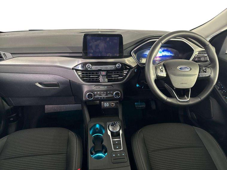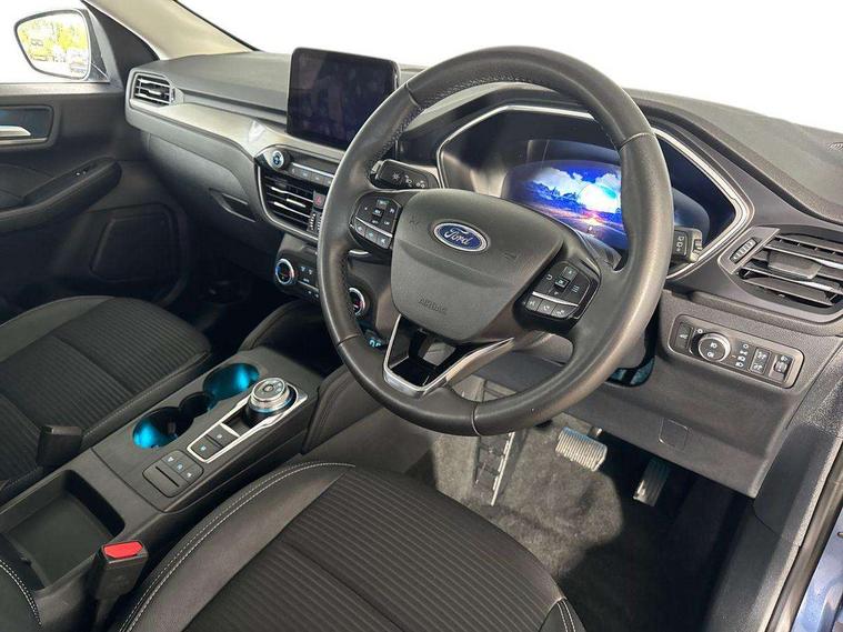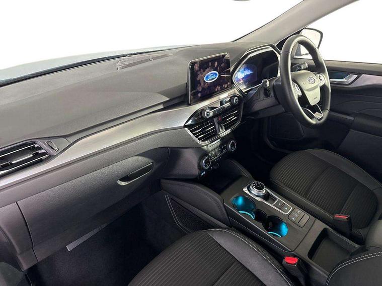 12.3" digital colour instrument cluster, Ford easy fuel, Ford SYNC 3 with 8" TFT LCD touchscreen, App Link, andriod auto/apple carPlay, emergency assistance and navigation with Ford pass connect, Front and rear parking sensors, Hands free power tailgate, Lane keeping aid with lane departure warning, Power assist steering, Rear view camera, Selectable drive modes, Service interval indicator, Standard suspension, Twist beam rear suspension, B&O premium audio system with 10 speakers and subwoofer, 2 USB ports, DAB radio/CD, Auto dimming rear view mirror, Auto headlamps with high and low beam, Auto wipers, Front LED fog lamps, LED daytime running lights, LED rear lights, Power folding heated door mirrors with puddle lights, Power front/rear windows with global close, Privacy glass, Quickclear heated windscreen, Rear spoiler, Silver roof rails, Third brake light, Twin exhausts, 10 way power adjustable drivers seat, 2nd row sliding seats with 60:40 split, 8 way manual passenger seat including lumbar support and height adjust, Ambient lighting, Centre console with electronic parking brake, Dual electronic automatic temperature control, Front and rear floor mats, Front and rear head restraints, Partial premium touch sensico leather upholstery with black cloth inserts, Rear charging point, Sports seats, 3x3 point rear seatbelts, Airbags - front driver/passenger, front and rear curtain, Drivers knee airbag, Electronic stability control (ESC) and ABS, Ford MyKey Gen 2 safety system, Manual child proof rear door locks, Post collision braking, Pre collision assist with autonomous emergency braking, Rear seat Occupancy alert, Tyre pressure monitoring system, Engine immobiliser, Keyless entry and Ford power start button (Keyless start), Locking wheel nuts, Remote powered central double locking doors, Thatcham category 1 alarm,