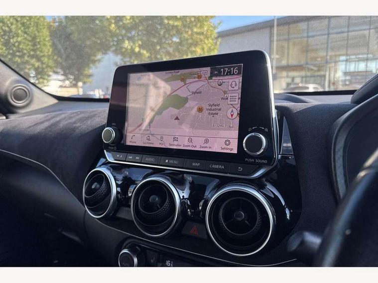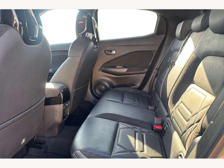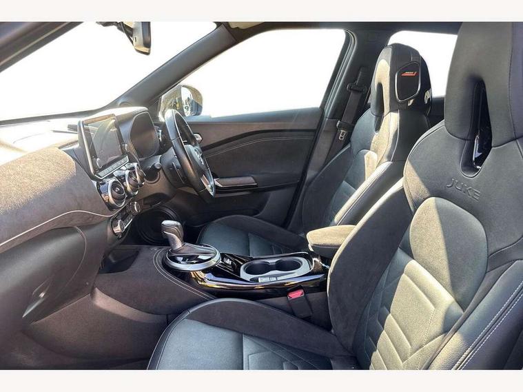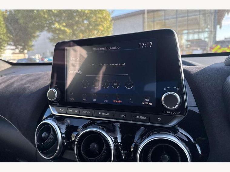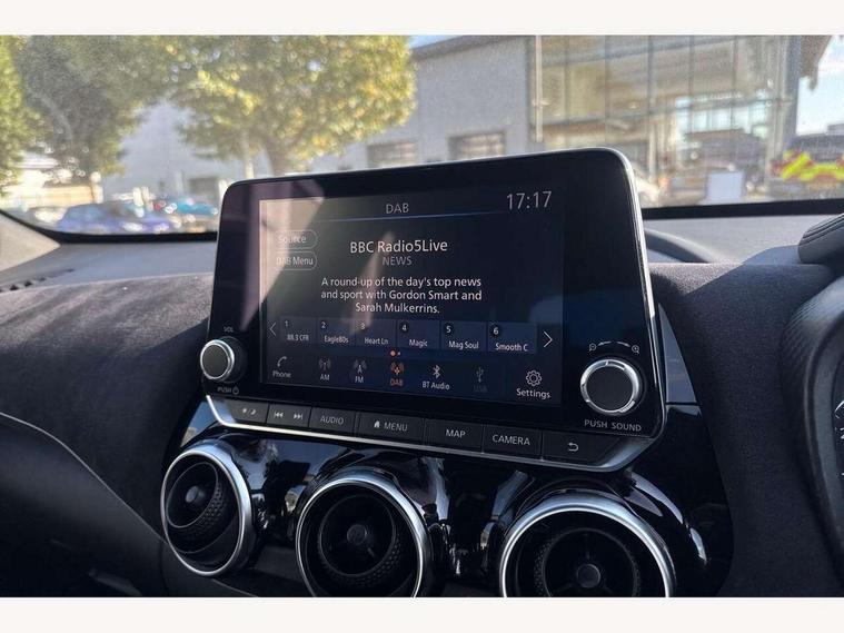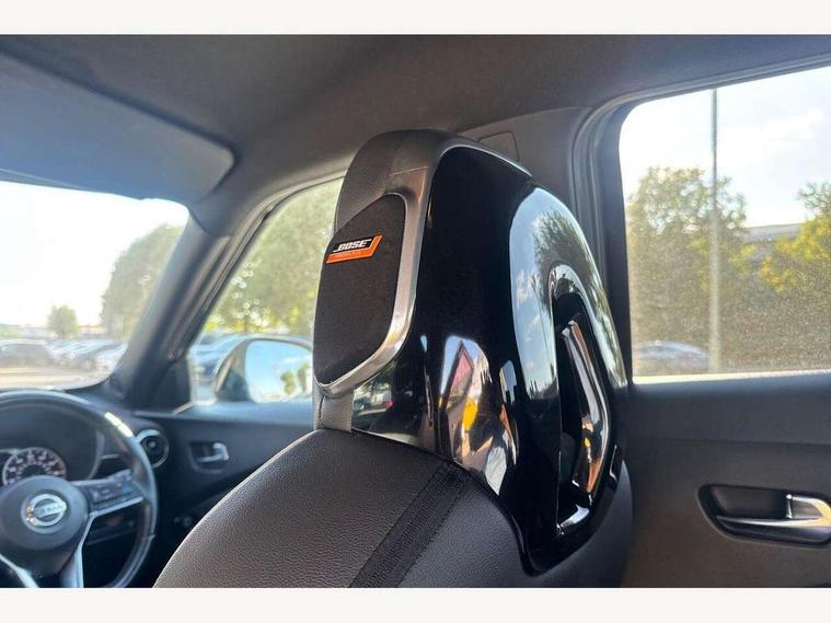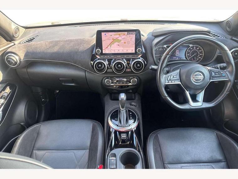 7" full colour TFT screen combimeter, 8" infotainment colour display with touch screen, Apple CarPlay and Google Android auto, Drive modes select (Eco, normal and sport), Emergency and breakdown call, Front parking sensor, Idle start/stop system, Intelligent lane intervention, Lane departure warning system, Nissan connect nav with TomTom traffic, Nissan connect services and Wifi connection, Outside temperature sensor, Power Steering, Rear parking sensor, Traffic sign recognition, Trip computer, Gasoline particulate filter, Bluetooth system, USB, Aux-in and 12V socket, Bose personal plus audio system with 8 speakers(4 speakers and 2 headrest speaker for driver and passenger seats), Bose personal sound stage control, DAB Digital radio, Front lower bumper painted in silver finisher, Rear console USB port, Auto dimming interior rear view mirror, Automatic hazard signal with emergency stop signal, Body colour bumpers, Body colour door handles, Electrically adjustable door mirrors with integrated indicators, Follow me home headlights, Front and rear electric window with one touch driver and passenger window, Heated and auto folding door mirrors, High beam assist, LED daytime running lights, LED front fog lights, LED headlamps, LED rear fog lamp, LED rear lamps, Rain sensor windscreen wipers, Rear privacy glass, Rear spoiler, Rear wiper, Thermaclear heated windscreen, Three blink turn signal, 3 height adjustable rear headrests, 60/40 split folding rear seat, Automatic climate control, Card holder on driver sunvisor, Door ambient lighting, Driver and passenger sliding and reclining seats, Driver seat back pocket, Driver side rear coat hanger, Driver/passenger sunvisors and illuminated vanity mirrors, Front and rear cabin lighting, Front armrest, Front door pockets with bottle holders, Front head restraints, Front passenger isofix child seat anchorage point, Front/rear passenger grab handles, Gear console ambient circle lighting, Grey synthetic leather kneepad, Heated front seats, Height adjustable driver's seat, Height adjustable passenger seat, Internal chrome door handles, Leather gearshift knob, Leather steering wheel, Luggage board, Luggage space lighting, Monoform sporty seats, Multifunction steering wheel, Passenger seat back pocket, Rear door bottle holders, Steering wheel mounted gearshift paddles, Telescopic steering wheel adjustment, Two cupholders in front centre console, Two rear isofix child seat anchorage points with top tether, Voice recognition switch on steering wheel, Welcome light and console tray ambient lighting, ProPilot pack - Juke, ABS with EBD and brake assist, Active ride control, Active Trace Control, Driver and passenger airbags, Driver and passenger side airbags, Electric handbrake with auto hold function, Electronic Stability Programme (ESP), Front and rear curtain airbags, Height adjustable seatbelts, Hill start assist, Intelligent emergency braking with pedestrian and cyclist recognition, Seatbelt reminder for driver/front passenger and rear seats, Single tone horn, Three 3 point rear seatbelts, Traction control, Tyre pressure monitoring system, VDC Dynamic Vehicle Control, Ventilated rear brake discs, Alarm, Immobiliser, Intelligent Key with push button starter, Remote central locking, 19" Akari alloy wheels,