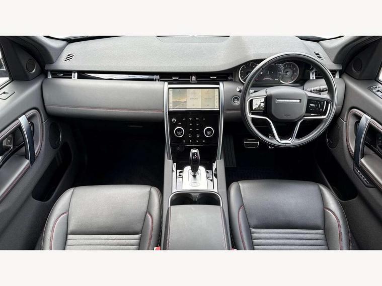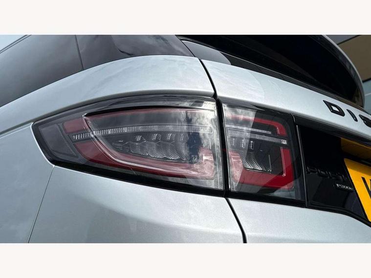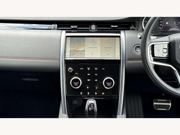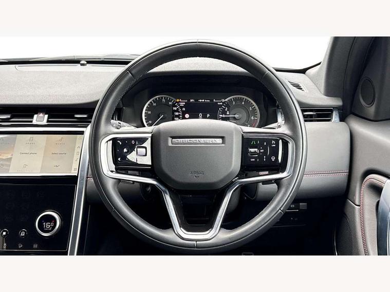 10" touch screen, Adaptive cruise control, Android Auto, Apple CarPlay, Blind spot assist, Clear exit monitor, Driver condition monitor, eCall emergency call system, Front and rear parking aid, InControl remote premium, Lane keep assist, Locking fuel flap, PAS, Pivi Pro connected navigation system with upgraded Infotainment, Powered tailgate/boot lid, Push button start, Rear collision monitor, Rear traffic monitor, Service interval indicator, Traffic sign recognition with adaptive speed limiter, Trip computer, Wade Sensing, 7 kW onboard charger, All terrain progress control, Coil suspension system, Configurable dynamics, Dynamic stability control, Home charging cable, Public charging cable, Terrain Response 2, Bluetooth connectivity including audio streaming, Digital Audio Broadcast radio-DAB, Steering wheel mounted audio controls, 3rd brake light, Automatic headlight levelling, Automatic headlights, Electric front/rear windows, Electric heated/power fold door mirrors with approach lights and auto dimming driver side, Front and rear recovery eyes, Front fog lights, Heated rear window, Heated windscreen including heated washer jets, Illuminated metal front treadplates with R dynamic branding, P300e badge, Privacy glass, R Dynamic badge, Rain sensing windscreen wipers, Rear fog lights, Rear side wing doors, Rear wing door, Rear wiper, 5 standard seating configuration, Bright metal pedals, Centre console with armrest, Configurable cabin lighting, Electrically adjustable steering column with memory, Footwell lights, Front and rear grab handles, Front passenger isofix child seat attachment, Heated steering wheel, Loadspace cover, Loadspace light, Overhead lighting console, Overhead stowage for sunglasses, Rear headrests, Satin chrome gearshift paddles, Sunvisors with illuminated vanity mirrors, Tilt/reach adjustable steering wheel, Black exterior pack - Discovery sport R-Dynamic SE/HSE, Online pack with data plan - Discovery, 3 point seatbelts on all seats, ABS, Brake hold function, Child locks on rear doors, Collision mitigation braking system, Cornering brake control (CBC), Driver/Front Passenger airbags, Drivers knee airbag, Electronic brake force distribution, Electronic parking brake, Emergency brake assist, ESP + traction control, Hill descent control, Hill launch assist, Pedestrian airbag system, Rear seat ISOFIX, Roll stability control, Side and curtain airbags for front and 2nd row seats, Trailer stability control, Tyre pressure monitoring system, Battery Back Up System (BBUS) with tilt sensor, Global lock and unlock switch on driver door, Intrusion sensor, Keyless entry, Locking wheel nuts, Centre stack rails in noble chrome,