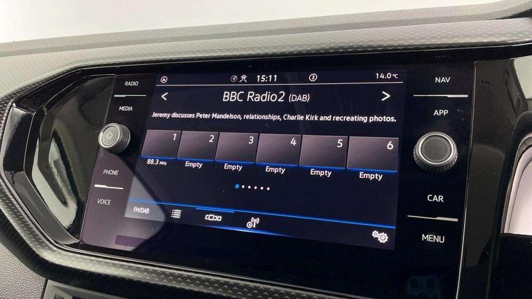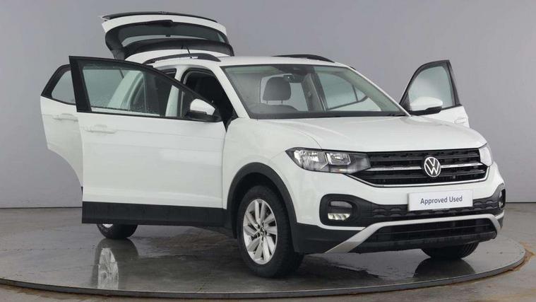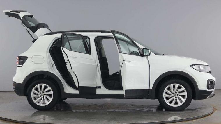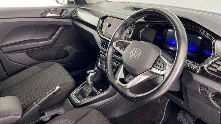 'Lights On' Reminder warning buzzer, Adaptive cruise control, Blind spot monitoring, Bluetooth telephone and audio connection for compatible devices, Car information display, Driver alert system, E-Sim card for online connectivity, eCall emergency call system, Lane assist, Low washer fluid warning light, Multifunction computer with visual gear change recommendation for fuel consumption, Multifunction front-facing camera for distance control, Operating permit alteration, Power assisted speed sensitive steering, Preparation for navigation system with media and internet package, Speedo, rev counter, electronic odometer, trip, service interval display, exterior temperature and fuel gauge, Stop/start system, Warning sound and light for doors and tailgate open, Warning sound and light for front seatbelts unfastened, We connect plus preparation, Wireless Car net app connect with Apple CarPlay, combined functionality of Apple CarPlay/Android Auto and MirrorLink, Battery regeneration during braking, Misfuel prevention device, 2x USB connection with USB charging sockets and in rear centre console, DAB Digital radio receiver, Diversity antenna for FM reception, Front and rear 6 speakers, Multi device interface (MDI) with USB connection, Music playback - MP3, WMA and AAC files, Premium USB cable for Apple or Android smartphone compatibility, Radio, Simultaneous pairing of 2 compatible mobile devices, Title and cover art display, Automatic coming/leaving home lighting function and daytime running lights, Automatic dimming interior rear view mirror, Automatic hazard lights activation under emergency braking, Black roof rails, Body colour door handles, Body colour door mirrors with integrated indicators, Body coloured bumpers with chrome inserts, Dusk sensor + automatic driving lights, Electrically heated, foldable + adjustable door mirrors with lowering front passenger function, Front and rear electric windows, Front fog lights with static cornering function, Galvanised body, Halogen clear headlights range adjustable via infotainment system, Headlight range control, Heat insulating darkened glass in side and rear windows, Heated rear window, LED rear combination lamp, LED third brake light, Lower door sills and door pillars in black, Radiator grille with high gloss surface and chrome strip, Rain sensor, Rear fog light on one side, reversing light on both sides, Rear lights incorporating LED technology, Rear side wing doors, Rear window aerial, Rear windscreen washer and wiper with interval delay, Reflectors in all doors, Tailgate with integrated roof spoiler, Windscreen wipers/ intermittent wipe + 4 position delay, Without dynamic road sign display, 12V Accessory socket in centre console, 3 rear head restraints and 3 rear three point seat belts with ECE label, 3 seat bench in 2nd row, 60/40 split folding rear seat backrest, Child seat anchor for child seat system i-Size, 2x top tether and child seat anchor in front on front passenger side, Door and side trim panel, Drawer under drivers seat, Driver's sunvisor with ticket holder, Dust and pollen filter, Front and rear reading lights X 2, Front centre armrest with storage compartment, Front seat back storage pockets, Front seats with adjustable lumbar support, Glovebox, Heating and fresh air system with 4 stage blower, Height/reach adjust steering wheel, Interior light with delay, Leather gearshift handle, Luggage compartment cover, Luggage compartment lighting, Manual air conditioning, Manual front seats with height adjustment, Moveable and foldable Rear bench seat, Multifunction steering wheel, SE cloth upholstery, Single front passenger seat, Storage compartment in drivers and front passengers door, Sun visors without mirror with ticket pocket on driver side, on front passenger side with airbag label on sun visor a.B-pillar, Variable boot floor, SE Edition pack - T-Cross, 3-point seat belts, outer rear with ECE label, Anti-lock Braking System (ABS) with Hydraulic Brake Assist (HBA), Automatic post collision braking system, Disc brakes front and rear, Driver and front passenger safety-optimised head restraints, Drivers and Front Passengers airbags with front passengers airbag deactivation switch, ESC with EDL and ASR (traction control), Extended and predictive pedestrian/ cyclist protection, Front and rear curtain airbags, Front seat side impact airbags, Height-adjustable front three-point seat belts with tensioners, Hill start assist, Pre crash preventive occupant protection, Rear door child safety locks, Rigid safety cell with front and rear crumple zones, Single torn horn, Tyre pressure loss indicator, Volkswagen roadside assistance, Alarm with interior protection and deactivation via infotainment system, Central locking system with SAFELOCK, radio remote control + 2 remote control folding keys, Child security locks in rear doors, Electronic engine immobiliser, Remote tailgate unlocking using key fob, Decorative inserts transition high gloss black/platnium grey, 16" Belmont alloy wheels with low rolling resistance tyres + anti-theft wheel bolts, Breakdown kit, Tyre mobility kit and compressor,