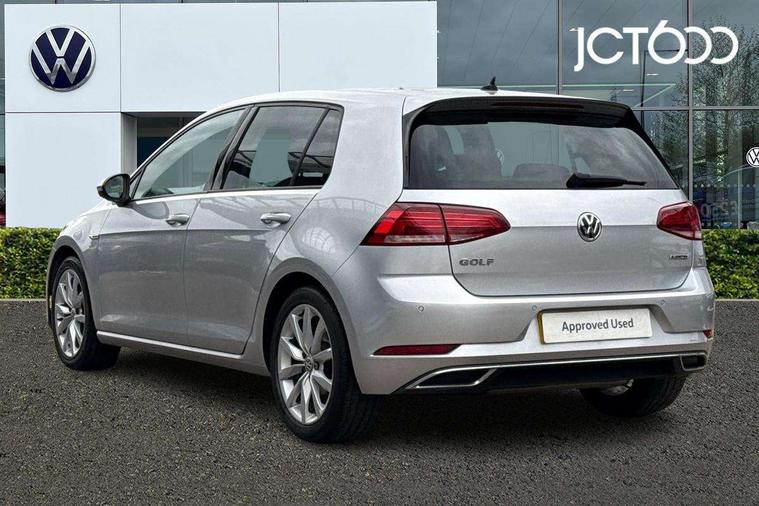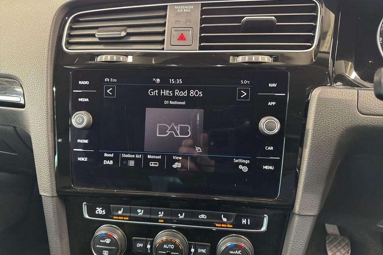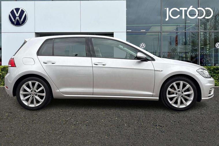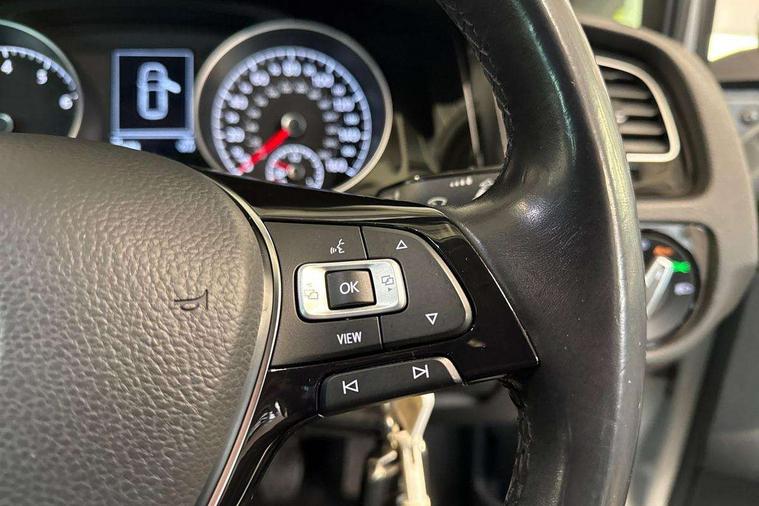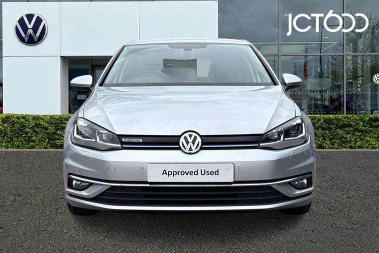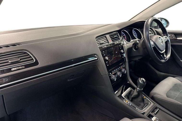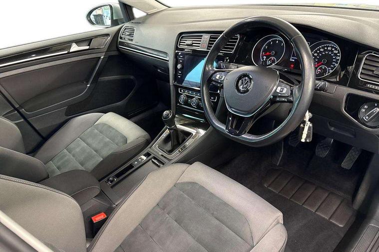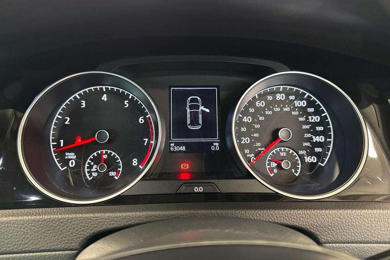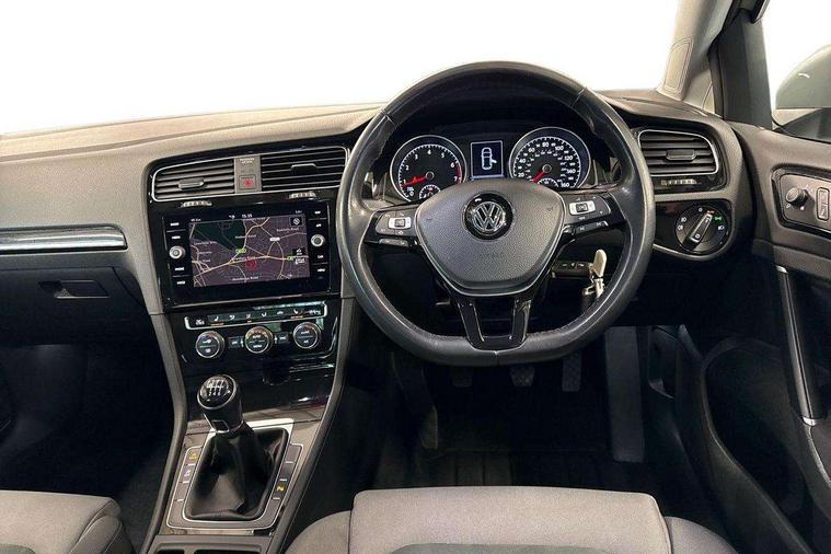 'Lights On' Reminder warning buzzer, ACC - Adaptive cruise control with front assist, forward collision warning, distance monitoring, city emergency brake and speed limiter, Bluetooth telephone and audio connection for compatible devices, Brake pad wear indicator warning light, Driver alert system, Driving Mode Selection with four preset modes - Eco, normal, sport or individual modes, Multifunction computer with visual gear change recommendation for fuel consumption, Power assisted speed sensitive electro-mechanical steering, Push tank flap, Speed limit display, Speedo, rev counter, electronic odometer, trip, service interval display, exterior temperature and fuel gauge, Stop/start system, Think blue trainer driver tips and journey analysis, Warning buzzer and light for front seatbelts unfastened, Battery regeneration during braking, XDS electronic differential lock, Composition media system, DAB Digital radio receiver, Driver Personalisation profile selection, MP3/WMA compatability, Multi device interface (MDI) via USB connection, Premium USB cable in choice of either Apple or Android smartphone compatibility, SMS Functionality, Title and cover art display, USB and SD card connectivity, Volkswagen media control, Black front air intake and radiator grille with chrome insert, Black rear diffuser, Body colour bumpers, Body colour door handles, Body colour door mirrors with integrated indicators, Chrome trimmed front air intake surrounds, Dusk sensor + automatic driving lights, Electric front windows, Electric rear windows, Electrically adjustable and heated door mirrors, Fully galvanised body, Heated rear windscreen, High level 3rd brake light incorporating LED Technology, LED front fog lights with static cornering light function, Range adjustable headlights via infotainment system with LED daytime running lights, Rear fog lamp, Rear number plate lights incorporating LED technology, Rear tinted glass 65% light absorbing from B pillar backwards, Rear window aerial, Rear window wash/wipe with intermittent wipe, Reflectors in all doors, Tailgate with integrated rear roof spoiler, Windscreen wipers/ intermittent wipe + 4 position delay, 12V socket in luggage compartment, 3 rear headrests, 4 load lashing points in luggage compartment, 60/40 split folding rear seat backrest, Bag hook in luggage compartment x 2, Climate control - 2 zone electronic air conditioning with automatic air recirculation and allergy filter, Cooled glovebox, Cover for storage compartment in centre, Dust/pollen filter, Front + rear carpet mats, Front centre armrest with storage compartment and two rear air vents, Front seat back storage pockets, Grab handles front x 2, rear x 2 with integrated coat hooks, Height and reach adjustable steering wheel, Illuminated vanity mirrors, Instrument lighting white adjustable panel illumination, Interior light delay, Isofix preparation for 2 rear child seats, Load through provision with rear centre armrest and cupholders x2, Luggage compartment lighting, Overhead storage box, Pearl grey headlining, Storage box in luggage compartment, Storage compartment in roof console with cover, Storage compartments in centre console, Storage compartments in front doors, Storage compartments in rear doors, Stowable luggage compartment cover, Sun visors, Variable boot floor, height adjustable and removable, Ambient lighting pack - Golf, Convenience Pack - Golf, Mirror pack - Golf, Winter pack - Golf, 3 rear three point seatbelts, Airbags - Driver's and front passenger's, curtain airbag, Driver's knee, front side impact and passenger's airbag deactivation switch, Anti-lock Braking System (ABS) with Hydraulic Brake Assist (HBA), Automatic post collision braking system, Child locks on rear doors, Driver/Passenger optimised head restraints, Electronic parking brake with auto hold, Electronic stability control (ESC) including Electronic differential lock (EDL) and ASR (Traction control) with deactivation via infotainment system, Front ventilated disc brakes and rear disc brakes, Pre crash preventive occupant protection, Three point height adjustable front seatbelts with tensioners, Tyre pressure loss indicator, Alarm with interior protection and deactivation via infotainment system, Electronic engine immobiliser, Chrome plated air vent surround, Chrome plated electric mirror adjustment switch surround, Chrome-plated light switch surround, Piano black decorative inserts in centre console, Tumbler decorative inserts, Steel space saver spare wheel,