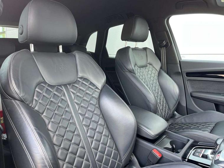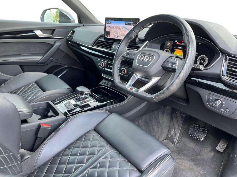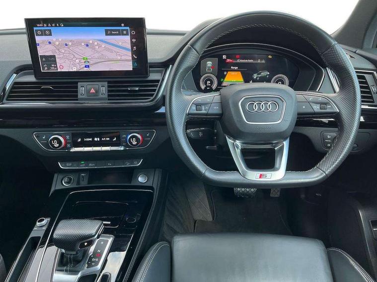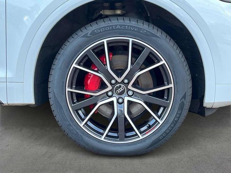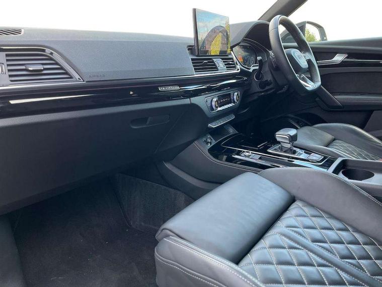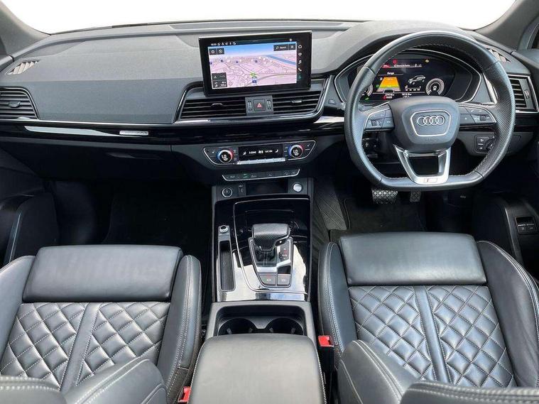 Polished oak trim with grey finished, Titanium black styling pack - Q7/SQ7, Tyre repair kit, Anti theft alarm, Anti-theft wheel bolts and wheel loosening detection, Keyless Go, Remote central locking, Audi music interface - front 2 USB-C ports with charger and data functions, Audi sound system with 6 channel amplifier, 180 watt amplifying capacity and 10 loudspeakers including subwoofer, DAB digital radio module, 3 point seatbelts on all rear seats, Audi pre sense front, Driver and front passenger, front side and curtain airbags, Electromechanical parking brake, Electronic Stabilisation Control (ESC) including ABS, ASR and EDL, Extended pedestrian protection measures, Hill hold assist, Seatbelt monitoring, Tyre pressure loss indicator, Warning triangle and first aid kit, Audi matrix LED headlights with dynamic front and rear indicators, Auto dimming frameless rear view mirror, Black roof rails, Bumpers in contrast paint scandium grey finish includes door trim and wheel arch trim strips, inlays in door strip contain quattro embossing, Electrically adj heated/folding + automatically dimming exterior mirrors with memory + automatic kerb side function for passenger side exterior mirror, Heat insulating glass in windshield, Integrated LED indications in door mirrors, LED daytime running lights, LED rear tail lights, Privacy glass - dark tinted rear and rear side windows from B-pillar backwards, 4 zone deluxe automatic climate control, 7 seat layout with ISOFIX points for the front passenger seat and rear passenger seat, Black cloth headlining, Comfort front centre armrest, Electric adjustable front seat with 4 way lumbar support, driver memory functionality, Folding rear seats, Front head restraints, Front/rear floor mats, Heated front seats, Illuminated door sill trims with S logo, LED interior ambient lighting, Luggage compartment cover, Luggage compartment sill protection in stainless steel, Rear head restraints, Stainless steel pedals, Sunvisors with illuminated vanity mirrors, Tool kit, Audi connect safety and service (e-call), Audi connect with Amazon Alexa Integration, Audi drive select (Auto, Comfort, Dynamic, Efficiency, Individual, Off-road and All road), Audi smartphone interface includes wireless Apple carplay/Android Auto, Bluetooth interface, Camera based traffic sign recognition, Electromechanical steering, MMI navigation plus with MMI touch screens includes 10.1" and 8.6" screens with haptic feedback, Natural voice recognition, Parking system plus with 360 degree display (front, rear and side sensors) - acoustic and visual park assist system, Power operated tailgate, Rear view camera, Start/stop system, 48V Mild hybrid technology, 85 litre fuel tank, Adaptive air sports suspension, Quattro all wheel drive with self locking centre differential,
