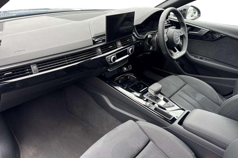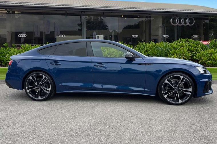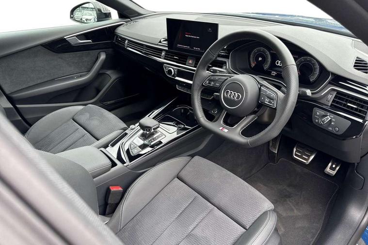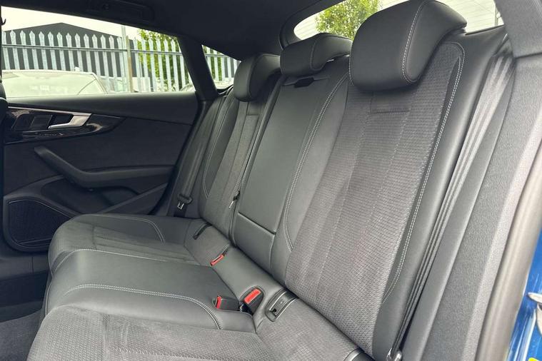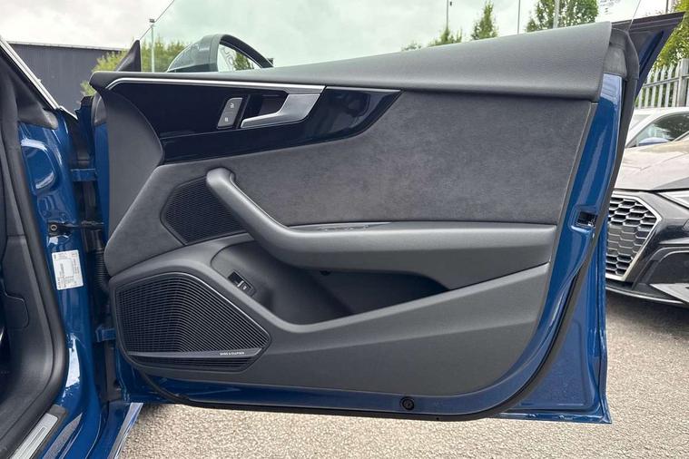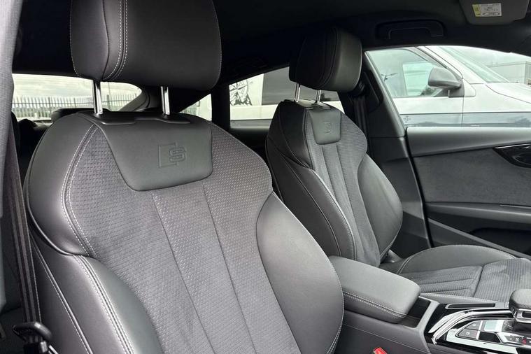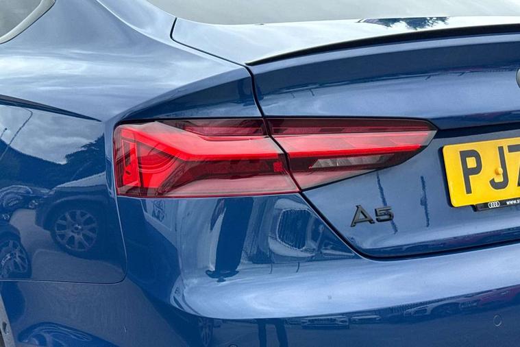 Audi connect safety and service (e-call), Audi drive select (Auto, Comfort, Dynamic, Efficiency and Individual), Audi smartphone interface, Audi virtual cockpit - 12.3" full colour digital instrument cluster, vehicle/engine speed, Radio/media information+Driver assistance systems, Automatic start-stop system with coasting functionality and efficiency programme, Bluetooth interface, Camera based traffic sign recognition, Electro-mechanical power steering, Email, calendar and text messages displayed via MMI, Front and rear parking sensors, Lane departure warning, MMI nav+ with MMI touch - 10.1" high resolution MMI display, touch sensitive, 3D map, route/country info, dynamic route guide, personal route assist, Power operated tailgate, Rear view camera, Service interval indicator, Voice control system, Diesel particulate filter, Sports suspension lowered by 23mm, 8 passive loudspeakers, CD player, DAB digital radio reception, Two additional USB ports for rear passenger in rear centre console, Two SDXC card slots, Audi Beam uses LEDs to project the Audi logo, Auto dimming door mirrors, Auto dimming rear view mirror, Badges on front wing, Black door mirror housings, Body colour door handles, Body colour front spoiler lip, Body colour side sill trim, Electric adjustable heated door mirrors, Electric folding door mirrors, Electric front windows, Exhaust tailpipe trims in dark chrome, Front and rear bumpers with side skirts, Front fog lights, Honeycomb structure radiator grille in grained matt black, Kerb-view function for passenger side, LED headlights and rear lights with LED daytime running lights, LED side indicator lights integrated into door mirrors, LED third brake light, Privacy glass, Rain and light sensors, Rear diffuser in matt anthracite black with trim strip in matt aluminium silver, Rear side wing doors, Rear wiper, S model rear spoiler in black, Side air inlets in grained matt black with matt aluminium silver inlay, Variable front intermittent wipers, Windscreen with acoustic glazing, 3 seat bench in 2nd row, 4 way electric lumbar support for driver and front passenger, 40/20/40 split folding 3 seater rear bench seat, Adjustable steering column, Black cloth headlining, Black perforated leather gearknob, Contrast stitching on seats, steering wheel and gear lever gaiter, Deluxe 3 zone electronic climate control, Front centre armrest, Front head restraints, Front/rear floor mats, Heated front seats, Illuminated door sill trim with S logo, ISOFIX child seat mounting and top tether, Luggage compartment mat, Manual seat adjustment, Rear centre armrest, Rear headrests, Single front passenger seat, Stainless steel pedals and footrest, Sunvisors with vanity mirrors, Black styling pack - A5 Coupe/Sportback, LED interior light pack - A5/RS5, 3x3 point rear seatbelts, 6 airbags - Driver, front passenger, curtain and side airbags, Attention and drowsiness assist, Electromechanical parking brake, Electronic Stabilisation Control (ESC) including ABS, ASR and EDL, Front passenger airbag deactivation, Height adjustable front seatbelts, Hill hold assist, Manual child lock in rear doors, Multi collision brake assist, Pop-up bonnet for pedestrian protection, Pre sense city, Seatbelt monitoring, Tyre pressure warning, Variable restraint system, Warning triangle and first aid kit, Anti theft alarm system, Anti theft wheel bolts, Immobiliser, Keyless Go, Remote central locking, Piano black finish inlay, Tool kit, Tyre repair kit,