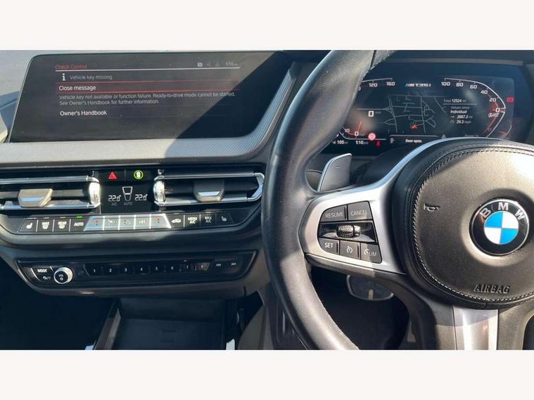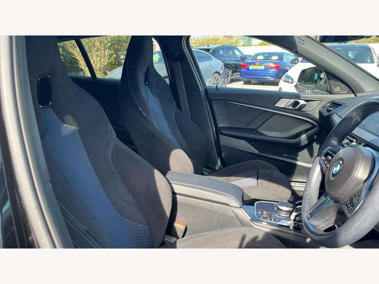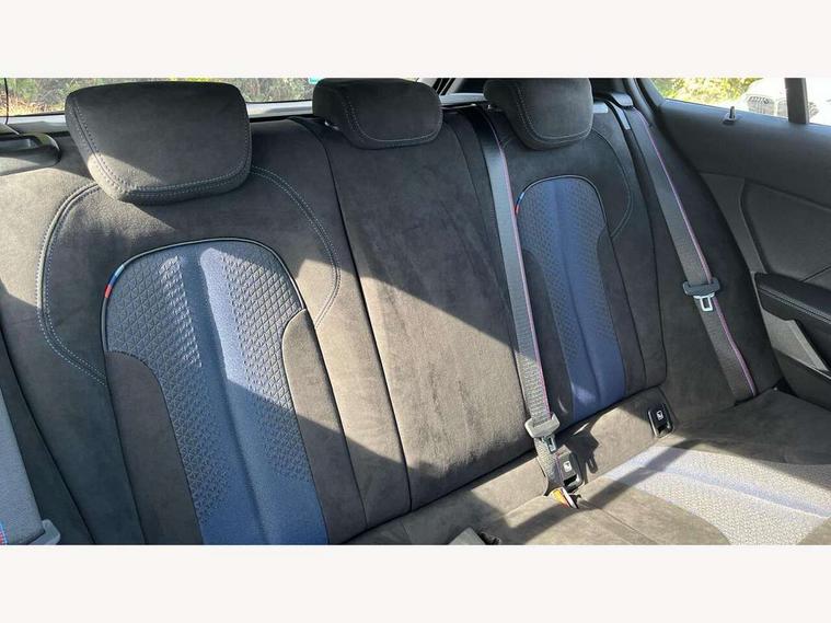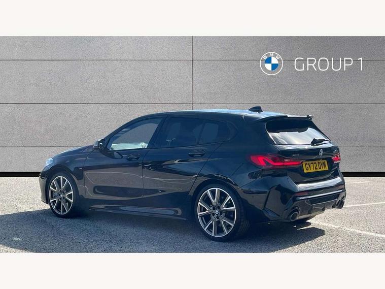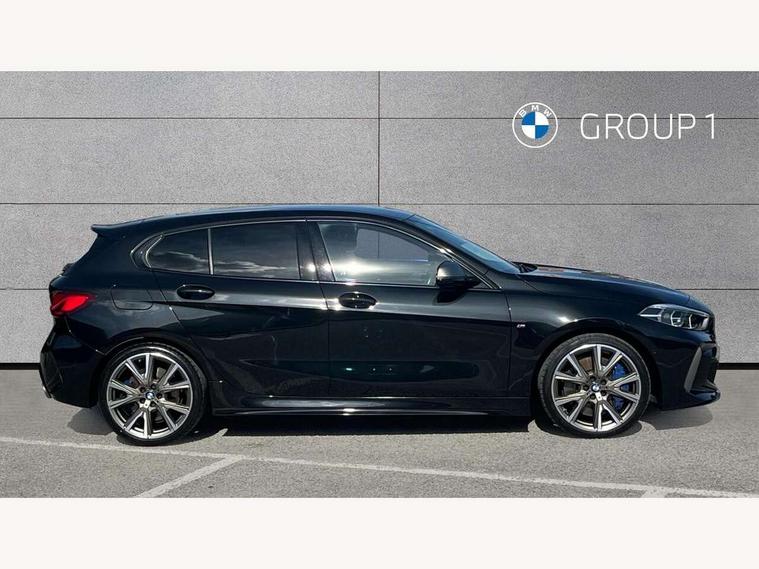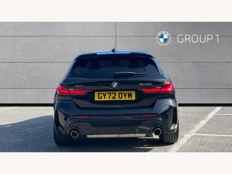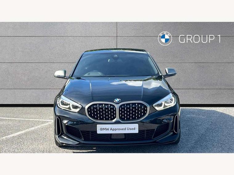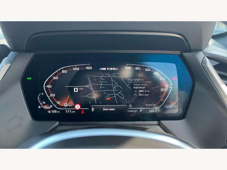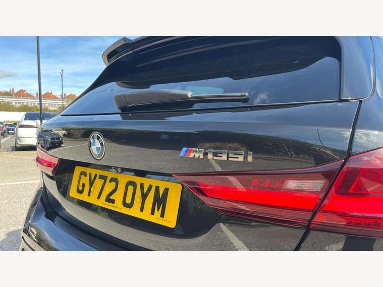 Active guard plus, Attentiveness assist, BMW ConnectedDrive online services, BMW Teleservices, Check Control warning system for monitoring of lights and door/luggage compartment open warning, Cruise control with brake assist, Eco pro mode, Electric power steering, Electro hydraulically controlled multi-plate clutch transfers drive to rear axle and with power take-off device located on the front differential., Energy efficient operating strategy, Front axle single joint with specific axle kinematics to minimise drive influences on steering + provide increased rigidity agile driving behaviour, Gearshift time display in manual mode, Integrated owners handbook, Lane departure warning system, M Sports steering with M135i xDrive specific settings, Oil sensor for level and grade, On board computer, Optimum shift indicator, Personal Profile, Pull away assistant, Rigidly mounted rear subframe - Multi link construction with separate spring / damper configuration and excellent driving characteristics, Speed limit Info including no-overtaking indicator, Speed limiter, Sporty fast gear shifting in sport mode, Aluminium lightweight construction, Anti roll bar front and rear, Balancer shaft, Double VANOS, Drive Performance Control, Eight speed sport automatic transmission with gearshift paddle switches, Electronic differential lock, Electronic selector lever, Engine cover with M performance designation, High precision injection, Larger fuel tank capacity (50 litres), Launch control, M135i specific heavily de-throttled engine intake air guide, M135i specific high-performance cooling package, M135i specific larger turbocharger with integrated divert-air valve, Petrol Particulate Filter, Twin tube gas filled shock absorbers with degressive characteristic curve, VALVETRONIC engine management, Variable, stepless and infinitely adjustable distribution of drive torque between the front and rear axles, xDrive intelligent all wheel drive with M135i specific reinforced components, DAB Digital radio, Auto dimming rear view mirror, Automatic headlight beam throw control, Automatic windscreen wipers and automatic headlight, Body colour door handles, Body colour roof trims, Cerium grey exterior mirror caps, Direction indicator side lights in exterior mirrors, Exhaust tailpipe, Cerium Grey with bevelled finish - twin, round 100mm, left and right split, Fading support, Folding side mirrors with auto dimming/folding wing mirrors with auto dimming, Follow me home headlights, Front and rear bumper system with replaceable deformation elements, Front and rear electric windows with open and close fingertip control, anti trap facility and comfort closing, Front door sill finishers with M135i designation, Green tinted heat protection glazing, Heated, electrically adjustable exterior mirror aspheric on driver side, convex on passenger side, High gloss shadowline window frame, Recess cover mirror frames and B/C pillar embelisher trim, High level third brake light, Integrated front windscreen with washer jets, Kidney grille frame in Cerium Grey with Mesh design, LED daytime running lights, LED eyebrow turn indicators, LED front fog lights, Lightweight engineering, M logo designation side in cerium grey, M Performance exhaust system with valve control and minimised exhaust back pressure, M Performance specific setup, M Sport spoiler, Matt black air guide grilles, Matt black wheel arch trim, Model designation on electric bootlid includes xDrive designation for M135i xDrive, Nearside reverse light in rear light cluster, Preparation for high beam assistant, Rear fog lights, Rear side wing doors, Rear window wiper, Reinforced crank drive, new pistons and adapted con rods, Shark fin antenna, Trailer stabilisation logic, Visible VIN plate, Welcome lighting, 12V power socket in front centre console with blanking plug, 3 rear seat head restraints, 3 seat bench in 2nd row, 3 spoke sports leather steering wheel with black leather and stitching, pearl chrome decorative finish, specific M Badge, Anthracite headlining, Black boot net with lashing eyes, Cargo function on 2nd seat row, Child seat ISOFIX attachment for two outer rear seats and front passenger seat with anchorage points, Conditioned based service, Driver and front passenger seat heating, Folding rear clothes hook, Four grab handles integrated in roof lining, Front and rear door pockets with bottle holders, Front and rear side armrest integrated into door trim, Front armrest, Front integrated head restraints, Front M sports seats, Glove compartment, Luggage compartment for bag hooks on left and right, foldable luggage compartment liner and four lashing eyelets, Manual adjust steering wheel, Multi-function controls for steering wheel, Single front passenger seat, Storage compartment in centre console, Sun visors with vanity mirrors and insert tab, Two front centre console cupholders, Two zone automatic air conditioning, Velour floor mats, Additional interior lighting pack - 1 Series M135i, BMW live cockpit professional pack- 1 Series, Connected pack professional - 1 Series, Interior lights pack - 1 Series, M Sport exterior styling aerodynamics pack - 1 Series 135i, 2 tone horn, 3 point seatbelts on all seats, front pyrotechnic belt tensioners, stopper and belt force limiters, rear coded belt buckles, Airbags - Front driver/passenger, front and rear curtain head protection, front side, manual deactivation of front passenger airbag, Anti lock braking system (ABS) with brake assist, BMW emergency call, Brake drying, Braking readiness, Child proof locking system in rear door, City braking function, Comfort modes, Cornering brake control, Crash sensor activating central locking release, hazard warning lights, fuel cut off, interior lighting + activation of safety battery terminal clamp, Driver and front passenger seat belt security check, Dynamic stability control + (DSC+), Dynamic Traction Control - DTC, Electrically operated hand brake including automatic hold function, Front and rear