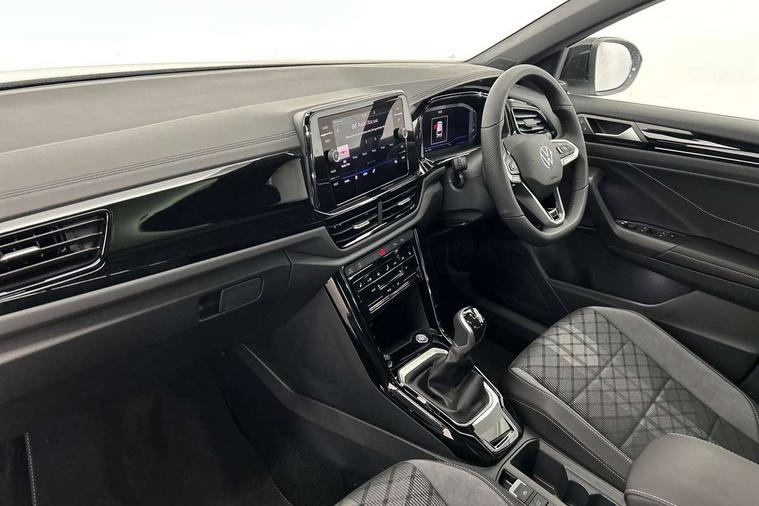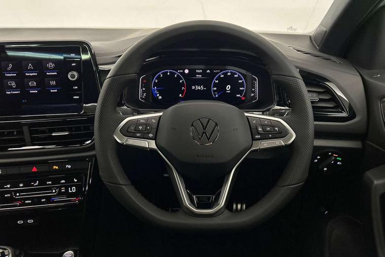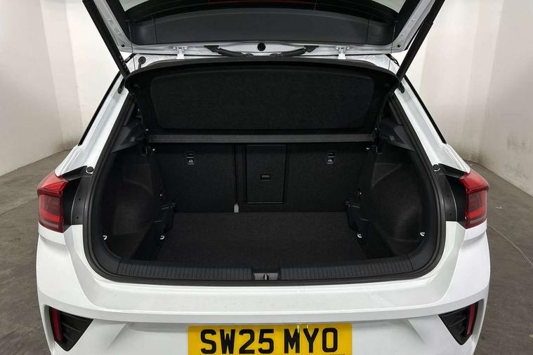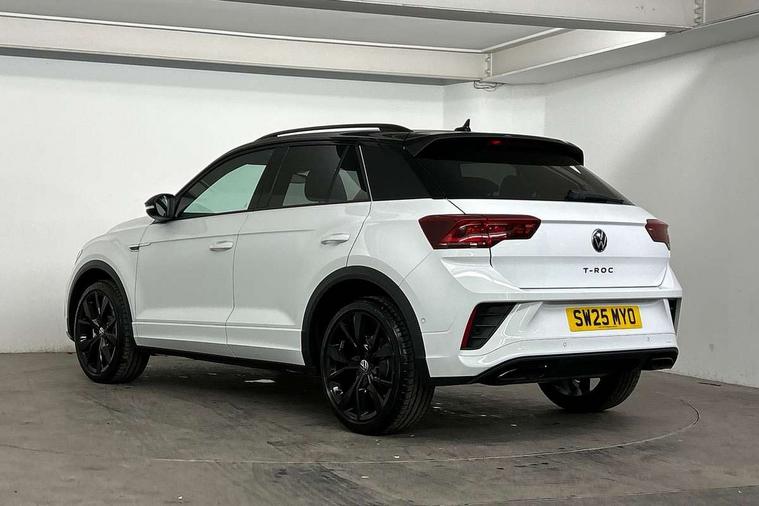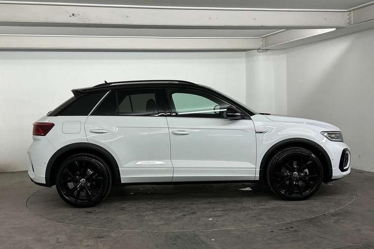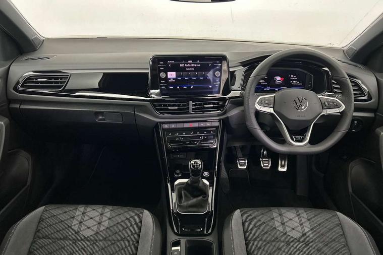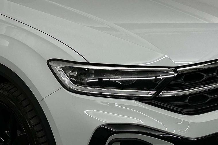 10.25" Digital cockpit pro, Advanced driver attention and drowsiness monitor, Emergency call service, Lane keeping system Lane Assist, Mobile phone interface, Modified key software - reduce switch off time for key status change to Long no motion, Online services, Park assist including front and rear parking sensors, Power assisted speed sensitive steering, Rear view camera, Service interval indicator, Tailgate/trunk lid release from outside, Think blue trainer driver tips and journey analysis, Warning sound and light for front seatbelts unfastened, Wireless app connect, Battery regeneration during braking, Start/stop function with battery regeneration, DAB Digital radio, Diversity antenna for FM reception, Music playback - MP3, WMA and AAC files, Premium USB cable in choice of either Apple or Android smartphone compatibility, SD card slot, Simultaneous pairing of 2 compatible mobile devices, Title and cover art display, We Connect and We Connect Plus functionality, Advanced dynamic light assist for LED matrix headlights, Auto dimming interior rear view mirror, Automatic hazard lights activation under emergency braking, Black roof rails, Dynamic cornering light, Dynamic headlight range control with self adjusting whilst driving, Electrically adjustable and heated door mirrors, Extended roof spoiler, Exterior ambient lighting, Exterior mirrors aspherical on driver side, convex on front passenger side, External USB type C socket and charging sockets, Front windscreen wiper with intermittent wipe and 4 position delay, Heated rear window, Illuminated front grille, IQ LED matrix headlights, LED 3rd brake light, LED rear number plate lights, LED rear tail lights with dynamic turn signal, LED separate daytime running light, Light mode for poor weather, rain, fog or snow, Power windows with comfort operation and circuit breaker, Privacy glass for rear side windows and rear window, R-Line design body coloured bumpers, Rain sensor, Rear exhaust tailpipe, Rear fog light on one side and reversing lights on both sides, Rear side wing doors, Rear wash/wipe with intermittent wipe setting, Remote electrically foldable door mirrors, puddle lights and reverse activated passenger's door mirror, Tilting and sliding panoramic sunroof with rear panoramic sunroof, 12V power socket in centre console, 3 rear head restraints, 3 seat bench in 2nd row, 4 load lashing points in luggage compartment, Air care climatronic air conditoning system with active combination filter and 2-zone temperature control, Chrome plated radiator grille inserts, air vent surrounds and light switch surrounds, Door and side trim panel with leatherette insert, Front + rear carpet mats, Front centre armrest, Front cupholders x 2, Front footwell illumination, Front reading light, Front scuff plates with R Line logo, Front seat back storage pockets, Glove compartment door with light, Instrument lighting, white adjustable panel illumination, Interior ambient lighting and surround lighting, Interior light delay, Isofix child seat preparation, Leather gearshift handle, Load-through provision with cup holder when folded down ('Unsplit rear seat bench, split folding backrest, with centre armrest), Luggage compartment lighting, Single front passenger seat, Stainless steel pedals, Storage compartment in left and right luggage area, Storage compartment in rear doors, Storage compartments in driver and front passenger doors, Sunvisors with illuminated vanity mirrors, Variable boot floor, height adjustable and removable, Black design pack - T-Roc black edition plus, Easy open package with safelock - T-Roc, 3 point height adj front seatbelts + pretensioners, 3 point seatbelts in outer rear with ECE label, ABS, Child locks on rear doors, City emergency braking and pedestrian monitoring, Driver and front passenger airbag with front passenger airbag deactivation, Driver and front passenger safety-optimised head restraints, Drivers seatbelt reminder, Electronic parking brake, Electronic Stability Control (ESC) inc EDL (Electronic Differential Lock) and ASR (Traction Control), Front and rear passengers curtain airbag system including front side airbags, Hill start assist, Predictive pedestrian protection, Rear disc brakes, Two tone horn, Tyre pressure loss indicator, Volkswagen roadside assistance, Keyless locking and starting system keyless access with safelock, Gloss deep iron dash trim, 19" Misano alloy wheels with low rolling resistance and anti theft wheel bolts, Tool kit, Trims for alloy wheels, Tyre mobility kit including compressor and sealing foam,