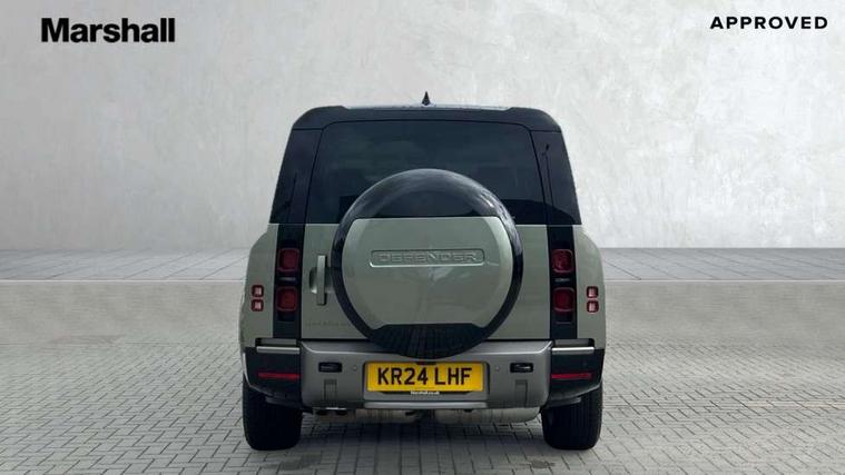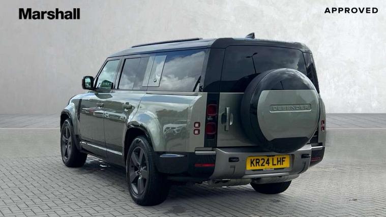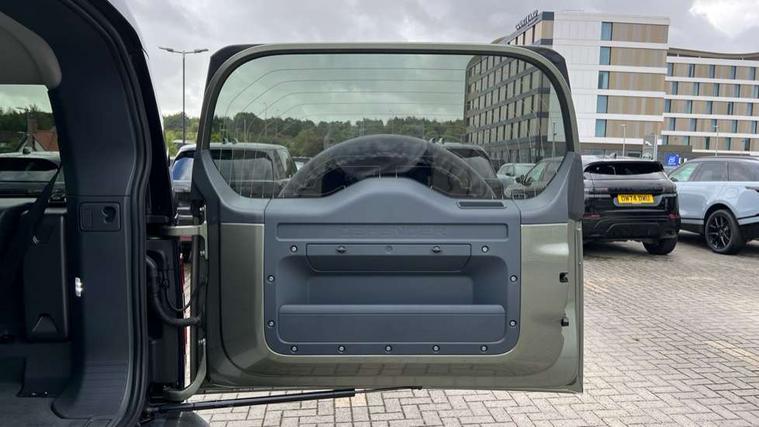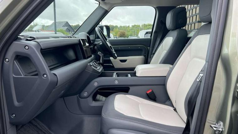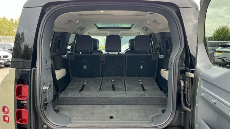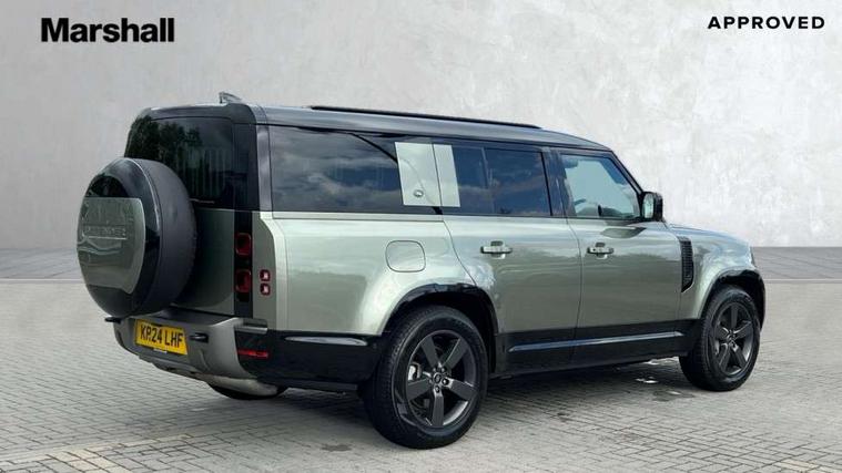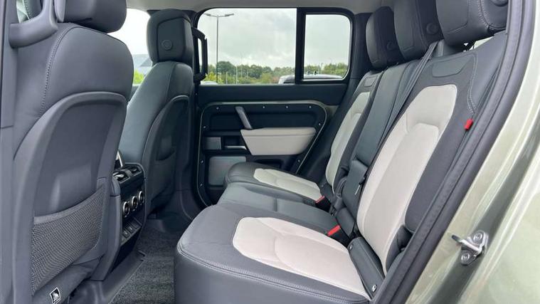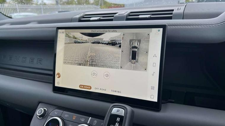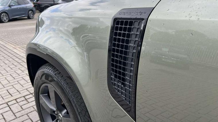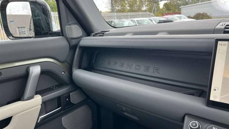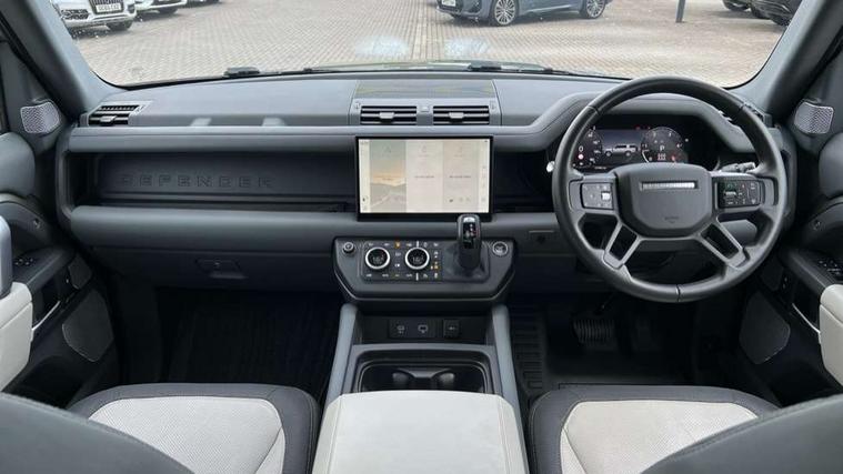 11.4" touchscreen, 360 degree parking aid, 3D Surround Camera with 360 View, 180 Rear View, Front Traffic Detection, Forward Vehicle Guidance, Tow Hitch Assist and clear sight Ground View, Adaptive cruise control, Android Auto, Apple CarPlay, Assisted tailgate with soft close, Blind spot assist, Bluetooth system, Brake pad wear indicator, Clear exit monitor, Connected navigation pro, Driver condition monitor, Electric power assisted steering (EPAS), Interactive driver display, Lane keep assist, Push button start, Rear collision monitor, Rear traffic monitor, Traffic sign recognition with adaptive speed limiter, Trip computer, Wade Sensing, 8 speed automatic transmission, Adaptive dynamics, All wheel drive system, Electronic air suspension, Twin speed transfer box, DAB Radio (Digital Audio Broadcasting), Pivi pro connected, Auto dimming interior rear view mirror, Automatic headlight levelling, Automatic headlights, Black exposed rear recovery eyes, Black roof rails, Centre high mounted stop light, Electric heated/power fold door mirrors with approach lights and auto dimming driver side, Electric windows with one touch open/close and anti-trap, Follow me home lighting, Front fog lights, Heated rear window with timer, Heated windscreen, LED tail lights, Privacy glass, Puddle lights, Rain sensing windscreen wipers, Rear fog lights, Rear side wing doors, Rear wiper, Side hinged tailgate, Sliding panoramic roof, Trailer stability assist, X-Dynamic badge, 12V power socket in loadspace, 14 way heated and cooled electric adjustable memory front seats with 4 way manual headrests, 3 seat bench in 2nd row, 3 seat bench in third row, Air quality sensor, Alpine lights, Cabin Air Purification plus, Configurable cabin lighting, Durable rubber cabin flooring, Durable rubber loadspace flooring, Electric cabin pre conditioning, Electric reach + rake adjustable steering column, Extended leather upgrade, Footwell lights, Front passenger isofix child seat attachment, Heated steering wheel, Loadspace cover, Loadspace Hook, Multifunction steering wheel, Overhead stowage for sunglasses, Premium cabin lighting, Rear headrests, Rear ISOFIX, Rear reading lights, Single front passenger seat, Storage glovebox, Sunvisors with illuminated vanity mirrors, Twin front cupholders with cover, Non-smoker package, Online pack with data plan - Defender, 5 x 3 point seatbelts, ABS, Brake hold function, Cornering brake control (CBC), Customer configurable autolock, DSC - Dynamic Stability Control, EBD - Electronic brakeforce distribution, Electric parking brake (EPB), Emergency brake assist, Emergency braking, ESP + traction control, Front airbags with passenger seat occupant detector, HDC - Hill descent control, Hill launch assist, Low traction launch, Power operated child locks, Remote for (e-Call, Optimised assistance call, InControl app, Climate, beep and flash and door), RSC - Roll stability control, Seat belt reminder, TPMS (Tyre pressure monitoring system), Alarm, Immobiliser, Intrusion sensor, Keyless entry, Locking wheel nuts, All season tyres, Body coloured spare wheel cover,
