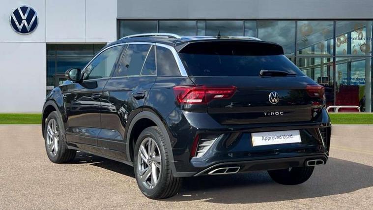 10.25" Digital cockpit pro, Bluetooth mobile phone interface, Driver alert system with fatigue detection, Driver tips and journey analysis, Emergency call service, Lane keeping system Lane Assist, Modified key software - reduce switch off time for key status change to Long no motion, Online services, Park assist including front and rear parking sensors, Service interval indicator, Tailgate/trunk lid release from outside, Think blue trainer driver tips and journey analysis, Warning sound and light for front seatbelts unfastened, Wireless app connect, Battery regeneration during braking, Start/stop function with battery regeneration, Diversity antenna for FM reception, Front and rear 6 speakers, Music playback - MP3, WMA and AAC files, Premium USB cable in choice of either Apple or Android smartphone compatibility, SD card slot, Simultaneous pairing of 2 compatible mobile devices, Title and cover art display, We Connect and We Connect Plus functionality, 3rd brake light, Auto dimming interior rear view mirror, Automatic hazard lights activation under emergency braking, Automatic headlight control with LED separate daytime running lights with coming/leaving home function, Extended roof spoiler, Exterior mirrors aspherical on driver side, convex on front passenger side, External USB type C socket and charging sockets, Front windscreen wiper with intermittent wipe and 4 position delay, Heated rear window, LED Plus headlamps, LED rear combination lamps, LED rear number plate lights, LED tail lamp rear comination lamps, Power windows with comfort operation and circuit breaker, R-Line design body coloured bumpers, Rain sensor, Rear exhaust tailpipe, Rear fog light on one side and reversing lights on both sides, Rear side wing doors, Rear wash/wipe with intermittent wipe setting, Remote electrically foldable door mirrors, puddle lights and reverse activated passenger's door mirror, 12V power socket in centre console, 3 rear head restraints, 3 seat bench in 2nd row, 4 load lashing points in luggage compartment, Air care climatronic air conditoning system with active combination filter and 2-zone temperature control, Black roof lining, Chrome plated radiator grille inserts, air vent surrounds and light switch surrounds, Door and side trim panel with leatherette insert, Drawer under drivers seat, Front + rear carpet mats, Front centre armrest, Front cupholders x 2, Front footwell illumination, Front reading light, Front scuff plates with R logo, Instrument lighting, white adjustable panel illumination, Interior ambient lighting and surround lighting, Interior light delay, Isofix child seat preparation, Leather gearshift handle, Load-through provision with cup holder when folded down ('Unsplit rear seat bench, split folding backrest, with centre armrest), Luggage compartment lighting, Single front passenger seat, Stainless steel pedals, Storage compartment in left and right luggage area, Storage compartment in rear doors, Storage compartments in driver and front passenger doors, Sunvisors with illuminated vanity mirrors, Variable boot floor, height adjustable and removable, Driver assistance pack without proactive passenger protection - T-Roc, 3 point height adj front seatbelts + pretensioners, 3 point seatbelts in outer rear with ECE label, ABS, Child locks on rear doors, Driver and front passenger airbag with front passenger airbag deactivation, Driver and front passenger safety-optimised head restraints, Drivers seatbelt reminder, Electronic parking brake, Electronic Stability Control (ESC) inc EDL (Electronic Differential Lock) and ASR (Traction Control), Front and rear passengers curtain airbag system including front side airbags, Front assist with city emergency braking and pedestrian monitoring, Front seat side impact airbags, Hill start assist, Predictive pedestrian protection, Rear disc brakes, Single tone horn, Tyre pressure loss indicator, Volkswagen roadside assistance, Alarm with interior protection, Anti-theft alarm system with interior monitoring, backup horn, and towing protection, Remote central locking with SAFELOCK, radio remote control with 2 remote control folding keys, Trims for alloy wheels,