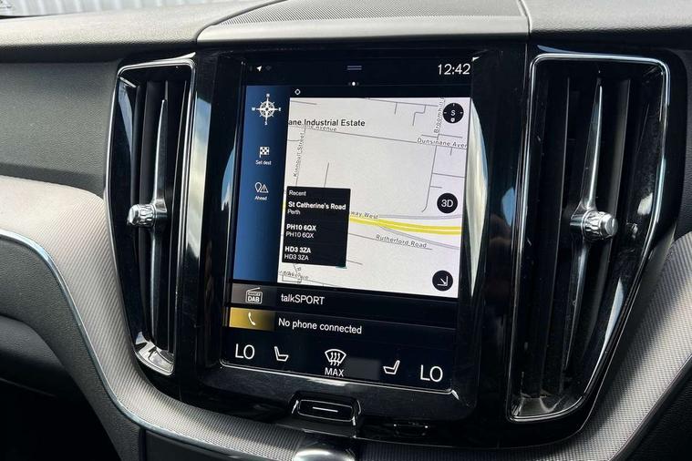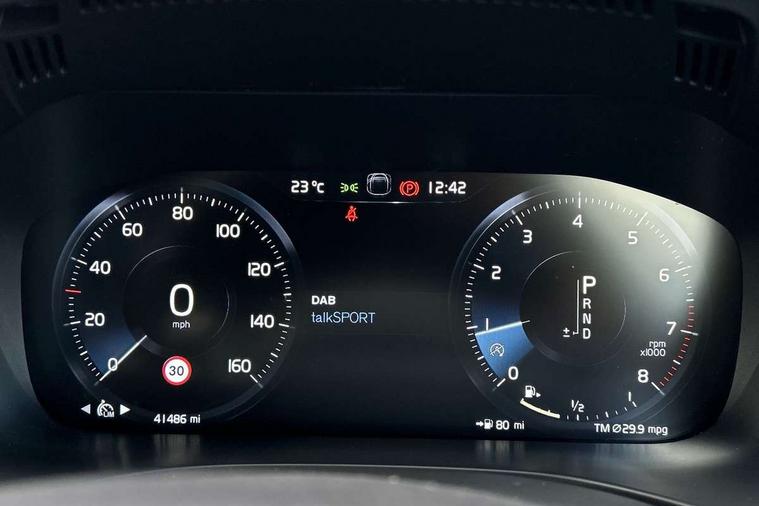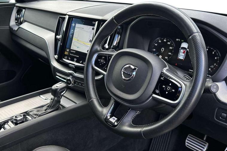 12.3" Active TFT crystal driver's instrument display, 9" Touch screen, Adjustable steering wheel force, Bluetooth hands free telephone kit, Drive mode selector, Front collision warning with full auto brake, Intelligent driver information system (IDIS), Lane keep assist with driver alert control, Oncoming Lane Mitigation, Power tailgate, Remote fuel flap release, Road Edge Detection, Service interval indicator, Speed limiter, Speed sensitive steering, Trip computer, Voice control system, Volvo on call, DAB Digital radio, Auto dimming interior + exterior mirrors, Body colour bumpers, Dark tinted glass for rear windows + rear screen + side luggage area window, Dual integrated exhaust pipes with high gloss black surround, Electric folding door mirrors, Electric front+rear windows, Electrically adjustable and heated door mirrors, Headlamp levelling, High gloss black front grille, Home safe and approach lighting, Illuminated side steps, LED front fog lights, LED Headlights + Active high beam incorporating daytime running lights, Matt silver finish door mirrors, R Design tread plates, Rear wiper, Roof antenna, Roof spoiler, Silver matt window frame surround, Silver roof rails, Tinted windscreen, Visible VIN plate, 12V power point in luggage area, 12V socket in front + rear tunnel console, 3 spoke leather steering wheel with chrome trim, 60/40 split folding rear seat, A-pillar parking ticket holder, B Pillar ventilation, Black headlining, Bright metal luggage threshold, Centre armrest storage illumination, Centre console cupholders and storage, Extended front seat cushions, Front footwell illumination, Front/rear reading lights, Gearshift paddles, Glovebox illumination, Head restraints for all seats, Heated front seats, Height/reach adjustable steering column, High gloss black steering wheel remote infotainment controls, Illuminated driver/passenger vanity mirrors, Illuminated luggage compartment, ISOFIX attachment on outer rear seats, Load cover, Perforated leather gearknob, Perforated Leather Key Integrated Remote, Perforated leather steering wheel, Pollen filter, Rear armrest / integral cup holders / storage tray, Rear seat concealed storage, Sport pedals, Sports floor mats, Theatre dimming interior lights, Ticket holder, Underfloor stowage compartment, Vanity mirror with ticket holder, WHIPS - Whiplash Protection System, 5 three point seatbelts, ABS/EBD, City safety with steering support with Pedestrian + cyclist + large animal detection + front collision warning with full auto brake, Curtain airbags, Drivers knee airbag, DSTC-Dynamic Stability and Traction Control, Dual stage driver/passenger airbags, EBA, Electronic parking brake with auto hold, Fasten seatbelt reminder, First aid kit, Hill descent control, Hill start assist, Hydraulic Brake Assist (HBA), Passenger airbag deactivate switch, Road sign information display, Run off Road Protection, Seatbelt pre-tensioners, SIPS airbags, Tyre pressure monitor, Warning triangle, Anti-theft alarm including immobiliser/volume sensor + level sensor, Key integrated remote control central locking + fuel flap with deadlocking system and auto open/close power windows, Locking wheel nuts, Private locking for tailgate, Metal mesh inlays,