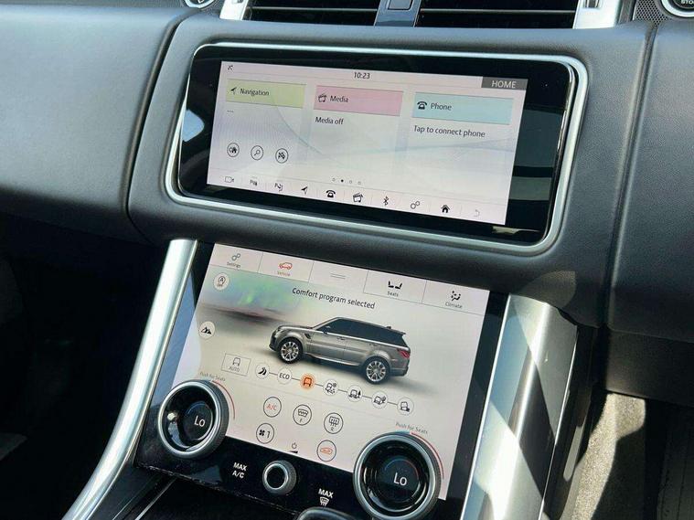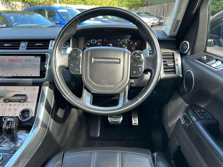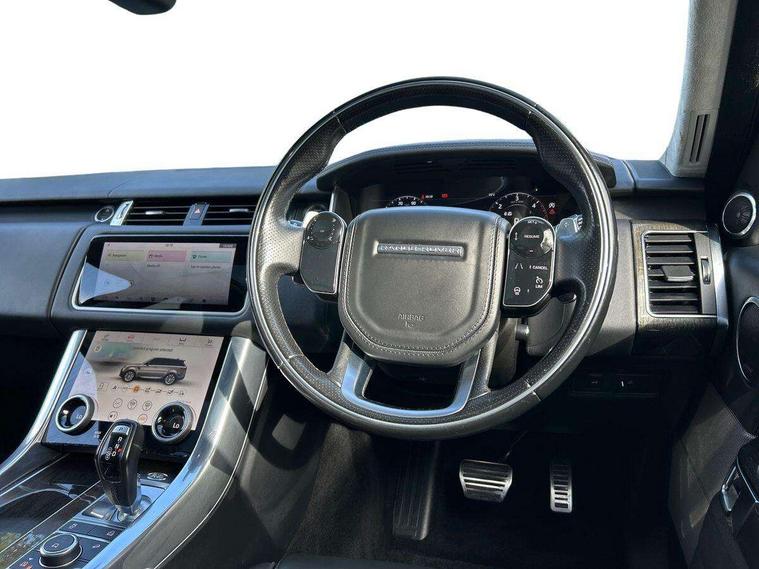 Bluetooth telephone connection, Dynamic response, Gesture tailgate, InControl secure, Mist sensor, Navigation pro system with 10" touch screen, app interface and media storage, Push button starter, Rear park distance control, Speed sensitive power steering, TFT Virtual Instrument Panel, Trip computer, Adaptive dynamics, All terrain progress control, Electronic air suspension, Terrain Response 2 with dynamic program, Twin speed transfer box, Bluetooth audio streaming, DAB Digital radio, InControl protect, USB/aux input socket, Adaptive brake lights, Auto dimming rear view mirror, Body coloured side sills and bumpers, Daytime running lights, Door/quarter lights in toughened plate glass, Electric front/rear windows/one touch operation, Electric heated, adjustable, folding door mirrors with memory + approach lamp, Follow me home headlights, Front fog lights, Heated rear window, Heated washer jets, Heated windscreen, Laminated front side windows, Laminated windscreen, LED rear lamps, Rear wash/wipe, Remote window closing, Trailer stability assist, Twin bright tailpipes, 2 way active front head restraints, 2 way rear head restraints, 60/40 Split fold rear seat/load through facility, Auto air recirculation, Bright metal foot pedals, Centre cooler storage box, Climate control memory, Driver's footrest, Front and rear cupholders, Front and rear premium carpet mats, Front door storage bin, Front map lights, Front seat back map pockets, Front stowage pocket, Front/rear passenger grab handles, Glovebox, Isofix child seat preparation, Leather steering wheel with chrome inserts, Luggage compartment lighting, Multifunction steering wheel, Pollen filter, Reach/rake electric adjustable steering column + entry/exit tilt away, Rear centre armrest, Roller blind loadspace cover, Sports pedals, Three 12V accessory power outlets, Extended leather pack - Range Rover Sport, InControl connect Pack - Range Rover Sport, 3 point seatbelts on all seats, ABS + EBD + EBA, Auto lock system when vehicle in motion, Auto locking differential, Autonomous emergency braking, Cornering brake control (CBC), Curtain airbags, DSC - Dynamic Stability Control, Dual stage driver/passenger airbags, Electric child locks, Electronic parking brake, Electronic traction control, Front seatbelt pretensioners, Front side airbags, Height adjustable front seatbelts, Hill descent control, Low traction launch, Roll stability control, Seatbelt warning, Torque vectoring brake, Tyre pressure monitoring system, Immobiliser, Keyless entry, Locking wheel nuts, Perimetric and volumetric anti theft alarm, Remote locking,