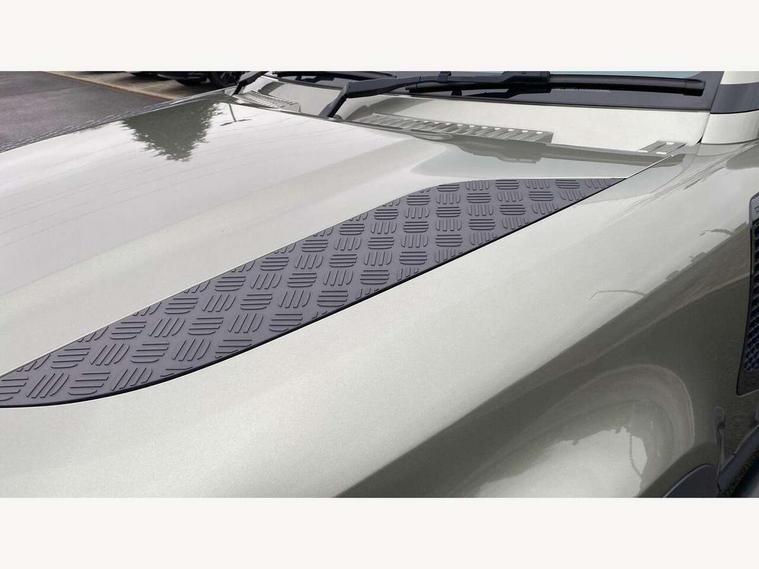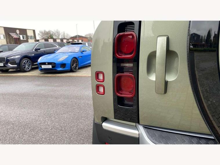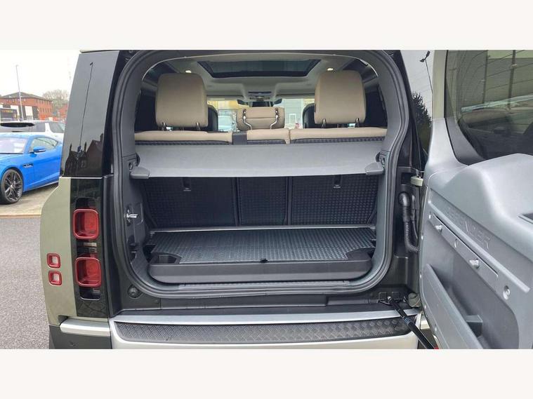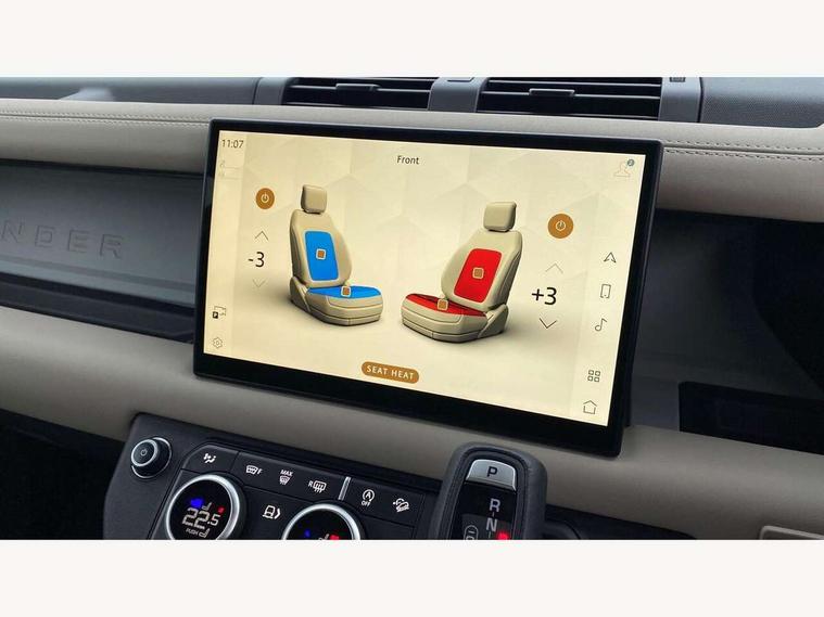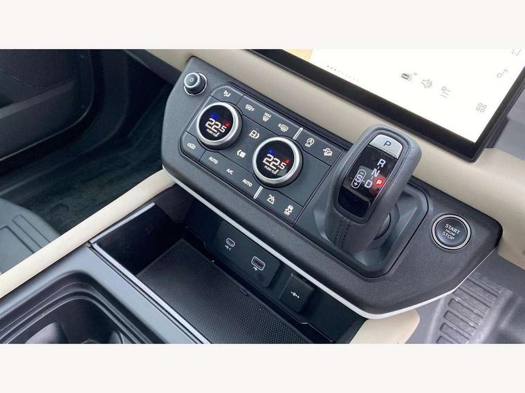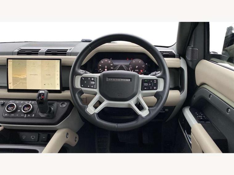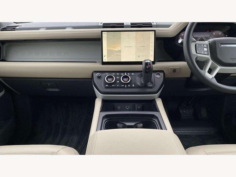 11.4" touchscreen, 360 degree parking aid, 3D Surround Camera with 360 View, 180 Rear View, Front Traffic Detection, Forward Vehicle Guidance, Tow Hitch Assist and clear sight Ground View, Adaptive cruise control, Android Auto, Apple CarPlay, Assisted tailgate with soft close, Blind spot assist, Bluetooth system, Brake pad wear indicator, Clear exit monitor, Connected navigation pro, Driver condition monitor, Electric power assisted steering (EPAS), Interactive driver display, Lane keep assist, Push button start, Rear collision monitor, Rear traffic monitor, Traffic sign recognition with adaptive speed limiter, Trip computer, Wade Sensing, 8 speed automatic transmission, All wheel drive system, Twin speed transfer box, DAB Radio (Digital Audio Broadcasting), Meridian 400w sound audio system with 11 speakers and subwoofer, Pivi pro connected, Auto dimming interior rear view mirror, Automatic headlight levelling, Automatic headlights, Centre high mounted stop light, Electric heated/power fold door mirrors with approach lights and auto dimming driver side, Electric windows with one touch open/close and anti-trap, Follow me home lighting, Front fog lights, Heated rear window with timer, Heated windscreen, LED tail lights, Panoramic rear side glass, Puddle lights, Rain sensing windscreen wipers, Rear fog lights, Rear wiper, Side hinged tailgate, Standard treadplates, Trailer stability assist, 12V power socket in loadspace, 14 way heated and cooled electric front seats with driver memory and 4 way manual headrests, 3 seat bench in 2nd row, Alpine lights, Configurable cabin lighting, Durable rubber cabin flooring, Durable rubber loadspace flooring, Electric reach + rake adjustable steering column, Extended leather upgrade, Footwell lights, Heated steering wheel, Loadspace cover, Loadspace Hook, Manual Tip & Slide front passenger seat, Multifunction steering wheel, Overhead stowage for sunglasses, Premium cabin lighting, Rear headrests, Rear ISOFIX, Rear reading lights, Removable Loadspace storage tray, Row 2 seats with forward folding seat base, Single front passenger seat, Standard seat configuration, Storage glovebox, Sunvisors with illuminated vanity mirrors, Online pack with data plan - Defender, 5 x 3 point seatbelts, ABS, Brake hold function, Cornering brake control (CBC), Customer configurable autolock, DSC - Dynamic Stability Control, EBD - Electronic brakeforce distribution, Electric parking brake (EPB), Emergency brake assist, Emergency braking, ESP + traction control, Front airbags with passenger seat occupant detector, HDC - Hill descent control, Hill launch assist, Low traction launch, Remote for (e-Call, Optimised assistance call, InControl app, Climate, beep and flash and door), RSC - Roll stability control, Seat belt reminder, TPMS (Tyre pressure monitoring system), Alarm, Immobiliser, Intrusion sensor, Keyless entry, Locking wheel nuts,