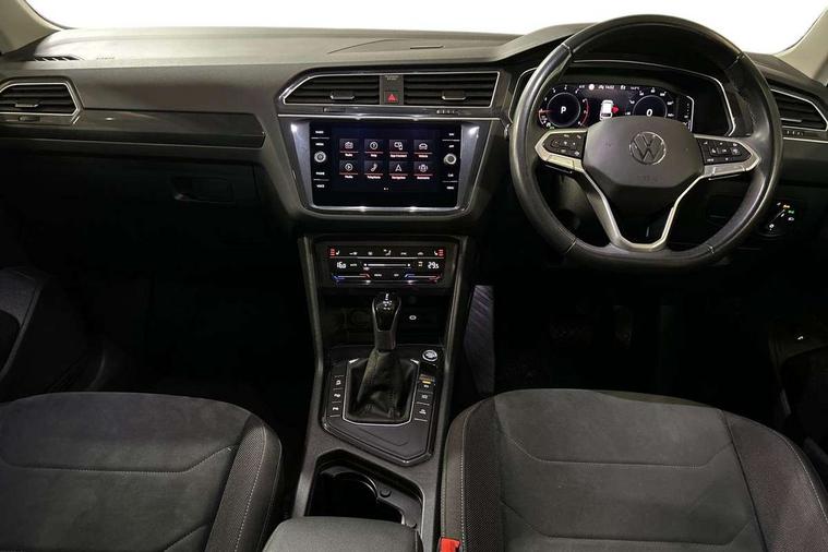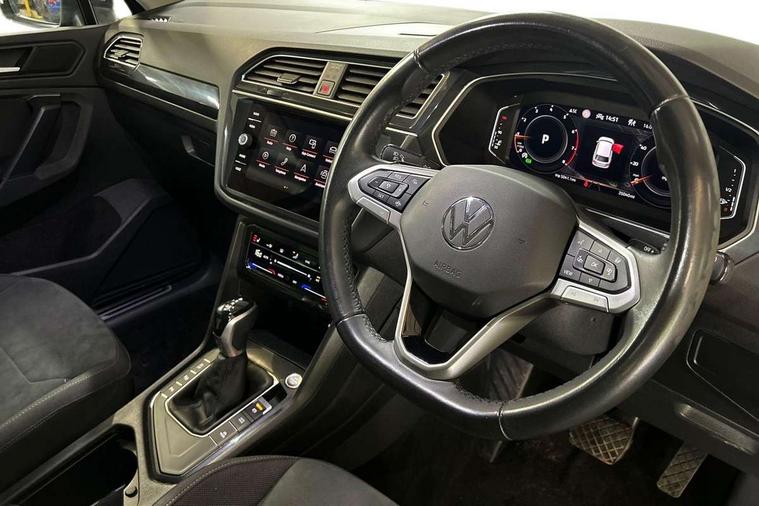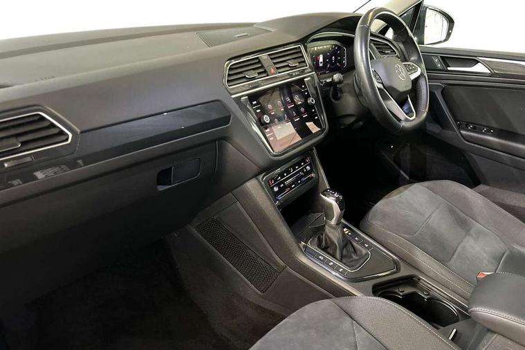 Adaptive cruise control ACC stop and go including speed limiter, App-Connect incl. App-Connect Wireless for Apple CarPlay and Android Auto, Bluetooth phone integration system, Digital Cockpit Pro - Active info display, Distance control assist, Driver alert system, Driver profile selection, Dynamic road sign display, eCall emergency call system, Electromechanical speed sensitive power steering, Engine start/stop button, Lane keeping system Lane Assist, Lights on warning, Motorised electric tailgate operated via key fob, drivers door and foot movement under tailgate, Multifunction front facing camera, Outside temperature display, Premium multifunction display with multi colour display, Remote control boot opening, Rev counter, Revision / skills operating concept travel assistant, Service interval indicator, Speed limit display, Start/stop system with regenerative braking, Tailgate/trunk lid unlocking from outside, Trip computer, Warning sound and light for doors and tailgate open, Battery regeneration during braking, XDS electronic differential lock for improved traction and handling, 2 USB-C ports in the front, 1 USB-C charging socket on the center console in the rear, Diversity antenna for FM reception, Radio, SD card slot, Simultaneous pairing of 2 compatible mobile devices, SMS functionality - read, compose and send SMS messages using touch-screen display, Title and cover art display, Aluminium door sill protectors, Auto dimming interior rear view mirror, Automatic headlight control system, Body colour door handles, Body coloured bumpers, Body coloured door mirrors with integrated indicators, Coming/leaving home lighting function, Dynamic headlight range control, Front and rear electric windows, Heated rear window, High level 3rd brake light, IQ light-Adv high beam, Dynamic light assist for LED matrix headlamp+LED separate DRL+DCL, dark red rear LED tech, Poor weather light+ cornering light, Laminated safety glass windshield, heat and sound insulating, LED rear number plate lights, Poor weather light and cornering light, Privacy glass for rear side windows and rear window, Rain sensor windscreen wipers, Rear exhaust tailpipe, Rear fog lamp, Rear side wing doors, Rear windscreen washer and wiper with interval delay, Side and rear windows in heat insulating glass, Tilting and sliding panoramic sunroof with rear panoramic sunroof, Trailer Stability Programme, Windscreen wipers/ intermittent wipe + 4 position delay, 12V outlet in center console rear and in luggage compartment, 12V outlet in front and tray, 2 cup holders in front, 2 LED front reading lights, 2 LED rear reading lights, 3 bench rear seats in 2nd row, 3 rear headrests, 4 load lashing points, 40:20:40 split folding rear seats, Air Care Climatronic 3 zone automatic climate control with enhanced air filter and controls in the rear, Backrest release for left front seat, Climate control unit rear with touch function, Door and side trim panel in foam film and woven fabric, Front + rear carpet mats, Front centre armrest, Front footwell illumination, Front seats head restraints (x-adjustment), Height adjustable front seats, Height/reach adjust steering wheel, Instrument lighting white adjustable panel illumination, Interior light with delay, Isofix Preparation 2 Rear child seats, Leather gear knob, Lockable cooled glovebox, Luggage compartment lighting, Luggage net, Rear bench seat asymetrically split folding, longitudinally movable and folding with load-through hatch and center armrest, Remote unlocking for rear seat backrest, Removable luggage cover, Removable rear headrests, Safety optimised front head restraints, Single front passenger seat, Sliding/reclining rear seats, Standard rear seat release, Storage compartment in driver's door, Storage compartment in passenger's door, Storage compartment in rear doors, Storage compartments in luggage area left and right, Storage tray on dashboard, Sun visors with illuminated vanity mirrors, Top front comfort seats, Variable boot floor, height adjustable and removable, Ambience pack - Tiguan, Chrome pack - Tiguan, Easy open and close pack with safelock - Tiguan, 3 point seat belt for centre rear seats, 3 point seat belts with seat belt pretensioners for the outer rear seats, Active bonnet, Curtain airbags for front and rear passengers, Driver/Front Passenger airbags, Drivers knee airbag, Electronic parking brake with auto hold, Electronic Stability Control with driver steering recommendation, ABS, ASR, EDL, EDTC and trailer stabilization, Front assist with autonomous emergency braking (for Adaptive Cruise Control ACC up to 130 mph), Front disc brakes, Front passenger airbag deactivation, Front side airbags, Height adjustable front 3 point seatbelts + pretensioners, Hill hold control, Manual child proof rear door locks, Pedestrian monitoring system, Power assisted brakes, Proactive passenger protection system in combination with front assist, Rear disc brakes, Rigid safety cell with front and rear crumple zones, Two tone horn, Warning sound and light for front seat belts if unfastened, Anti theft alarm system with interior monitoring, backup horn and towing protection, Anti theft wheel bolts, Central locking system with safelock radio remote control and 2 remote control folding keys, Electronic engine immobiliser, Tool kit,