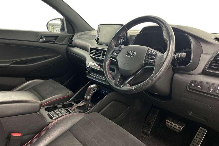 8" touchscreen satellite navigation including traffic messaging channel, map care and live services, Apple car play/Android Auto, Bluetooth system, Cruise control + speed limiter, Digital clock, Drive mode selector, Driver alert system, Emergency stop signalling system, Front and rear parking sensors, Lane keep assist, PAS, Rev counter, Reversing camera, Roll over sensor, Speed limit information, Tailgate open warning light, Trip computer, Trip odometer, Water temperature gauge, Windscreen washer fluid sensor and warning indicator, Wireless phone charging pad, 2 front and 2 rear speakers with 2 tweeters, DAB Digital radio, Steering wheel mounted audio/phone controls, USB and aux connection in front, Adjustable intermittent front windscreen wipers with aero wiper blade, Auto dimming rear view mirror with compass, Automatic defog system, Automatic headlights with dusk sensor, Automatic windscreen wipers with rain sensor, Black door mirrors with integrated indicators, Black outside mirror covers, Black roof rails, Body colour bumpers, Body colour exterior door handles, Electric front/rear windows with drivers one touch/anti-trap, Electrically adjustable, heated and power folding door mirrors, Follow me home headlights, Front fog lights, Grey bodyside mouldings, Halogen projector headlights, Integrated front spoiler, Integrated rear spoiler, LED brake lights, LED daytime running lights, LED rear lights, N Line Badging, N Line Exclusive front and rear bumpers, N Line grille, Positioning Lights - LED, Privacy glass - Rear windows and tailgate, Rear skid plate - Grey, Rear wash/wipe with intermittent wipe setting, Static Cornering lights, Tinted glass with windscreen shade band, Trailer stability assist, Twin exhaust pipes, 12V power outlets in front console and luggage compartment, 60/40 split folding rear seat, Adjustable head restraints, Black headliner, Chrome interior door handles, Cupholders in centre and rear console, Door courtesy lights, Driver and passenger front seat pockets, Driver and passenger sunvisors with illuminated LED vanity mirrors, Driver's seat electric lumbar support, Driver's seat height adjustment, Dual zone climate control, Front and rear door pockets, Front armrest with storage box, Front door pocket bottle holders, Heated front seats, Height/reach adjustable steering column, Illuminated/air conditioned glove compartment, ISOFIX child seat anchorage points attached on outer rear seats, Logo on seat backrests, Luggage area underfloor compartment, Luggage compartment lighting, Luggage cover, Luggage hooks, Luggage net, Manual height adjustable front passenger seat, Map and reading lights, N Line branded gear stick, N Line branded leather steering wheel, N Line Leather/suede upholstery, Reclining rear seats, Red stitching on central pad, Red stitching on steering wheel, Retractable load cover, Sunglasses holder, 3x3 point rear seatbelts, Active bonnet, Anti-lock brake system (ABS), Autonomous emergency braking, Brake assist function, Childproof rear door locks, Downhill brake control, Driver and passenger airbags, Drivers knee airbag, Electronic parking brake, ESP, Front passenger airbag deactivation switch, Front seatbelt pretensioners, Front side airbags + full size curtain airbags, Height adjustable front seatbelts, Hill start assist control (HAC), Seatbelt warning, Traction control, Tyre pressure monitoring system with individual tyre pressure display - TPMS, Vehicle stability management, Deadlocks, Immobiliser, Locking wheel nuts, Perimeter alarm, Remote control central locking, Smart key with keyless entry and engine start/stop button, Speed sensitive auto door locking, 19" Alloy wheels, Tyre repair kit,