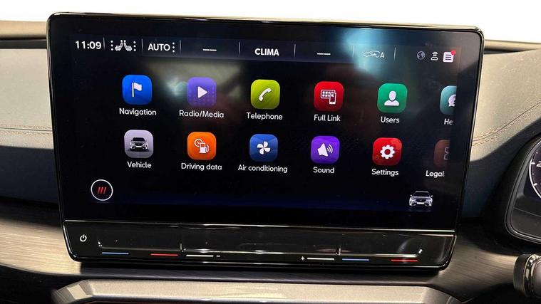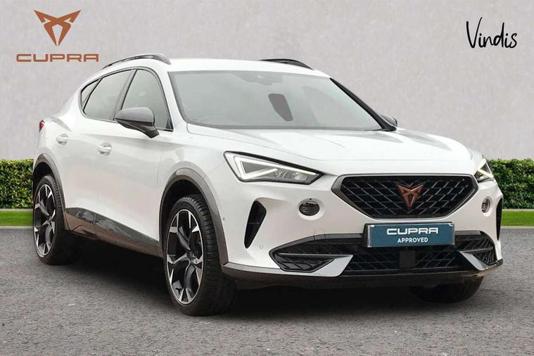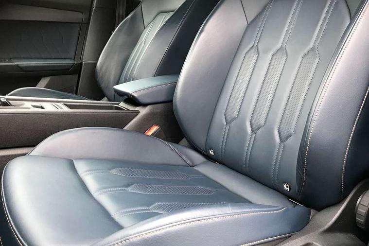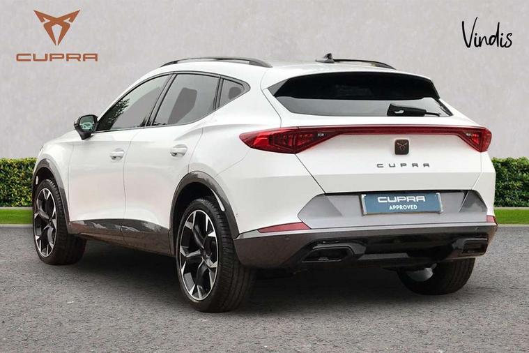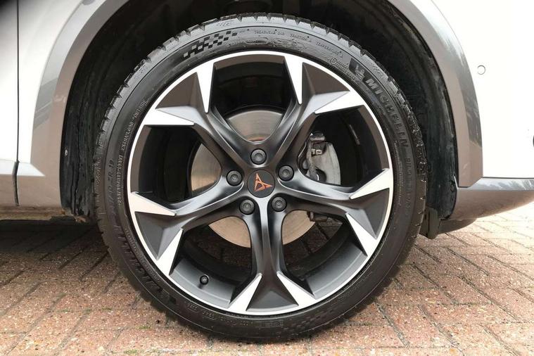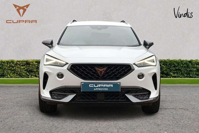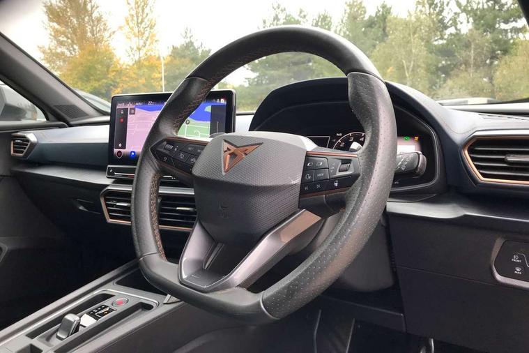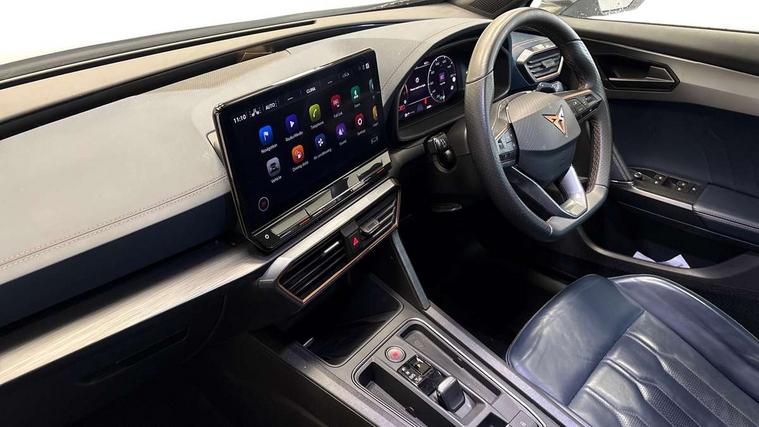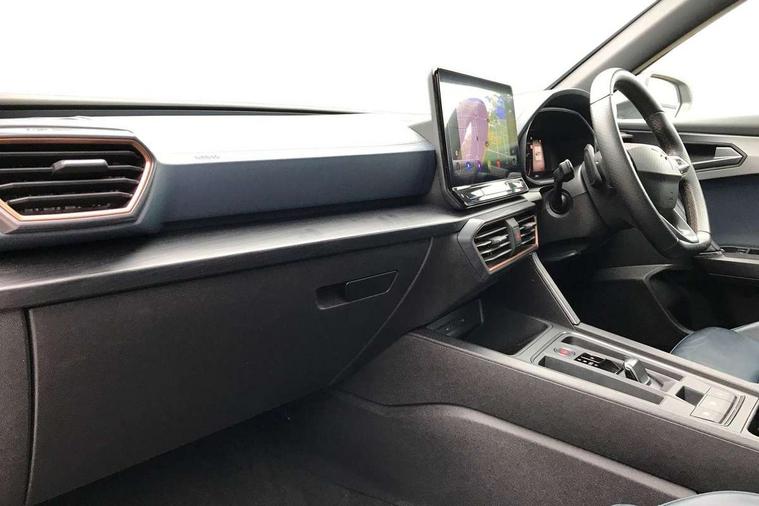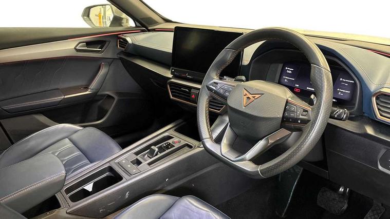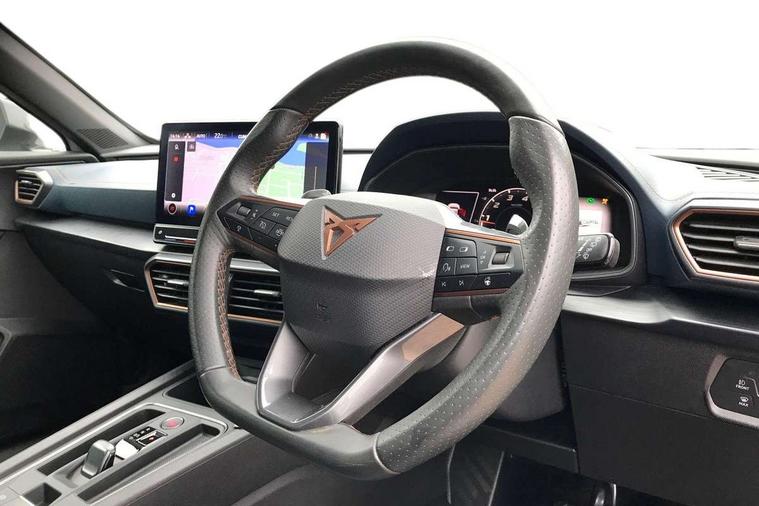 Digital cockpit and configurable dashboard, Driver alert system, Driving profile selection, Forward collision warning with automatic braking, Lane assist, Navigation system with 12'' Touchscreen Display, Park assist (inc front/rear parking sensors), PAS, Predictive adaptive cruise control with speed limiter, Rear view camera, RPM, trip computer, outside temp gauge, instrument light brightness, low fuel warning light, lights on reminder, gearshift indicator, Service interval indicator, Start/stop system with regenerative braking, Voice control system, Wireless apple carplay, Wireless phone charger, Electronic locking differential and dynamic traction support, Standard suspension, 2 front and 2 rear USB type C sockets, Auxiliary input socket, DAB radio, Auto dimming rear view mirror, Body colour door handles, Body coloured bumpers, Dark grey wing mirror, Daytime running light with automatic headlight control and coming home feature, Dynamic headlight range control, Electric front/rear windows, Electrically adjustable heated and folding door mirrors with memory function, Front fog lamps with cornering function, Gloss black roof rails and window surrounds, LED Headlights, LED Taillights with dynamic indicator, Rain sensing wipers, Rear diffuser with black simulated exhaust pipes, Rear side wing doors, Rear wash/wipe, Third brake light, Tinted rear windows, Welcome lights, 12v power supply in centre console, 12V socket, 12v socket in loadspace, 2 front and 2 rear reading lights, 230V socket, 3 seat bench in 2nd row, 60/40 split rear bench seat with armrest and mechanical seat release, Black headlining, Dust/pollen filter, Front and rear head restraints, Front centre armrest, Height/reach adjust steering wheel, Illuminated interior front door sills, Illuminated sunvisor with mirror, Isofix, Leather multi function heated steering wheel with gear shift paddles, Luggage tie-down hooks, Single front passenger seat, Three zone climate control with control panel in rear, Variable luggage/load compartment floor, Wraparound lighting, Genuine Nappa leather Pack - Cupra, 3 point seatbelts on all rear seats, ABS, Brake control system - ESC and brake booster, Child proof door locks, Driver and front passenger airbags with front passenger airbag de-activation, Electronic parking brake, Front and rear disc brakes, Front side curtain airbags, Hill hold control, Public e-call, Seat belt reminder for front and rear seats, Tyre pressure monitoring system, Anti theft alarm system, Keyless entry and start system (KESSY), Locking wheel bolts, Copper and aluminium interior detailing, 19" 'Exclusive' machined sport matte black and silver alloy wheels,