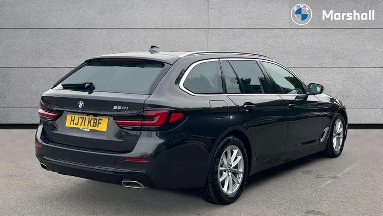 32GB hard disc drive (HDD) memory, Active Guard, BMW Live Cockpit Professional sat nav system with 12.3" instrument display and high resolution control display, BMW Teleservices, Brake pad wear indicator, Driving experience switch, Electric boot lid - electrically opening/closing rear tailgate, Electric Power Steering (EPS) with Servotronic, iDrive touch controller with shortcut buttons, Intelligent emergency call, Multifunctional instrument panel, Oil sensor for level and grade, On board computer inc. average speed, fuel consumption, liquid crystal Info display, journey computer, outside temperature display, personal profile, On-board diagnosis - OBD, Powered by Operating System 7.0, Service interval indicator, Stop/start button, 48V Mild hybrid technology, Drive performance control with ECO PRO comfort + sport mode, Engine cover with twin turbo designation, Petrol Particulate Filter, Steptronic sport transmission with gearshift paddle switches on steering wheel, DAB Digital radio, Favourite buttons, Acoustic glazing, All round anti-corrosion system, Automatic windscreen wipers and automatic headlight, Automatically dimming rear view mirror, Body colour door handles, Body coloured bumpers, Chrome exterior trim in kidney grille, air breather, window surround and window recess cover, Door handle illumination, Dynamic brake lights with LED technology, Electric front and rear windows with fingertip open/close + anti-trap facility and comfort closing function, Electrically adjustable and heated exterior mirrors includes integrated direction indicators and automatic parking function, Folding exterior side mirror with auto- dimming, Follow me home headlight function, Heated windscreen washer jets, High gloss black active air stream kidney grille, Independent opening for tailgate window, LED daytime running lights, LED third brake light, Matt silver roof rails, Trapezoidal visible exhaust tailpipes, 12V power socket in front and rear, 40/20/40 split folding rear seats with additional mechanism in luggage compartment, Armrest - front and rear integrated door trim, centre console includes storage compartment, rear centre includes 2 cupholders, Child seat ISOFIX attachment with rear outer seats includes top tether, Cup holders (2 front and 2 rear), Door sill finishers with BMW designation, Driver and front passenger lumbar support, Front and rear footwell lights, Front reading lights, Height and length adjustable steering column and activation via lateral lever on the steering column, Lockable glove compartment with light, Multifunction controls for leather steering wheel, Rear headrests, Retractable luggage compartment dividing net, Three spoke sport leather steering wheel, Velour floor mats, Ambient lighting pack - 5 Series, Connected package professional - 5 Series, Parking assistant pack - 5 Series, Airbags - driver/front passenger, rear and side, first and second row seats head airbags, front passenger seat airbag deactivation, Anti-lock braking system (ABS), Automatic Stability Control (ASC), Brake assist function, Brake energy regeneration, Cornering brake control (CBC), Crash sensor activating central locking release, hazard warning lights, fuel cut off and interior lighting, Deformation zones - front and rear with door reinforcements and bumpers up to 2.5 mph, DSC - Dynamic Stability Control, Dynamic brake control, Dynamic Traction Control - DTC, Electromechanical parking brake with automatic drive away release and auto hold function, Electronic brake force distribution, Engine drag torque control, Front and rear brake discs with interior ventilation, Front head restraints with anti-whiplash, Hill start assist, Mechanical child proof lock on rear doors, Passive protection for pedestrians, Side impact protection, Three point seat belts for all four seats, Two tone horn, Tyre pressure indicator, Warning triangle and first aid kit, Alarm system (Thatcham 1) with remote control and electronic engine immobiliser, Locking wheel bolts, Tyre repair kit,