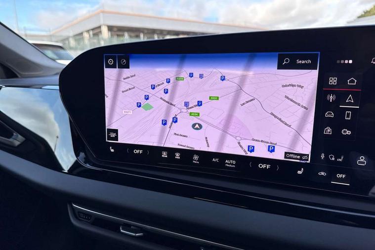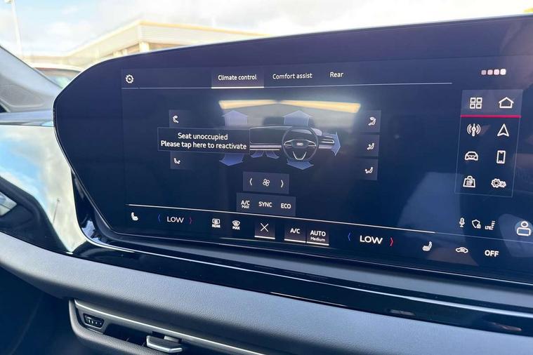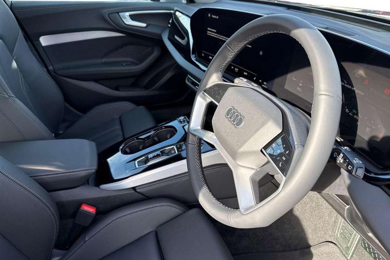 Adaptive cruise control, Advanced driver attention and fatigue montior, Audi application store, Audi assistant, Audi connect emergency call and service, Audi drive select, Audi smartphone interface, Audi virtual cockpit plus with 11.9" OLED colour display, Automatic start/stop system with coasting functionality, Camera based traffic sign recognition, Intersection assist, Lane departure warning, MMI navigation plus with high resolution 14.5" OLED touchscreen colour display, Park assist plus, Parking system plus with 360 display, Progressive steering with servotronic, Rear view camera, Swerve assist and turn assist, Traffic sign based speed limiter, Comfort suspension, 2 USB-C ports in both the front and rear, Audi sound system impressive sound with 10 loudspeakers including centre speaker and subwoofer, 6-channel amplifier with a total output of 180 watts, DAB digital radio reception, Smartphone compartment with wireless charging, Aluminium roof rails, Aluminium window trims, Auto dimming rear view mirror, Body colour door mirrors, Door mirrors - electrically adjustable, heated, folding and auto dimming on both sides, Front and rear electric windows, Front door sill trims with aluminium inlays, illuminated, High beam assist, LED headlights Plus incl. digital daytime running lights, turning light, all-weather light, motorway light, manouevring light and intersection light, LED rear lights pro incl. dynamic rear indicators and illuminated light strip with animated coming and leaving home function, LED third brake light, Rear and side windows with heat insulating glass, Rear side wing doors, Rear wash/wipe, Sport bumpers, radiator grille and diffuser in scandium grey and diffuser insert in matt selenite silver, White rhombus logo projection light in exterior mirrors, Windscreen with acoustic glazing, 3 rear headrests, 3 seat rear bench, 3-zone automatic climate control, 40:20:40 split folding rear seat bench with centre armrest and cup holders, Comfort front centre armrest, Front and rear floor mats, Front seats with manual adjustment for position and 4-way electric lumbar support, Front sport seats with integrated head reastrains, Heated front seats, i-Size child seat mounting on the front passenger side and outer rear seats, i-Size and top tether on the outer rear seats, Luggage compartment lid, electrically opening and closing, Manual steering column height and depth adjustment, Rock grey cloth headlining, Single front passenger seat, Twin leather upholstery, Twin spoke leather steering wheel with multi-function buttons with touch control, shift paddles and trim in chrome look, Ambient lighting package plus - A5, 3x3 point rear seat belts, Driver airbag, Electric child safety locks, First aid kit with warning triangle and vests, Front emergency brake assist, Front passenger airbag, Front passenger airbag deactivation, Front side airbags with head airbag system and front interaction airbag, Hill hold assist, Seat belt monitoring with rear seat occupant reminder, Tyre pressure loss indicator, Anti theft alarm, Anti-theft wheel bolts, Keyless Go, Accent surfaces and control buttons in gloss black, Black dashboard with contrast stitching, Inlays in matt brushed aluminium, silver, Softwrap in leatherette with contrast stitching, Upper and lower interior elements in leatherette, Tyre repair kit,