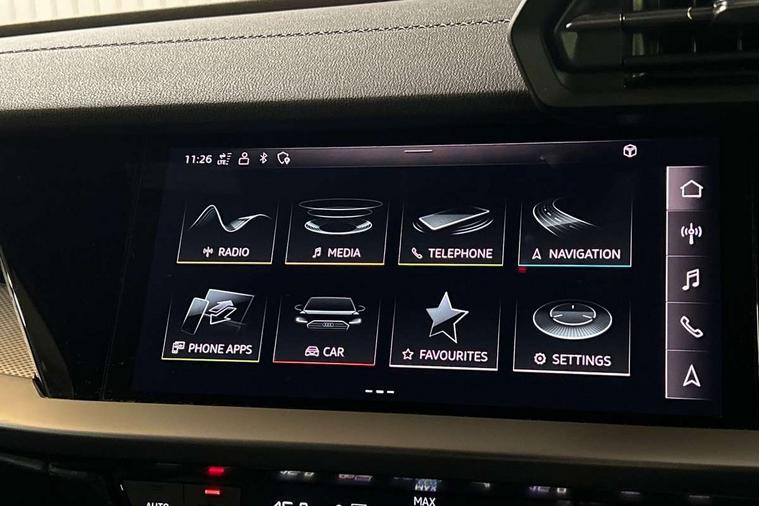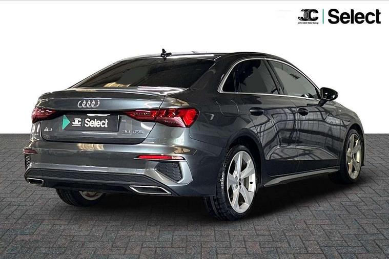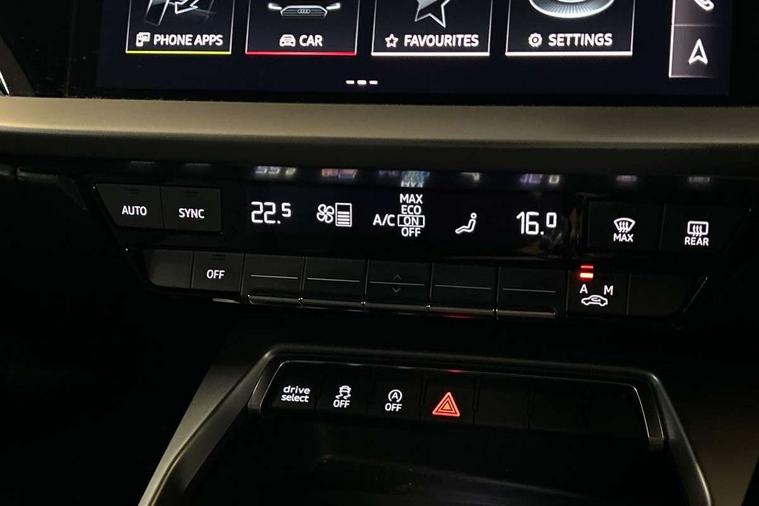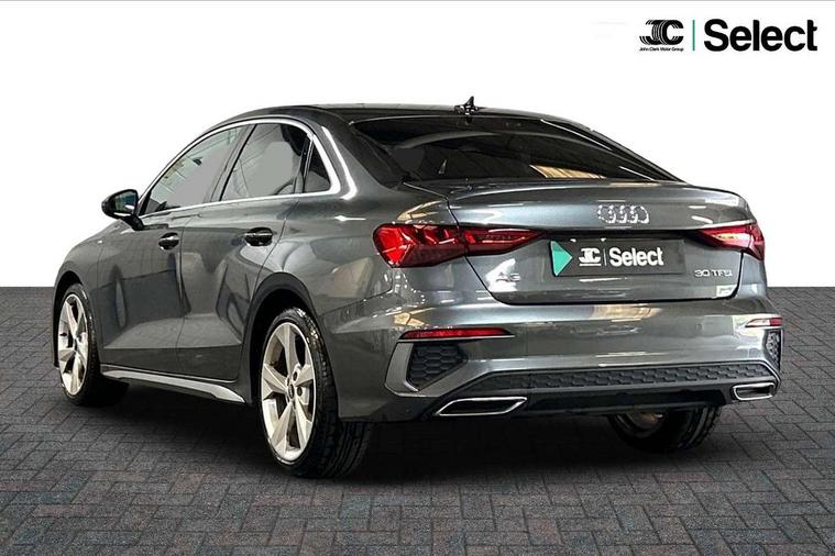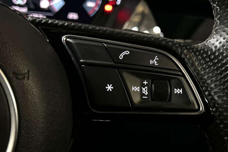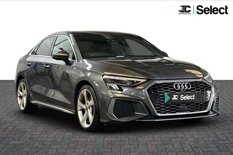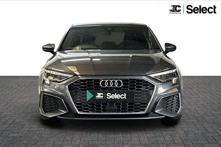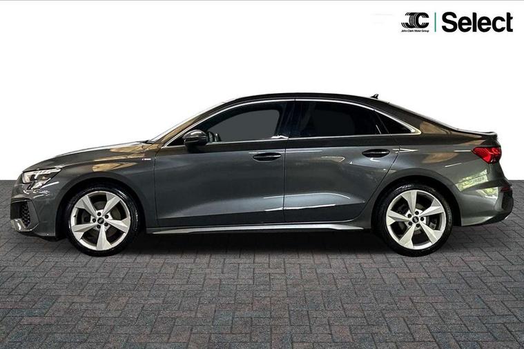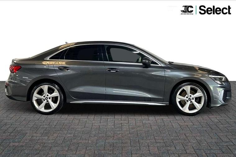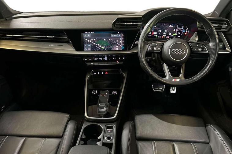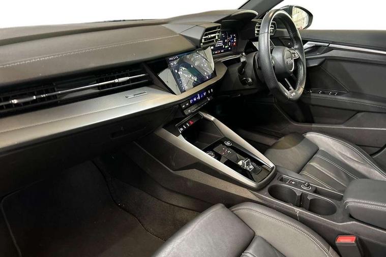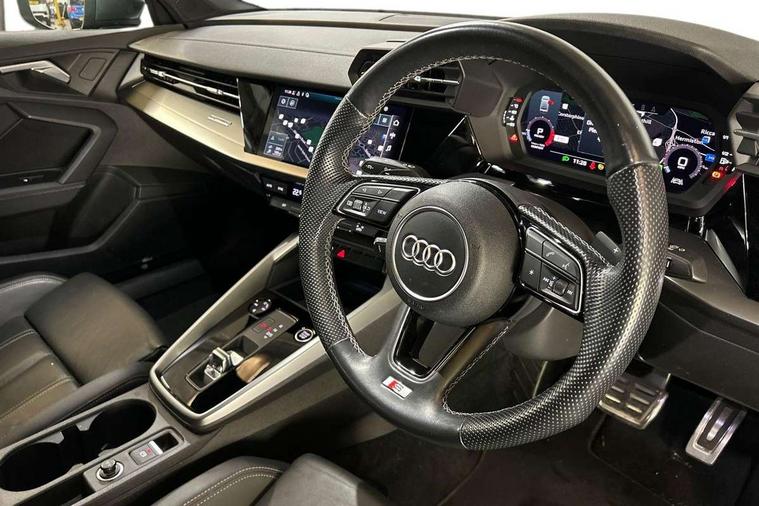 Audi connect emergency call and service, Audi drive select (Auto, Comfort, Dynamic and Individual), Audi smartphone interface, Audi Virtual Cockpit - 10.25" digital and colour instrument cluster, Automatic start/stop system with recuperation, Bluetooth interface, Collision avoidance assistant, Electromechanical power speed sensitive steering, Lane departure warning system, MMI Navigation Plus with high resolution 10.1" colour touch screen display, Service indicator, Voice control system with natural language interaction, 2x USB Type C ports (for charging and data transfer), 6 passive loudspeakers, CD player, DAB Digital radio, 3rd brake light, Acoustic glass windscreen, Aluminium window trim, Auto dimming frameless rear view mirror, Electrically adjustable/heated/folding/dimming door mirrors with kerb view includes integrated LED indications + kerb view function for passenger side, Front electric windows, Illuminated door sills with aluminium inserts at the front with S logo, LED daytime running lights, LED headlights with LED rear lights and dynamic rear indicators, Light and rain sensors, Model and engine designation badges at rear, Privacy glass - dark tinted rear window, rear door and side windows, Rear electric windows, S line bumpers, S roof spoiler, 12V socket and storage compartment in front centre console, 40/20/40 split folding rear seat bench with cupholder, Black cloth headlining, Dual zone electronic climate control, Front and rear centre armrest in leather, Front and rear headrests, Front/rear floor mats, Height and reach adjustable steering wheel, Interior lighting - glove compartment light and right hand side, Luggage compartment floor covering, Manual boot compartment lid, Manually adjustable front sport seats, Seat side bolsters, Stainless steel pedals and front footrest, Twin leather upholstery with front sports seats S embossed logo, Aluminium interior elements pack - A3 Saloon, S line styling pack - A3 Saloon, 3x3 point rear seat belts, Driver and front passenger airbag with passenger airbag deactivation, Electronic Stabilisation Control (ESC) including ABS, ASR and EDL, First aid kit with warning triangle and 2 safety vests, Front side airbags with head airbags and interaction airbag, Hill hold assist, Pre-sense front with pedestrian and cyclist detection, Seatbelt monitoring, Tyre pressure loss indicator, Anti theft alarm, Anti-theft wheel bolts, Electronically operated child lock, Immobiliser, Remote control central locking, Aluminium air vent surrounds, Aluminium trim elements, Dark spectrum aluminium inlays, accent surfaces in the dashboard and centre console in platinum grey silk effect paint finish,