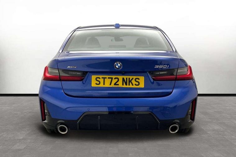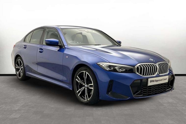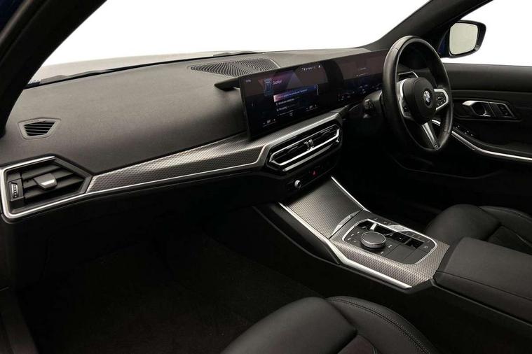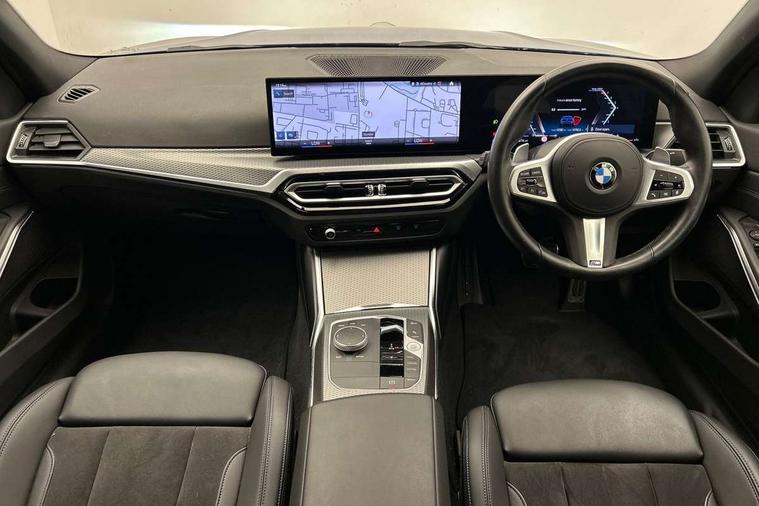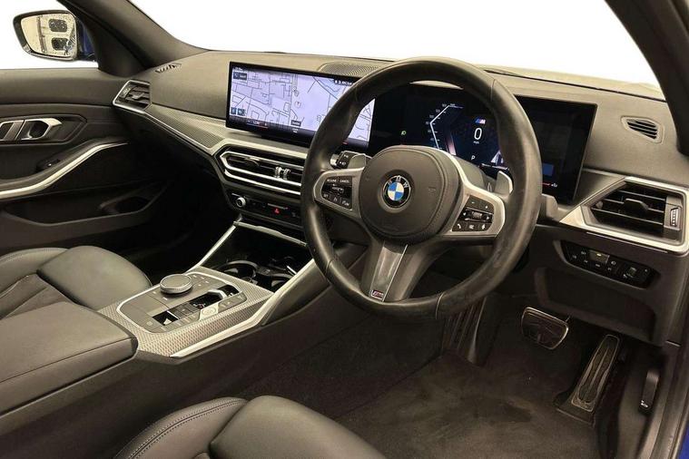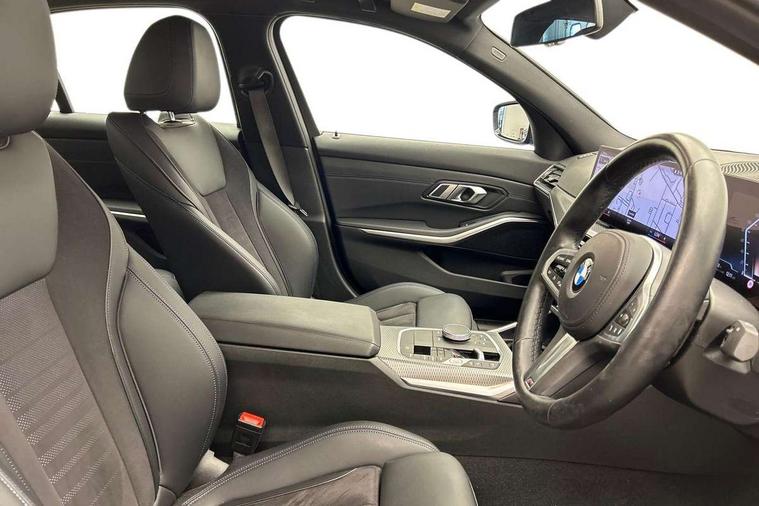 Active guard plus, Attentiveness assist, Automatic Start/stop button, BMW iDrive, BMW Teleservices, Condition based service, ConnectedDrive Services, Driving experience switch, Live cockpit plus with Navigation + 12.3" instrument display + 14.9" display, Intelligent voice assist, 2 USB, 4G LTE connect, Oil sensor for level and grade, Preparation for driver assistance, Shifting point display, Smartphone integration, Variable sport steering, Double joint spring strut front axle, Fuel tank breather system, M sport suspension, Sport automatic transmission with steering-wheel mounted gearshift paddles and launch control, DAB tuner, 3rd brake light, Acoustic glazing, Auto dimming rear view mirror, Automatic headlight beam throw control with load dependent regulating reaction, dynamic compensation of braking dive and acceleration squat, BMW emblem, engine compartment lid and tailgate, Body colour roof fin, Door sill strips, Electric windows - front and rear, with open/close fingertip control, anti-trap facility and comfort closing, Follow me home headlight function, Front and rear bumper system with replaceable deformation elements, Front apron plastic in body colour, Fuel filler flap - right rear in body colour, Heated washer jets, Illuminated bow type door handles in body colour drivers side with door lock, Interior rear view electrochromatic mirror with automatic anti dazzle function, LED headlights with LED daytime running lights and LED turn indicator, LED rear lights, Licence plate panel integrated into front bumper and tailgate, Matt black B-pillar finsher, Matt black window recess cover, Model designation on right side of tailgate, One piece front bumper cover including towing eye cover in body colour, Rain sensor with automatic headlight activation, Rear boot, Rear side wing doors, Reversing lights, Side frame decorative moulding black matt, Visible exhaust tailpipe finisher, Welcome lights in interior and door handle area, 12V power socket in front storage compartment, 2 front cupholder in centre console with clamping elements and matt black inlay, 3 seat bench in 2nd row, 3 zone automatic air conditioning, 40:20:40 split folding rear seat with loading system, Anthracite headlining, Armrest integrated in front and rear door trim + front centre console armrest, BMW ID, Driver backrest width adjustment, Folding rear centre armrest with 2 cupholders, Front and rear door exit lighting (left / right), Front and rear footwell lighting, Front and rear headrests, Front and rear reading lights, Front and rear velour floor mats, Front sport seats, Heated front seats, Height adjustable mechanically and infinitely variable steering column, Illuminated armrest storage compartment, Illuminated glove compartment, Illuminated luggage compartment, Lashing eyelets in luggage compartment, LED ambient lighting with welcome carpet light, M Sport multifunction leather steering wheel, Make-up mirror lights, Single front passenger seat, Standard seat for driver and passenger with manual adjustment, Sunvisors with vanity mirrors and ticket pocket, Toolkit located in luggage compartment, Connected pack professional - 3 Series Saloon/Touring, Interior and exterior mirror pack - 3 Series Touring/Saloon, M Aerodynamics package - 3 Series Saloon/Touring, M sport exterior styling pack - 3 Series Saloon/Touring, Storage compartment pack - 3 Series Saloon/Touring, 3x3 point rear seatbelts, BMW emergency call, Child locks on rear doors, Crash sensor activating of airbags, Unlocking doors, hazard warning lights, fuel cut off, interior lighting+activation of safety battery terminal clamp, Driver and front passenger with seat occupancy detection for driver's and passenger side, Driver and passenger side airbags, body protection at side and airbags deploy from seat backrests, Dynamic brake control, Dynamic stability control + (DSC+) - Anti-lock Braking System (ABS) with brake assist and cornering brake control + Automatic Stability Control (ASC), Dynamic Traction Control - DTC, Electric parking brake including automatic hold function and automatic release of the parking brake when driving off, Electronic differential lock control (EDLC), Head airbags in 1st and 2nd row, head protection at side, curtain airbags open from headliner above 1st and 2nd row, Plastic fuel tank, Side impact protection, Tyre pressure monitoring with three level warning strategy, Ventilated front and rear disc brakes, Warning triangle and first aid kit, Alarm system, Centre lock switch, Closing system with central locking, Electronic vehicle immobiliser,