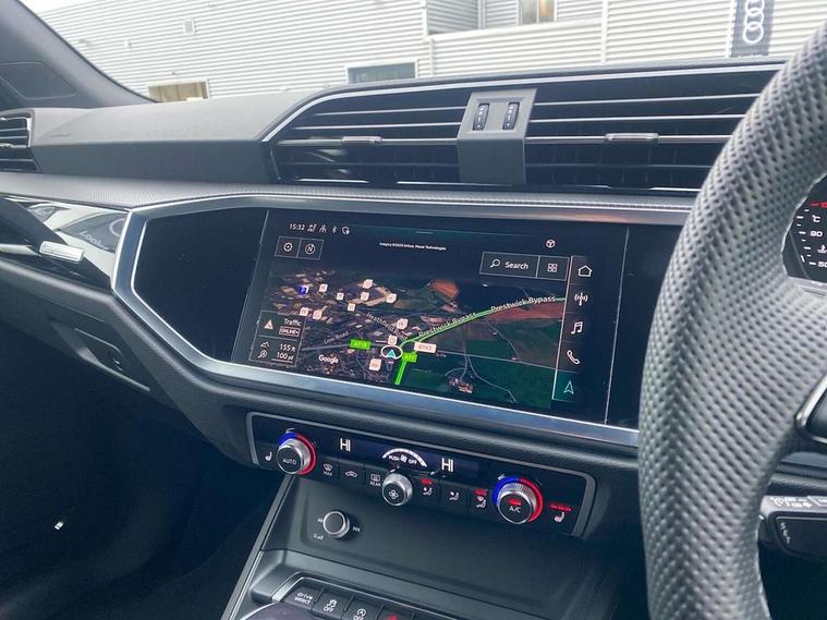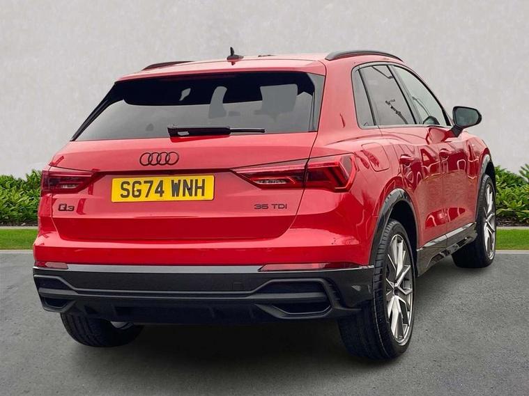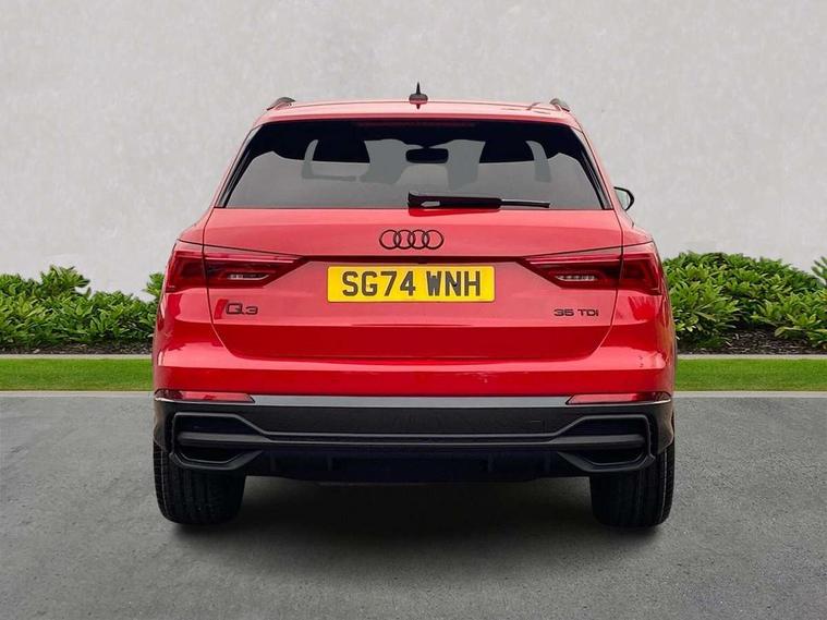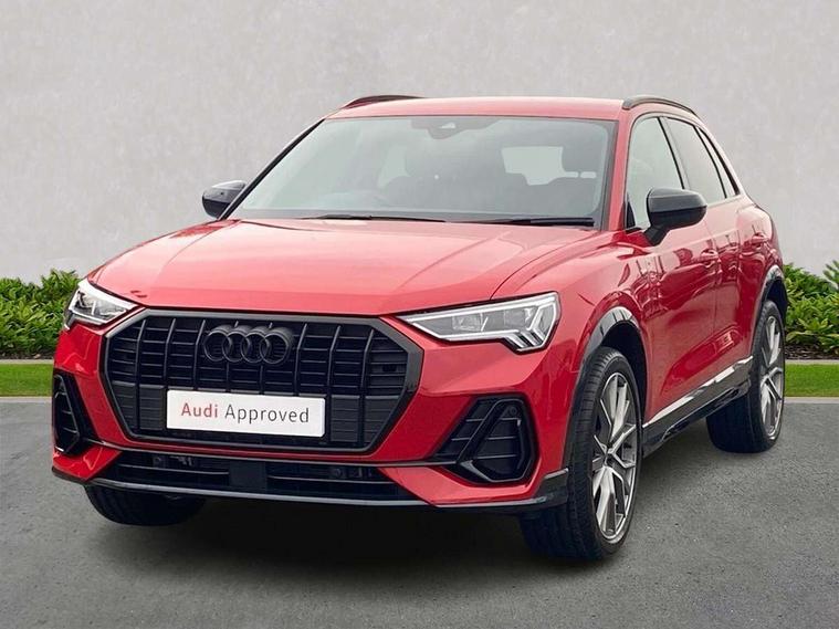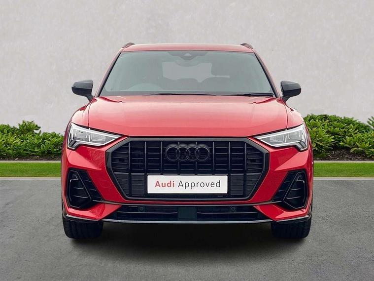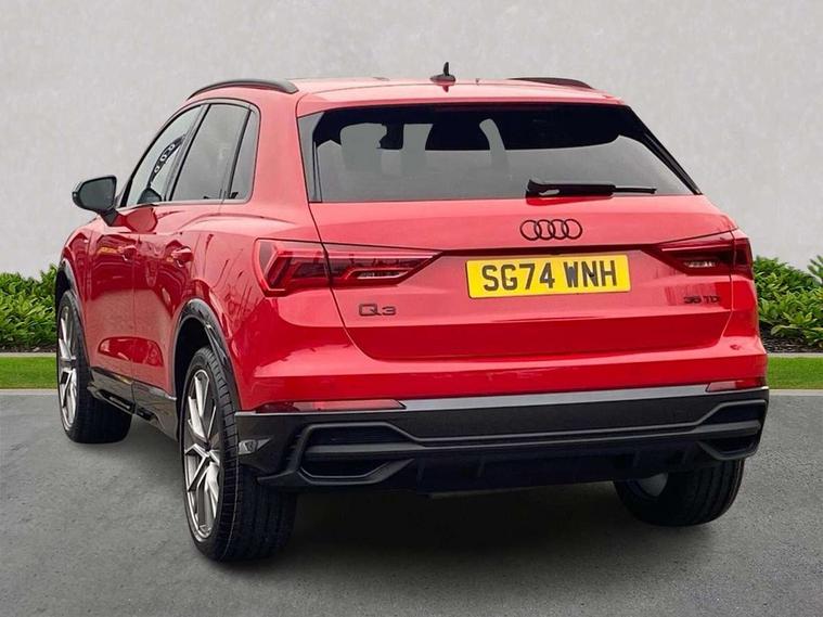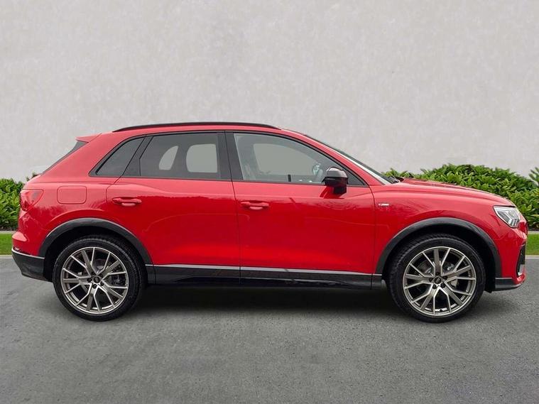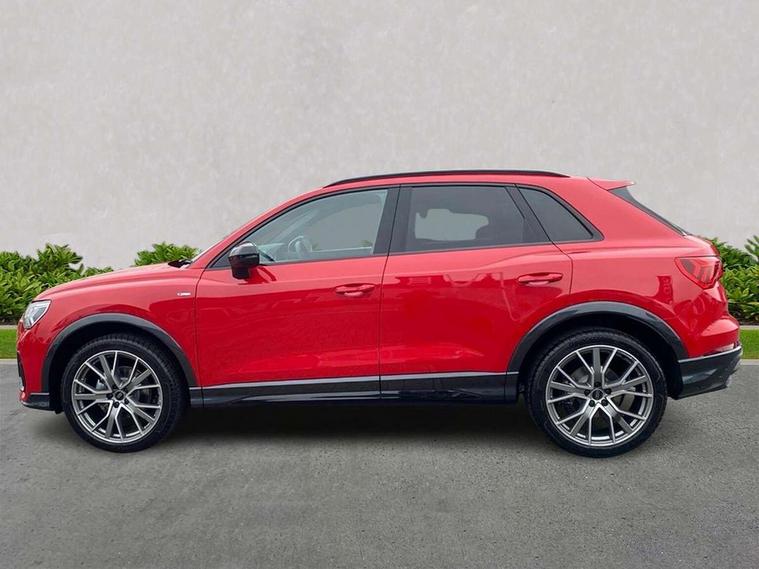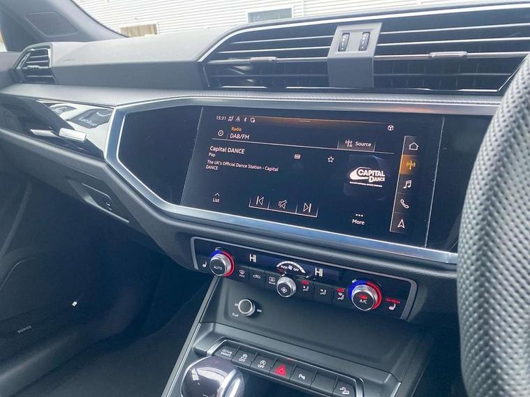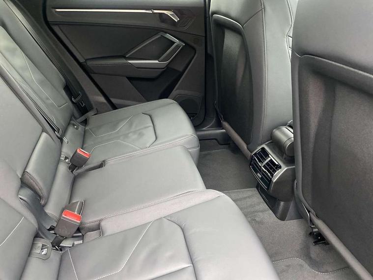 Amazon alexa Integration, Audi connect safety and service, Audi drive select, Audi lane departure warning, Audi Virtual Cockpit - 10.25" display, Bluetooth interface, Camera based traffic sign recognition, Distraction and Fatigue warning, Legal emergency call, MMI Navigation Plus with high resolution 10.1 inch touchscreen colour display, Power operated tailgate, Progressive steering, Service interval indicator, Smartphone interface includes wireless Apple carplay/Android Auto, Start stop system with recuperation, Voice control system with natural language interaction, Diesel particulate filter, Sports suspension, 2 USB-C ports with charge and data functions, 6 passive loudspeakers, DAB digital radio module, Acoustic windscreen, Audi Beam uses LEDs to project the Audi logo onto the ground as you exit your Q3, Auto dimming door mirrors, Auto dimming frameless rear view mirror, Black roof rails, Electrically folding, adjustable and heated door mirrors with integrated LED side indicators and kerb view function for passenger side, Front and rear electric windows, Front fog lights, Grille vertical bars in aluminium silver/Matt, High gloss black finish B and C pillars, LED Dynamic rear indicators, LED headlights with LED daytime running lights, LED rear lights, LED third brake light, Privacy glass dark tinted rear and rear-side windows (from B-pillar backwards), Rain and light sensors, Rear diffuser grille in grained matt black, Rear diffuser strip in matt anthracite black, Rear side wing doors, Rear wiper, S line bumpers in contrasting Manhattan grey, Variable front intermittent wipers, 12V socket in rear centre console, 3 seat bench in 2nd row, 40:20:40 folding with manual adjustment for 60:40 forwards/backwards position and backrest angle, Adjustable rear seat bench/backrest with centre armrest and cupholder, Black cloth headlining, Dual zone electronic climate control, Electric lumbar support, Front and rear black floor mats with contrast stitching in rock grey, Front and rear headrests, Front centre armrest, Height and reach adjustable steering wheel, Illuminated door sill trims with S logo, ISOFIX child seat mounting for front passenger with airbag deactivation and outer rear seat including top tether attachment point for outer rear seats, Manual front seats with height adjustment, Perforated leather gearknob, Single front passenger seat, Stainless steel luggage compartment sill finisher, Stainless steel pedals, Twin leather upholstery with front sport seats + S embossing, Black styling pack - Q3, Non smoking pack - Q3, 3x3 point rear seatbelts, 6 airbags - Driver, front passenger, curtain and side windows, Audi pre-sense front with pedestrain and cyclist recognition, Electrically operated child locks on rear doors, Electromechanical parking brake, Electronic stabilisation control including ABS, ASR and EDL, Front seatbelt reminder, Hill descent control, Hill hold assist, Pre sense basic, Seatbelt monitoring, Tyre pressure warning, Warning triangle and first aid kit, Anti theft alarm, Anti theft wheel bolts, Immobiliser, Remote central locking, Aluminium look interior elements, Detail dashboard around MMI touch colour display in glass look, black with surround in aluminium look, Leatherette door armrest, Piano black inlay,