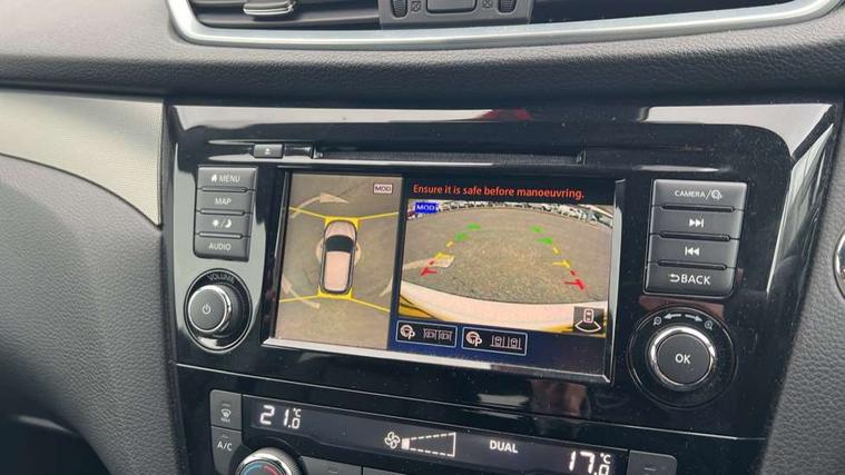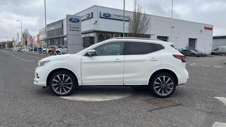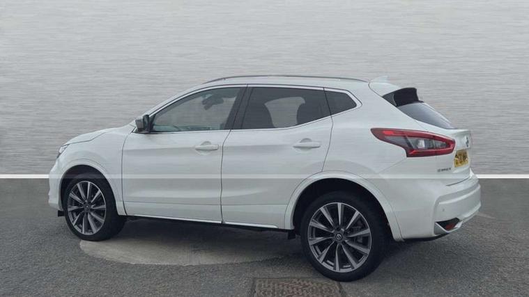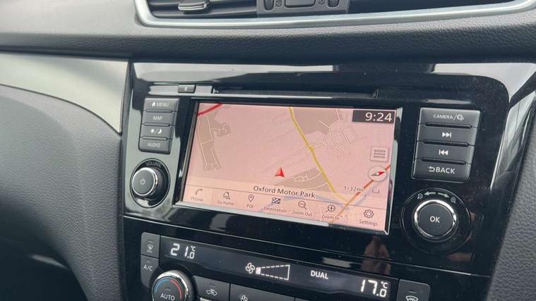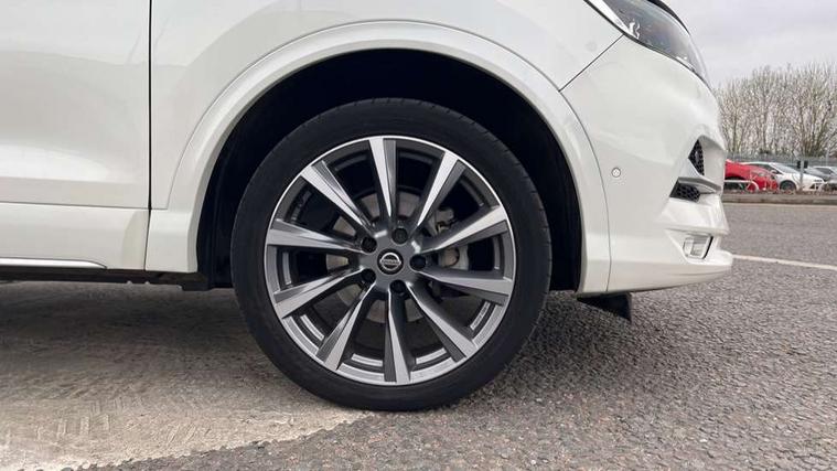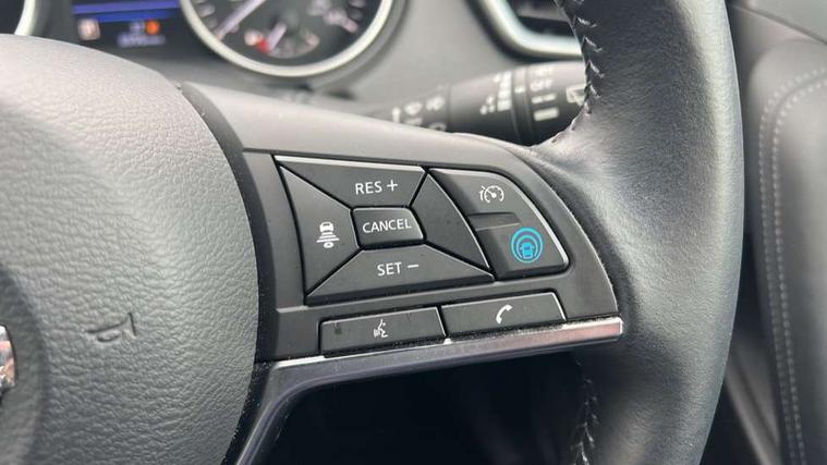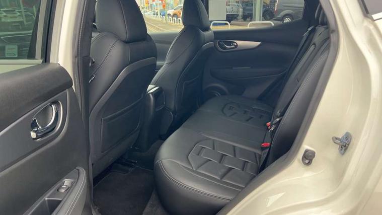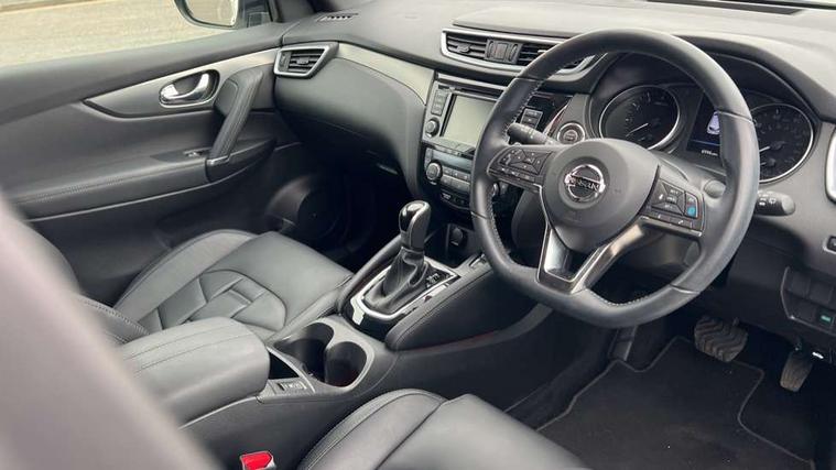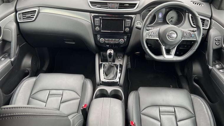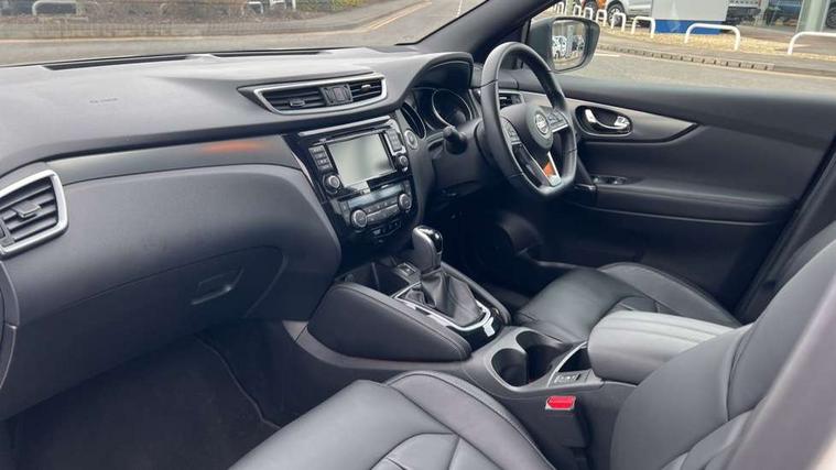 Carbon graphite dash trim, Heat package - Qashqai, ProPilot pack - Qashqai, Safety shield plus pack - Qashqai, Tyre puncture repair kit, Anti-theft immobiliser, Intelligent Key, Remote central locking, Thatcham Cat.1 alarm, AM/FM radio, CD audio system, Aux-in socket, Bose premium 8 speaker system, DAB Digital radio, Rear USB connection, Steering wheel mounted audio controls, USB port, 6 airbags - Driver, front passenger, curtain and side airbags, ABS, ESP, EBD and brake assist, Auto hold function, Child locks on rear doors, Electronic parking brake, Front and rear seat belt warning, Front passenger airbag deactivation, Height adjustable front seatbelts, Hill start assist, Intelligent emergency braking with pedestrian recognition, Three 3 point rear seatbelts, Tyre pressure monitoring system, Anti dazzle rear view mirror, Auto wipers, Body coloured door handles, Chrome window surround, Daytime running lights dip function when turn signal applied, Electric folding door mirrors, Electric front and rear windows with one touch illuminated window controls, Electric front/rear windows, Electrically adjustable door mirrors, Front fog lights, Front/rear full painted bumper/side silver finisher, Gloss silver door mirror caps, Halogen headlights, Heated door mirrors, High beam assist, Intelligent auto headlights, LED indicators in door mirrors, Matt silver roof rails, One touch 4x auto windows with illuminated switches, Panoramic sunroof with one touch shade, Privacy glass, Rear roof spoiler, Rear wiper with reverse link, Shark fin antenna, Underbody vortex generators, 2 X front 12v power sockets, 3 height adjustable rear headrests, 60/40 split folding rear seat, Ambient lighting, Ambient lighting in centre console, Boot lighting, Centre console storage box/armrest, Chrome interior door handles, Configurable luggage board system, Dark headlining, Dual zone climate control, Electric 4-way lumbar support for drivers seat, Electrically adjustable driver seat, Electrically adjustable passenger seat, Front and rear door pockets with bottle holders, Front and rear seat belt pre-tensioners with load limiters, Height adjustable front headrests, Individual rear seat reading lights, ISOFIX restraints on outer rear seats x2, Leather D shaped steering wheel, Leather gear lever, Leather knee pad, Manual lumbar support on passenger seat, Map reading lamp, Memory for drivers seat/door mirrors, Monoform front seats with plastic backboard, One touch electric shade, Parcel shelf stow function under luggage board, Pollen filter, Rear armrest with 2 cupholders, Synthetic leather wrapped door handle with contrasting stitching, Tilt/telescopic adjustable steering wheel, Advanced drive assist display 5'' TFT coloured screen, Android Auto, Apple CarPlay preparation, Bluetooth connectivity, Electric speed sensitive power steering, Front parking sensors, Intelligent around view monitor, Intelligent parking assist, Lane departure warning system, Nissan connect evo 7" touchscreen navigation and entertainment system, Normal or sport selectable steering, Outside temperature sensor, Push button starter, Rear parking sensors, Rear view camera, Service interval indicator, Smartphone integration, Stop/start system, Tomtom connected services, Traffic sign recognition, Trip computer, Voice control system, Nissan chassis control (intelligent ride control, intelligent trace control, intelligent engine brake),