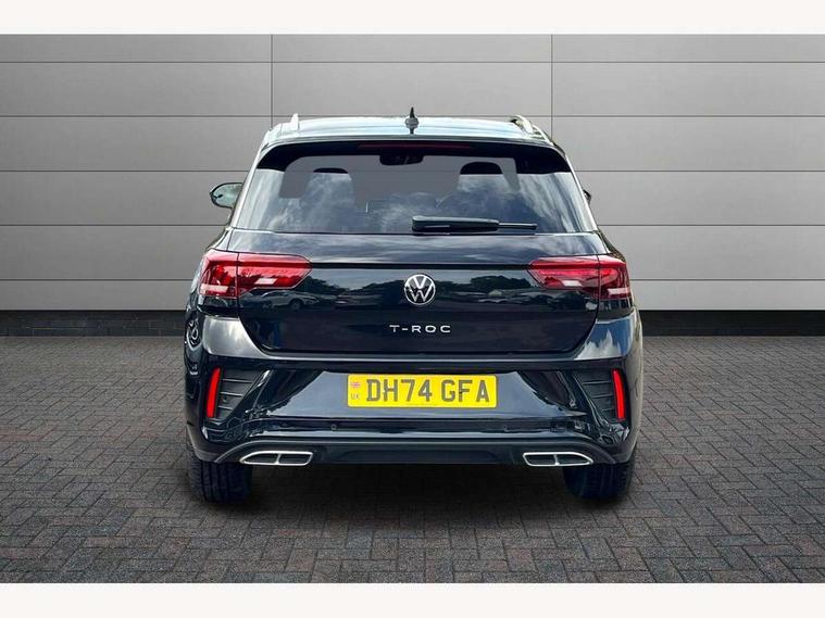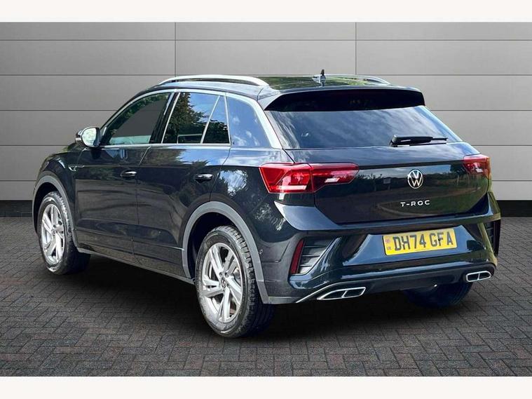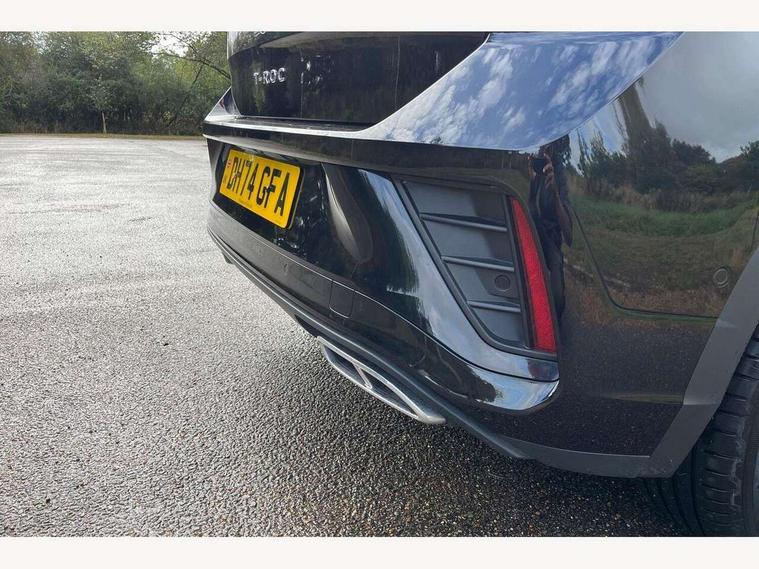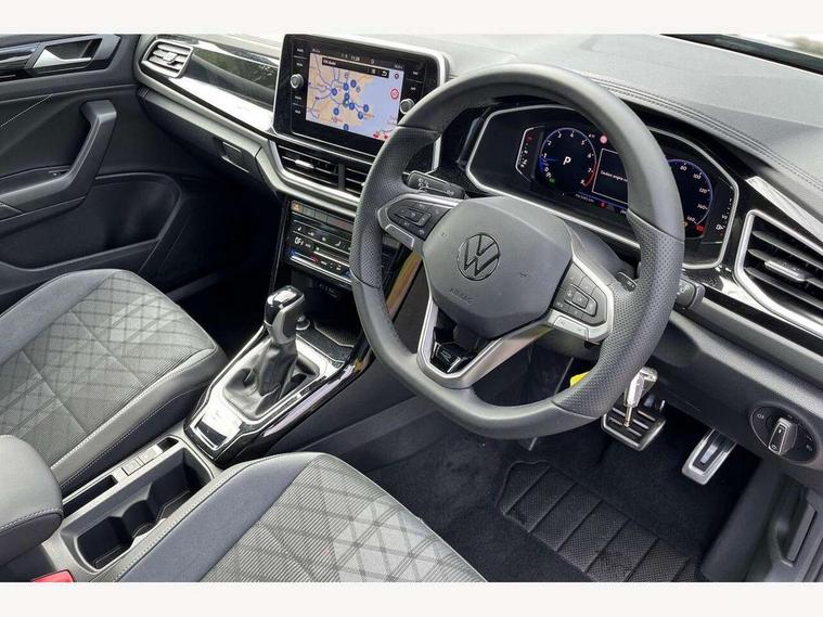 10.25" Digital cockpit pro, Advanced driver attention and drowsiness monitor, Emergency call service, Lane keeping system Lane Assist, Mobile phone interface, Modified key software - reduce switch off time for key status change to Long no motion, Online services, Park assist including front and rear parking sensors, Service interval indicator, Tailgate/trunk lid release from outside, Think blue trainer driver tips and journey analysis, Warning sound and light for front seatbelts unfastened, Wireless app connect, Battery regeneration during braking, Start/stop function with battery regeneration, DAB Digital radio, Diversity antenna for FM reception, Front and rear 6 speakers, Music playback - MP3, WMA and AAC files, Premium USB cable in choice of either Apple or Android smartphone compatibility, SD card slot, Simultaneous pairing of 2 compatible mobile devices, Title and cover art display, We Connect and We Connect Plus functionality, Auto dimming interior rear view mirror, Automatic hazard lights activation under emergency braking, Automatic headlight control with LED separate daytime running lights with coming/leaving home function, Body coloured exterior mirror housings and door handles, Electrically adjustable and heated door mirrors, Extended roof spoiler, Exterior mirrors aspherical on driver side, convex on front passenger side, External USB type C socket and charging sockets, Front windscreen wiper with intermittent wipe and 4 position delay, Heated rear window, LED 3rd brake light, LED rear combination lamps, LED rear number plate lights, Power windows with comfort operation and circuit breaker, Privacy glass for rear side windows and rear window, R-Line design body coloured bumpers, Rain sensor, Rear exhaust tailpipe, Rear fog light on one side and reversing lights on both sides, Rear side wing doors, Rear wash/wipe with intermittent wipe setting, Remote electrically foldable door mirrors, puddle lights and reverse activated passenger's door mirror, 12V power socket in centre console, 3 rear head restraints, 3 seat bench in 2nd row, 4 load lashing points in luggage compartment, Air care climatronic air conditoning system with active combination filter and 2-zone temperature control, Black roof lining, Chrome plated decorative trims, Chrome plated radiator grille inserts, air vent surrounds and light switch surrounds, Door and side trim panel with leatherette insert, Front + rear carpet mats, Front centre armrest, Front cupholders x 2, Front footwell illumination, Front reading light, Front scuff plates with R Line logo, Front seat back storage pockets, Glove compartment door with light, Instrument lighting, white adjustable panel illumination, Interior ambient lighting and surround lighting, Interior light delay, Isofix child seat preparation, Leather gearshift handle, Load-through provision with cup holder when folded down ('Unsplit rear seat bench, split folding backrest, with centre armrest), Luggage compartment lighting, Single front passenger seat, Stainless steel pedals, Storage compartment in left and right luggage area, Storage compartment in rear doors, Storage compartments in driver and front passenger doors, Sunvisors with illuminated vanity mirrors, Variable boot floor, height adjustable and removable, Driver assistance pack without proactive passenger protection - T-Roc, 3 point height adj front seatbelts + pretensioners, 3 point seatbelts in outer rear with ECE label, ABS, Child locks on rear doors, City emergency braking and pedestrian monitoring, Driver and front passenger airbag with front passenger airbag deactivation, Driver and front passenger safety-optimised head restraints, Drivers seatbelt reminder, Electronic parking brake, Electronic Stability Control (ESC) inc EDL (Electronic Differential Lock) and ASR (Traction Control), Front and rear passengers curtain airbag system including front side airbags, Hill start assist, Predictive pedestrian protection, Rear disc brakes, Two tone horn, Tyre pressure loss indicator, Volkswagen roadside assistance, Piano black decorative inserts in dashboard and front door trim panels, Trims for alloy wheels,