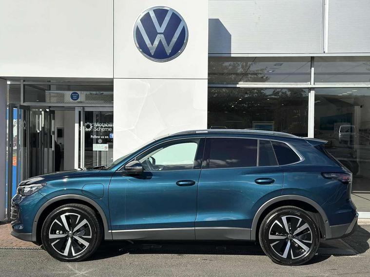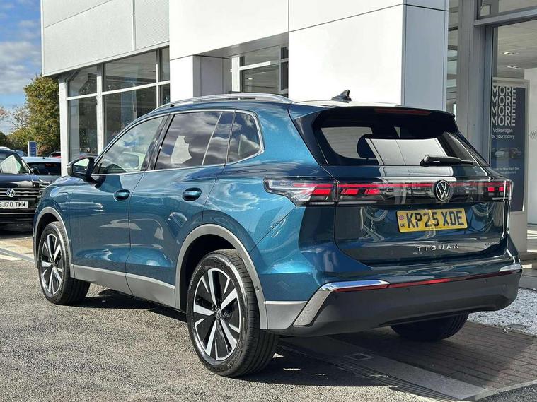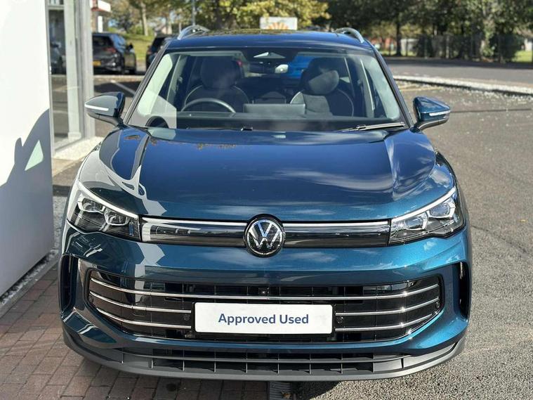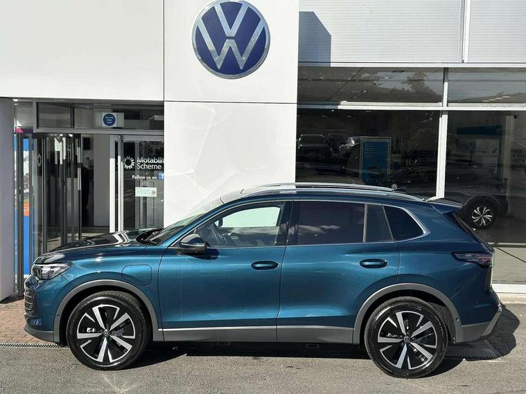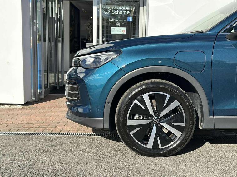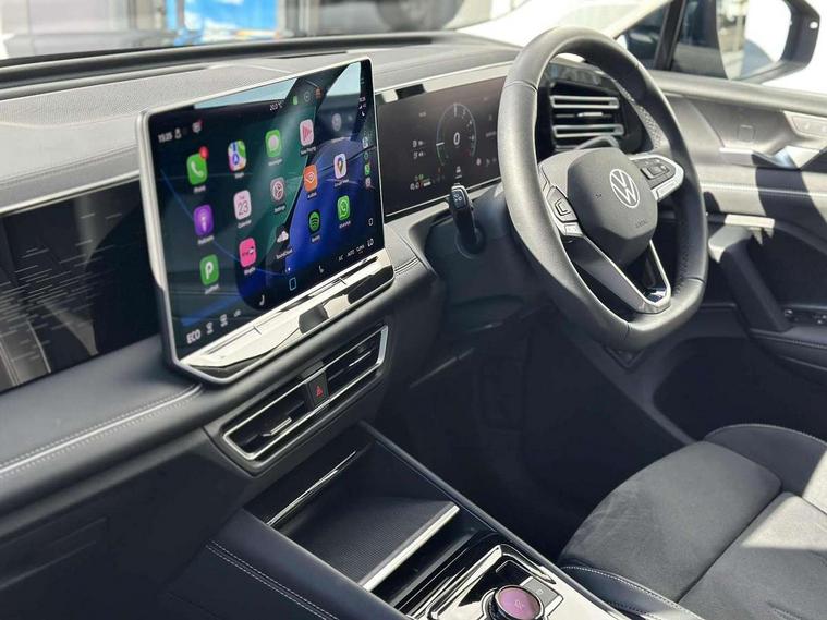 Adaptive cruise control (ACC), Advanced driver attention and drowsiness monitor, Bluetooth mobile phone interface, Car2X technology, Comfort drive travel assist, lane keeping system, lane assist and emergency assist, Digital Cockpit Pro - 10.25" high resolution dash display screen with customisable menus and information, Dynamic road sign display, E-Sim card for online connectivity, eCall emergency call service, Front Assist - Autonomous emergency braking with pedestrian and cyclist monitoring, Lane change system, Side assist, Rear traffic alert and Exit warning system, Multifunction front facing camera, Oncoming vehicle braking when turning including swerve support, Park assist pro with park distance control (Remote park assist), Power assisted steering with speed sensitive, Start/stop system with regenerative braking, Warning signal and warning light for front and rear seatbelts not fastened, Wireless App-Connect, Adaptive chassis control DCC pro includes driving mode selection, Charging cable Mode 3 Type 2 / 3 (16A), Front shock absorption, Front wheel drive, Rear shock absorption, Digital radio reception (DAB), Diversity antenna for FM reception, Air intake with Chrome trim, Ambient lighting with logo projection, Auto dimming interior rear view mirror, Automatic headlight control system, Body colored bumpers in R-Line style, Body coloured door handles, Body-coloured exterior mirror housings, Chrome moldings on the side windows, Coming/leaving home lighting function, Heat insulating glass in side and rear windows, Heated rear window, Heated windscreen washer jets, High level 3rd brake light, Illuminated door handle recesses, Illuminated lightline between headlamps, Laminated safety glass from B-pillar backwards 90% tinted, Laminated safety glass windshield, Rain sensor windscreen wipers, Rear fog light on one side, reversing light on both sides, Rear side wing doors, Rear wiper, Silver roof rails, 12V outlet in center console rear and in luggage compartment, 12V socket in centre console, 3 bench rear seats in 2nd row, Air care climatronic 3 zone air conditioning system with rear air conditioning control panel, Carpet mats, front and rear, Centre console with illuminated storage compartment with sliding cover and two drinks holders, Ceramique headlining, Chrome elements on the mirror switch and power window switches and door pulls, Door and side trim panel with leatherette insert, Door sill protectors, Front centre armrest, Interior ambient lighting with 30 colour options, ISOFIX anchors for child seats on outer rear seats and front passenger seat compatible with i-Size, Mechanical rear seat release, Power adjustable lumbar support in front, Rear bench seat, split folding, longitudinally movable and folding with load-through hatch and centre armrest, Safety optimised front head restraints, Single front passenger seat, Sports comfort seats in front, Sun visors with illuminated vanity mirrors, Three rear head restraints, Variable luggage compartment floor, Comfort package incl. Memory feature for Park assist and Safelock - Tiguan, Driver assistance package - Tiguan, 3 point seat belt for centre rear seats, 3 Point seat belts in front with pretensioners, 3 point seatbelts in outer rear with ECE label, Driver and front passenger airbag with front passenger airbag deactivation, Electronic parking brake with auto hold, Front and rear curtain airbags, Front and rear side airbags, Front centre airbag, Front disc brakes, Hill start assist, Manual child proof rear door locks, Rear disc brakes, Two tone horn, Warning triangle, Anti theft wheel bolts, Decorative inserts Cross in dash and front door panels, Interior door handle in matte chrome, Soul instrument panel, Tool kit for tyre mobility set, Tyre mobility kit including compressor and sealing foam,
