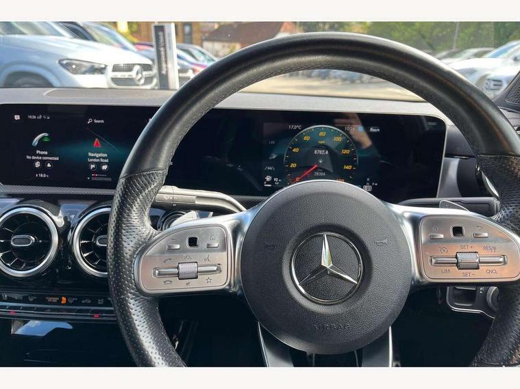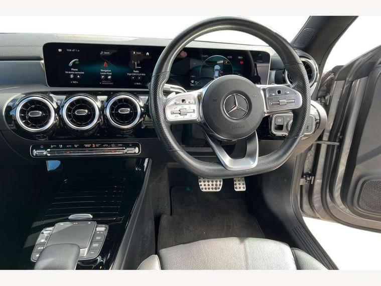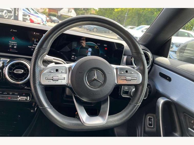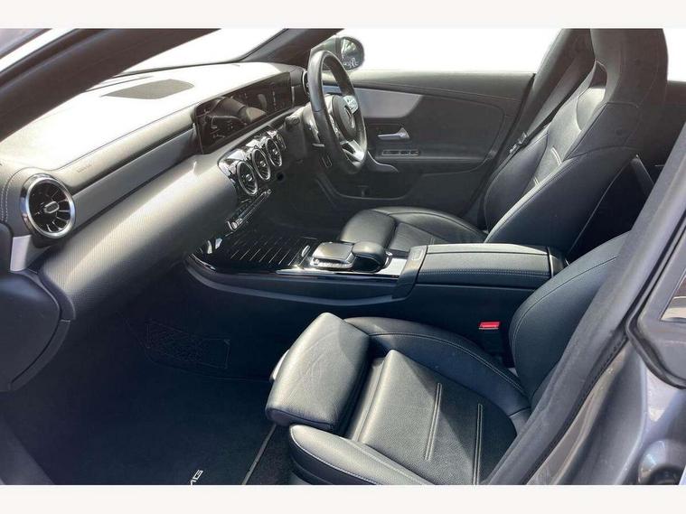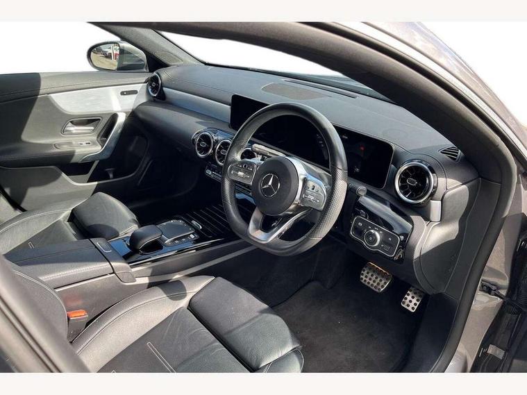 10.25 inch touchscreen central media display, 7 inch Instrument display with digital cockpit, Active lane keeping assist, Attention assist - Monitors steering behaviour and long journey fatigue, Cruise control with limiter, Direct steer system with speed sensitive power steering, Dual bluetooth interfaces, DYNAMIC SELECT with a choice of driving modes (ECO, Comfort, Sport, Sport+ and Individual), ECO start/stop function, Fluid level warning indicator for fuel, oil, coolant and washer fluid, Hard-disk navigation, Hey Mercedes Voice activation, Lamp failure indicator, Mercedes me connect including emergency call system, accident recovery, breakdown and maintenance management, Outside temperature gauge, Owners manual and service booklet in English, Pre-installation for Vehicle Monitoring, Pre-installation for Vehicle Setup, Pre-installation of private car share, Preinstallation for Mercedes Benz link, Radio aerial integrated into front and rear windshields, Service indicator (ASSYST), Smartphone integration with Apple CarPlay and Android auto, Speed limit assist, Trip computer in multifunction display with current consumption indicator, Wireless charging, 7G-DCT 7 speed automatic transmission, Lowered comfort suspension, Rear axle multi-link, Sporty engine sound system, DAB digital radio tuner, MBUX multimedia system with DAB digital radio and touchpad including satellite navigation, Mercedes Benz sound system (100 W) with 6 speakers, USB (type C) ports (2) in stowage compartment and 1 in front of centre console, Adaptive brake lights, AMG body styling with AMG front apron and rear apron and visible exhaust tailpipe in chrome trim elements, AMG bodystyling side skirts, Body colour bumpers, Body colour door handles, Chrome beltline strips, Diamond radiator grille pins in chrome with silver painted louvres and chrome insert, Electric windows, Electrically adjustable and heated door mirrors with integrated LED indicators, Exhaust system with 2 Visible tailpipe trim elements and rear apron with trim in chrome, Headlamp assist automatic headlamp activation, Heated glass rear windscreen + timer control, High level LED third brake light, LED high performance headlamps with integrated LED daytime running lights, LED tail lamp, Privacy glass with dark tinting on rear side windows and rear window, Rain sensing windscreen wipers with two sensitivity settings, Rear fog lamp, Vehicle Monitoring, Vehicle Setup, Window line trim strip in chrome, 3 spoke flattened bottom nappa leather multifunction steering wheel with perforated leather in grip area, 40:20:40 split folding rear seat backrests, Air conditioning - Two zone thermotronic luxury automatic climate control with display, Air vents with surround in silver chrome, Automatic child seat recognition sensor, Black roof lining, Brushed stainless steel sports pedals with rubber studs, Floor mats with stitched AMG lettering, Front centre armrest with stowage, Front door sills with Mercedes Benz lettering, Front seat cushion length adjustment, Galvanished gear shift paddles on steering wheel, Heated front seats, Illuminated glove compartment stowage, Luggage net on driver/front passenger seat backrest, Manually adjustable front seats, Manually height and reach adjustable steering column, Rear head restraints, Rear interior lamp, Spectacles compartment for driver, Sport seats with fixed head restraints, Stowage compartment in centre console with retractable cover, Sunvisors with illuminated vanity mirrors, Touchpad on center console, Twin front cupholders, Two outer rear seat isofix and top tether child seat fixing points, Light and sight pack - CLA, Mirror pack - CLA, Parking package - CLA, Seat comfort pack - CLA, Active bonnet pedestrain safety measure which detects an impact and raises bonnet by 65mm, Active brake assist includes forward collision warning system with autonomous braking, Adaptive brake assist with hold function and hill start assist, Anti-lock braking system (ABS), Black seat belts, Bonnet with power domes, Brake pad wear warning indicator, Childproof locks manually operated for rear doors and electrically operated for rear power windows, Crash responsive emergency lighting, Driver and front passenger head and sidebags, Driver and front passenger windowbags, Drivers knee airbag, Dual stage driver and front passenger airbags, Electric parking brake, Electronic stability programme with acceleration skid control, ESP curve dynamic assist, Front and rear seatbelt reminder, Front brake callipers with Mercedes Benz lettering, Front passenger seat occupancy sensor, Three point rear seat belts, Tyre pressure monitoring system, Warning triangle and first aid kit, Alarm system with immobiliser and interior protection -Thatcham category 1, Keyless Go starting function, Remote central locking and crash sensor with emergency opening function, Light aluminium with longitudinal grain interior trim, 18" 5 twin spoke design alloy wheels painted in titanium grey with high sheen finish, Summer tyres, Tirefit tyre sealant kit,