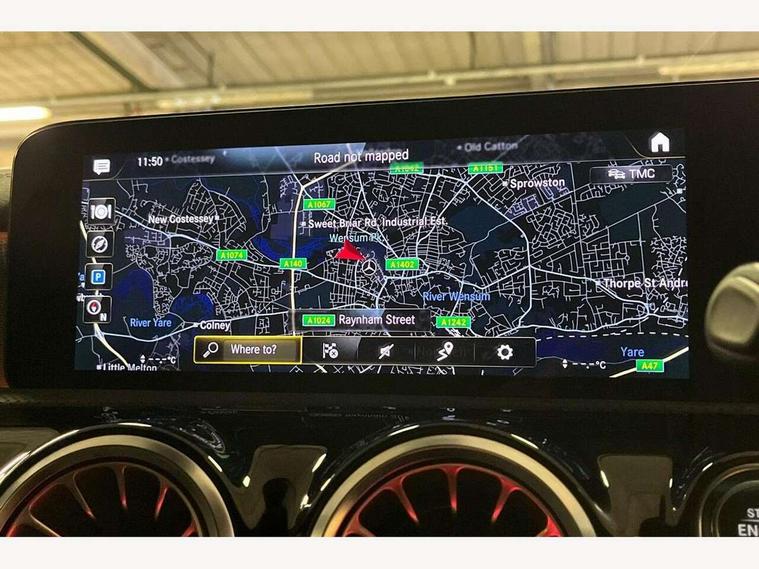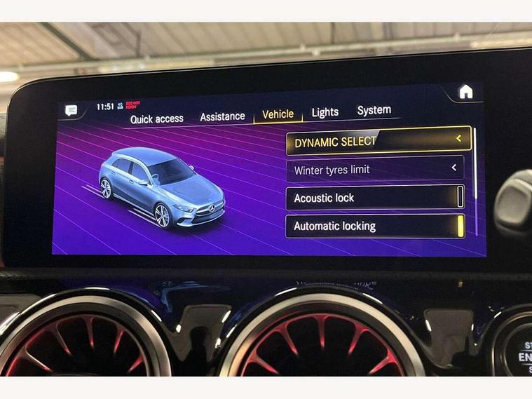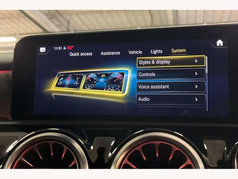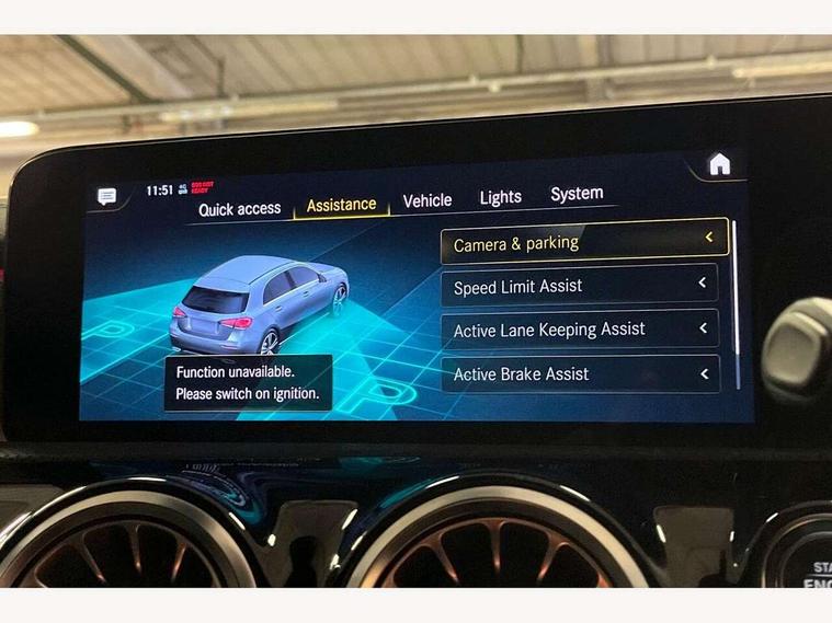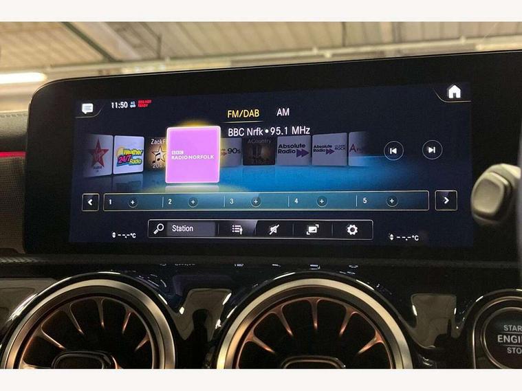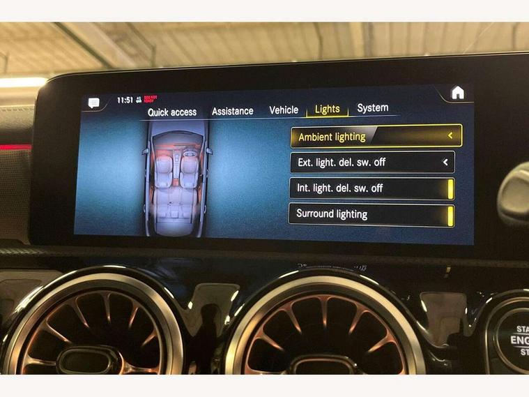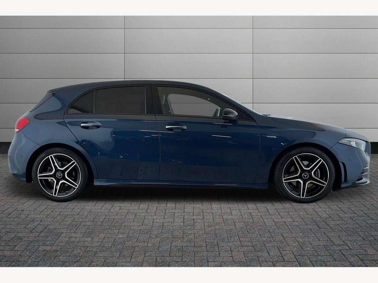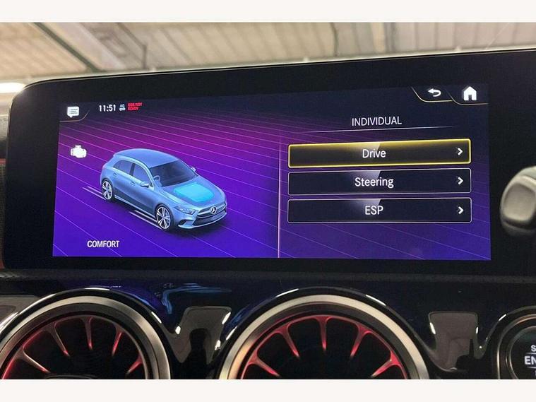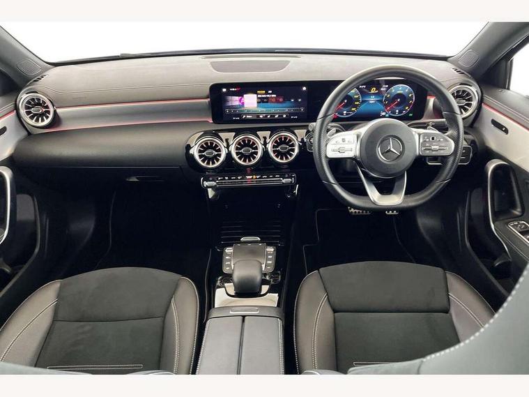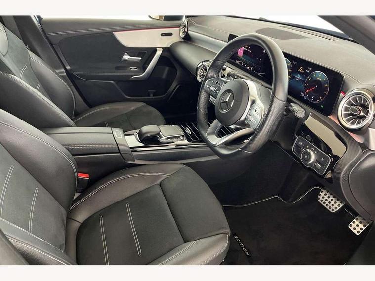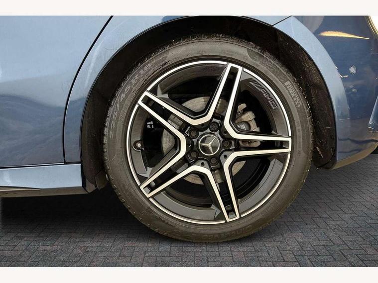 10.25" Digital instrument cluster display screen, 10.25" media display, 180 degree rear view camera with parking guidelines, Active parking assist with visual and audible warning of detected obstacles, Attention assist, Brake pad wear indicator warning light, Car wash mode, Cruise control + speed limiter, Direct steering, Dual bluetooth interfaces, DYNAMIC SELECT with a choice of driving modes (ECO, Comfort, Sport and Individual), ECO start/stop function, Fluid level warning indicator for fuel, oil, coolant and washer fluid, Hard-disk navigation, Hey Mercedes Voice activation, Lamp failure indicator, Lane keeping system, Mercedes me connect including emergency call system, accident recovery, breakdown and maintenance management, Mercedes me remote services, Outside temperature gauge, Owners manual in English, Pre-installation for private car sharing, Preinstallation for Mercedes Benz link, Service indicator (ASSYST), Smartphone integration with Apple CarPlay and Android auto, Speed sensitive power steering, Trip computer, Ultrasonic sensors positioned in the front and rear bumpers, Lowered comfort suspension, Rear axle torsion beam, 10 speakers, 2 USB ports (type C) in rear stowage compartment and one in front of center console, DAB Digital radio, MBUX multimedia system with DAB digital radio and touchpad including satellite navigation, Mercedes-Benz sound system - 100W, 4 Electric Front and Rear windows, Adaptive brake lights, AMG bodystyling - Front apron with splitter in chrome, rear apron with chrome trim and chrome visible trim elements in tailpipe, Automatic headlights, Black weather strip, Body colour bumpers, Body colour door handles, Body colour side skirt, Body coloured door mirrors, Electric adjustable and heated door mirrors with integrated LED side indicators, Exclusive diamond radiator grille, Exhaust system - Twin visible tailpipes in polished stainless steel, Headlamp assist automatic headlamp activation, Heated glass rear windscreen + timer control, High gloss black beltline, LED High level third brake light, LED high performance headlamps with integrated LED daytime running lights, LED tail lamp, Privacy glass, Radio aerial, Rain sensing windscreen wipers with two sensitivity settings, Rear fog lights, Rear side wing doors, Rear wiper, Window line trim strip in high gloss black, 3 seat bench in 2nd row, 3 Spoke flat bottom leather multi function steering wheel with perforated leather in grip area, 40:20:40 split folding rear seats, Artico man-made leather/Microfibre Dinamica upholstery with contrast stitching in light grey, Auto Mercedes-Benz child seat recognition sensor, Black air vents with surround in silver chrome, Black roof lining, Brushed stainless steel sports pedals with rubber studs, Controller on centre console with chrome surround, Floor mats with black top stitching and embroidered edition logo and piping in light grey, Front centre armrest with storage compartment, Front seat backs luggage nets, Front seat cushion length adjustment, Galvanished gear shift paddles on steering wheel, Heated front seats, Height/reach adjustable steering column, Illuminated front door sills with changeable cover, Interior lighting - 64 colour Ambient lighting, Interior mirror with reading lamps in black and frameless, Manual height adjustable front seats, Rear armrest with 2 cupholders, Rear head restraints, Seat occupancy sensor for front passenger seat, Single front passenger seat, Sports seats with integrated headrests, Stowage compartment in centre console with retractable cover, Sunvisors with illuminated vanity mirrors, Touchpad on center console, Twin front cupholders, Two zone thermotronic luxury automatic climate control, Light and sight pack - A Class, Mirror package - A Class, Night pack - A Class Saloon/Hatchback, Seat comfort pack - A Class, 3 rear 3 point seatbelts, ABS with Brake Assist, Active bonnet, Active brake assist includes forward collision warning system with autonomous braking, Adaptive brake assist with hold function and hill start assist, Black seatbelts, Childproof locks manually operated for rear doors and electrically operated for rear power windows, Crash responsive emergency lighting, Driver and passenger head and side airbags, Drivers knee airbag, Dual stage driver/passenger airbags, Electronic parking brake, ESP curve dynamic assist, ESP with ASR, Front and rear seatbelt reminder, Front brake callipers with Mercedes Benz lettering, ISOFIX and top tether child seat fixing points in two outer rear seats, Tyre pressure monitoring system, Warning triangle and first aid kit, Window airbags, Alarm system/interior protection/immobiliser, Keyless entry lock/unlock, Keyless Go, Remote central locking and crash sensor with emergency opening function, Urban guard vehicle protection system with immobiliser and interior protection, Matrix look light longitudinal grain aluminium trim element, 18" AMG 5 twin spoke light alloy wheels aerodynamically optimised painted in black with highsheen finish, Summer tyres, Tirefit sealant kit,