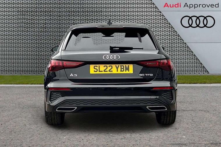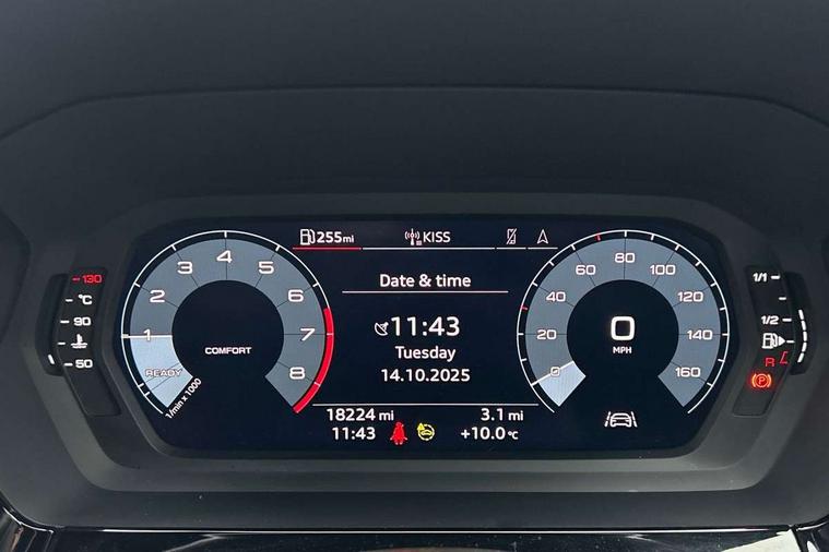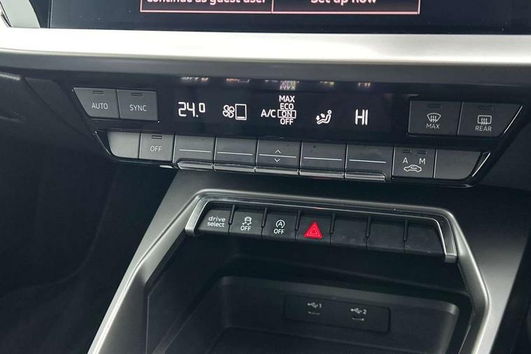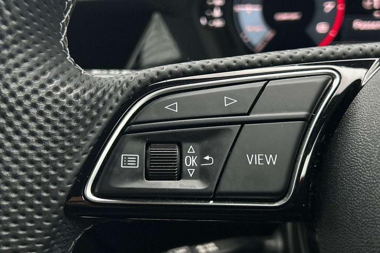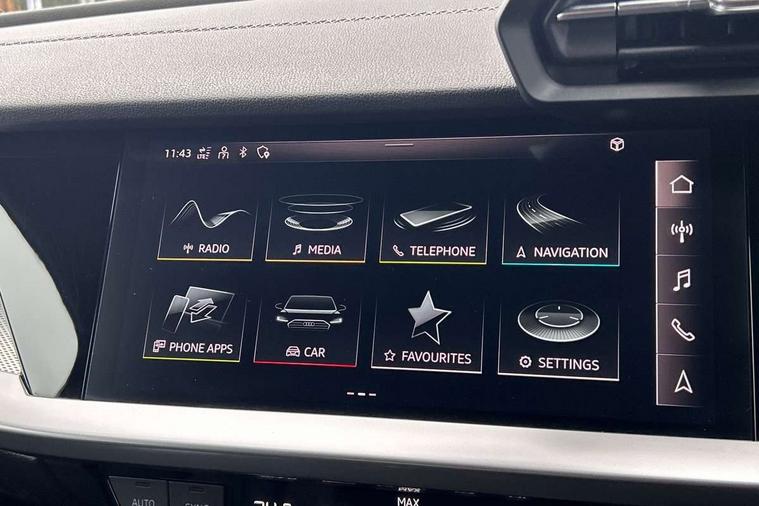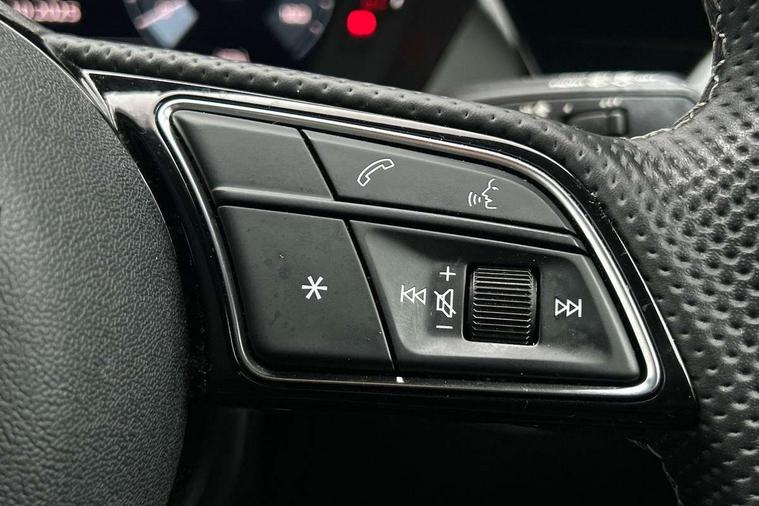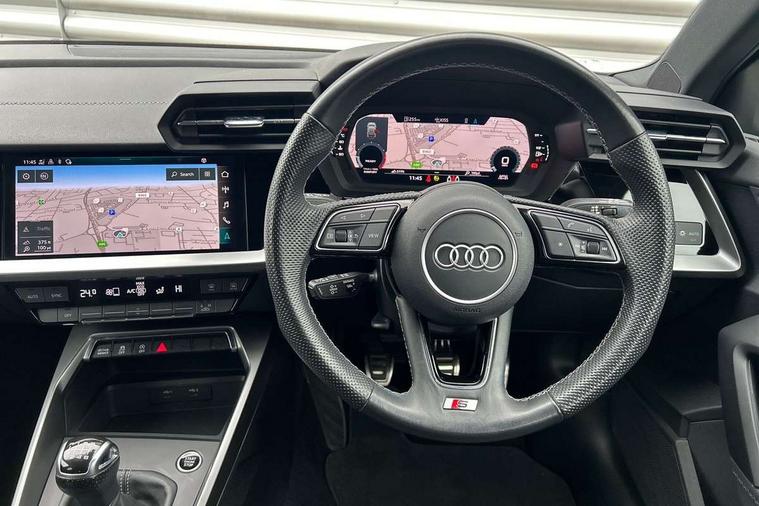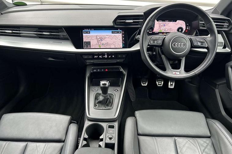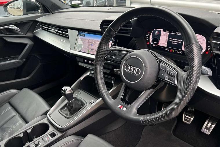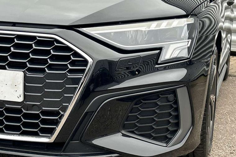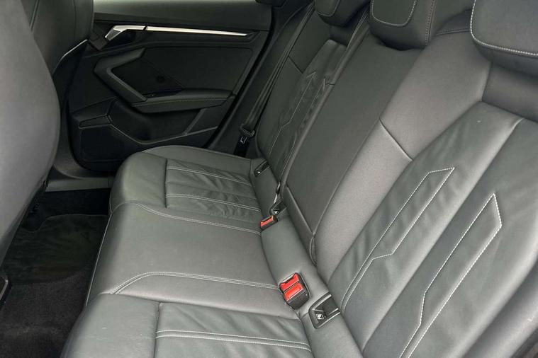 Audi drive select (Auto, Comfort, Dynamic and Individual), Audi smartphone interface, Audi Virtual Cockpit - 10.25" digital and colour instrument cluster, Automatic start/stop system with recuperation, Bluetooth interface, Collision avoidance assistant, Cruise control, e-Call (emergency call), Electromechanical power speed sensitive steering, Lane departure warning system, MMI Navigation Plus with high resolution 10.1" colour touch screen display, Rear parking sensors, Service indicator, Trip computer, Voice control system with natural language interaction, 2xUSB-C connection with data and charging functions, 6 passive loudspeakers, DAB Digital radio, 3rd brake light, Acoustic glass windscreen, Aluminium window trim, Auto dimming frameless rear view mirror, Electrically adjustable/heated/folding/auto dimming door mirrors with integrated LED indications + kerb view function for passenger side, Front electric windows, Illuminated aluminium inserts front door sills with S logo, LED daytime running lights, LED headlights with LED rear lights and dynamic rear indicators, Light and rain sensors, Privacy glass - dark tinted rear window, rear door and side windows, Rear electric windows, Rear side air outlets in grained matt black, Rear side wing doors, Rear wiper, S line bumpers, S roof spoiler, 12V socket and storage compartment in front centre console, 3 seat bench in 2nd row, 40/20/40 split folding rear seat bench with cupholder, Black cloth headlining, Dual zone electronic climate control, Front and rear centre armrest in leather, Front and rear headrests, Front/rear floor mats, Height and reach adjustable steering wheel, Illuminated vanity mirror, Interior lighting - glove compartment light and right hand side, Luggage compartment floor covering, Manual boot compartment lid, Manually adjustable front seats, Seat side bolsters, Single front passenger seat, Stainless steel pedals and front footrest in black, Twin leather upholstery with front sports seats S embossed logo, Aluminium interior elements pack - A3 Sportback, S line styling pack - A3 Sportback, 3x3 point rear seat belts, Audi pre sense front, Driver and front passenger airbag with passenger airbag deactivation, Electronic Stabilisation Control (ESC) including ABS, ASR and EDL, First aid kit with warning triangle and 2 safety vests, Front side airbags with head airbags and interaction airbag, Pre-sense front with pedestrian and cyclist detection, Seatbelt monitoring, Tyre pressure loss indicator, Anti theft alarm, Anti-theft wheel bolts, Immobiliser, Manual child locks, Remote control central locking, Accent surfaces in the dashboard and centre console in platinum grey silk effect paint finish, Dark spectrum aluminium inlays,