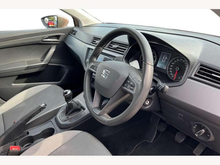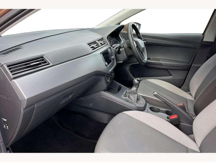 'Lights On' Reminder warning buzzer, Bluetooth Handsfree Phone Connection, Digital clock, Full Link Smartphone Integration with Mirror Link, Apple Car Play, Google Android Auto, Low fuel warning light, Outside temperature gauge, Power Steering, SEAT logo boot release, Trip computer, Comfort suspension, 6 speakers, 6.5" touchscreen, Auxiliary input socket, Digital Audio Broadcast (DAB) Tuner, Radio/MP3 player, SD card slot, SEAT USB media cable, Steering wheel mounted controls, USB port, Anti theft roof antenna, Automatic headlights, Body colour bumpers, Body colour door handles, Body colour door mirrors, Chrome grille, Cornering front fog lights, Electric front windows, Electric headlight adjustment, Electrically adjustable door mirrors, LED daytime running lights, LED tail lights, Rear fog lights, Twin halogen headlamps, 3 rear headrests, 60/40 split folding rear seat, Air conditioning, Cloth upholstery, Driver's sunvisor with ticket holder/vanity mirror, Dust/pollen filter, Front courtesy lights, Front cupholders x 2, Front reading lights, Gear shift indicator, Glovebox, Height adjustable driver's seat, Height adjustable front/rear head restraints, Height adjustable passenger seat, Height/reach adjust steering wheel, Illuminated boot, Instrument lighting with brightness control, Leather handbrake, Leather steering wheel and gear knob, Passenger sunvisor, Rear top tether child seat ISOFIX attachment, 3 point seatbelts on all 3 rear seats, ABS, Active front headrests, Child locks on rear doors, Curtain airbags, Driver/Front Passenger airbags, ESP+EBA, Front assist (AEB), Front passenger airbag deactivation, Front side airbags, Hill hold control, Multi-Collision braking, Seatbelt warning, Tyre pressure monitoring system, Electronic engine immobiliser, Locking wheel bolts, Remote central locking + deadlocks, Black dash trim, 15" Enjoy alloy wheels,